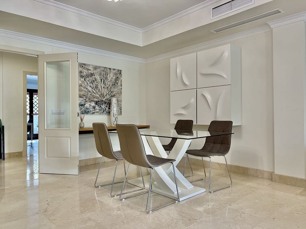 Lomas del Rey boasts 24-hour security, mature gardens, social club, a fitness club, and 4 swimming pools; this sublime luxury Mediterranean style development exudes the ambience of a private resort. The community is next to Puente Romano and Lomas de Marbella Club and just minutes away from world class dining and shopping of the Marbella Golden Mile, this area is famous for its tranquil feeling. With easy access to the AP-7 motorway and 57kms from the international airport at Malaga..