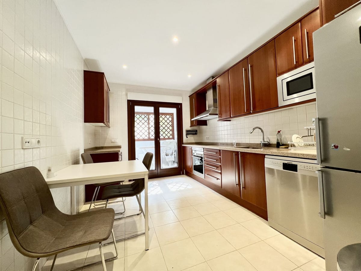 2 bed ground floor apartment in the exclusive, gated community of Lomas del Rey, exceptional high-quality construction melded with extraordinary attention to detail yield this contemporary apartment. Its expansive spaces, open concept floorplan and walls of glass create a breathtaking experience of spaciousness and light. On entering the home through the hallway, to the right, there is a large living/dining room and kitchen which open onto the expansive terrace. Straight ahead there is a corridor with guest toilet and guest suite with a walk-in closet. To the left is the sizeable master suite, also with walk-in closet and a private terrace.