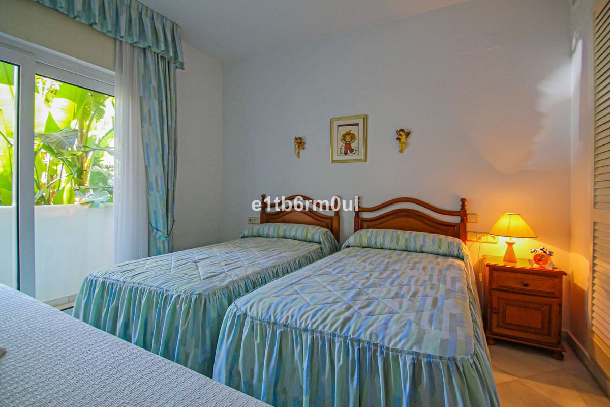 BEACHSIDE • WALKING DISTANCE TO MARBELLA CENTRE & ALL AMENITIES • Cheerful corner ground floor two bedroom apartment just steps from the beach. Located in a very desirable complex with lush mature gardens and swimming pool, right on the promenade, just a stone's throw away from all the restaurants and amenities of Marbella centre and Marbella's Golden Mile. The apartment consists of an entrance way, ample living/dining room, master bedroom with bathroom en suite, guest bedroom with balcony, bathroom, a functional fully fitted kitchen and utility room. The living room and master bedroom lead onto a quaint terrace, perfect for breakfast or al fresco dining. It has a private garden and direct access to the community swimming pool. A wonderful apartment for beachside living. Secure outdoor parking.