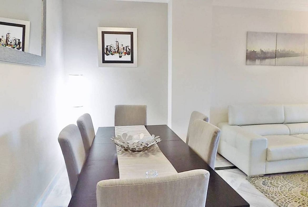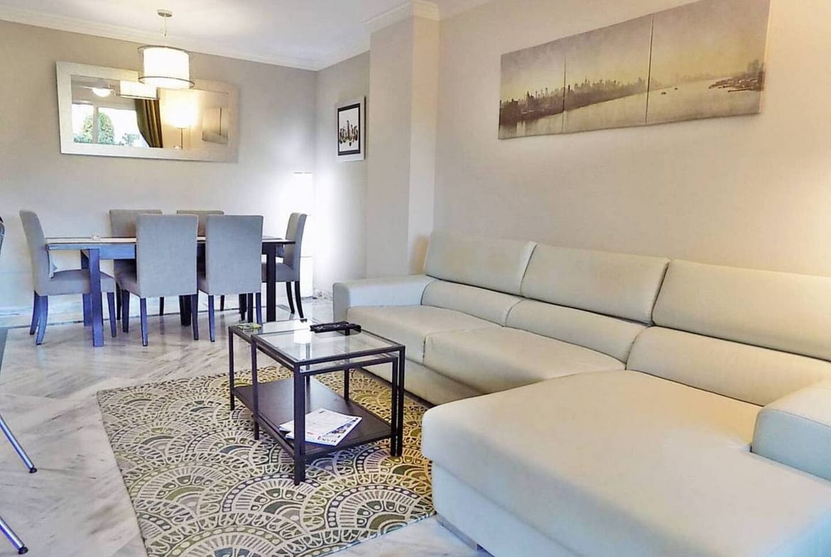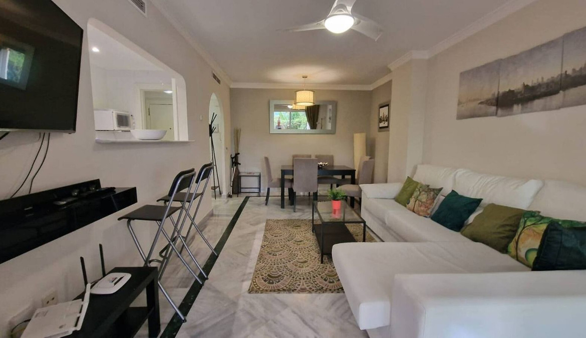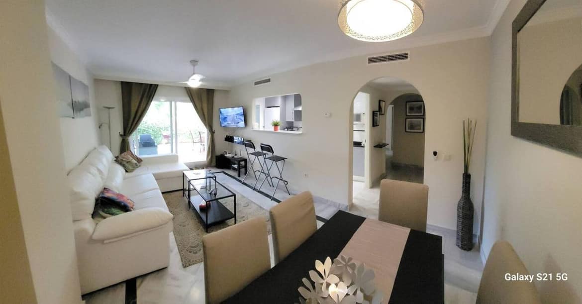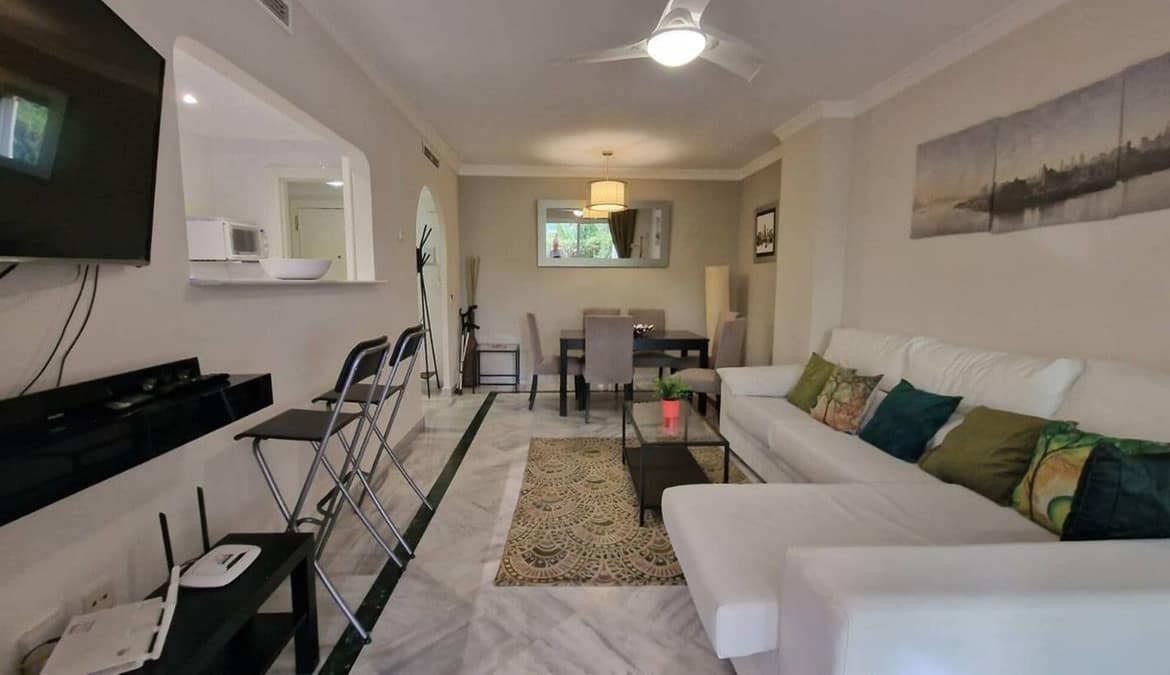 Modern, newly furnished, very spacious two-bedroom apartment with a large terrace, located near Puerto Banús (a 5-10 minute walk) in the ideally located La Dama de Noche residential complex.