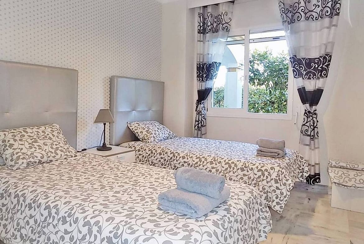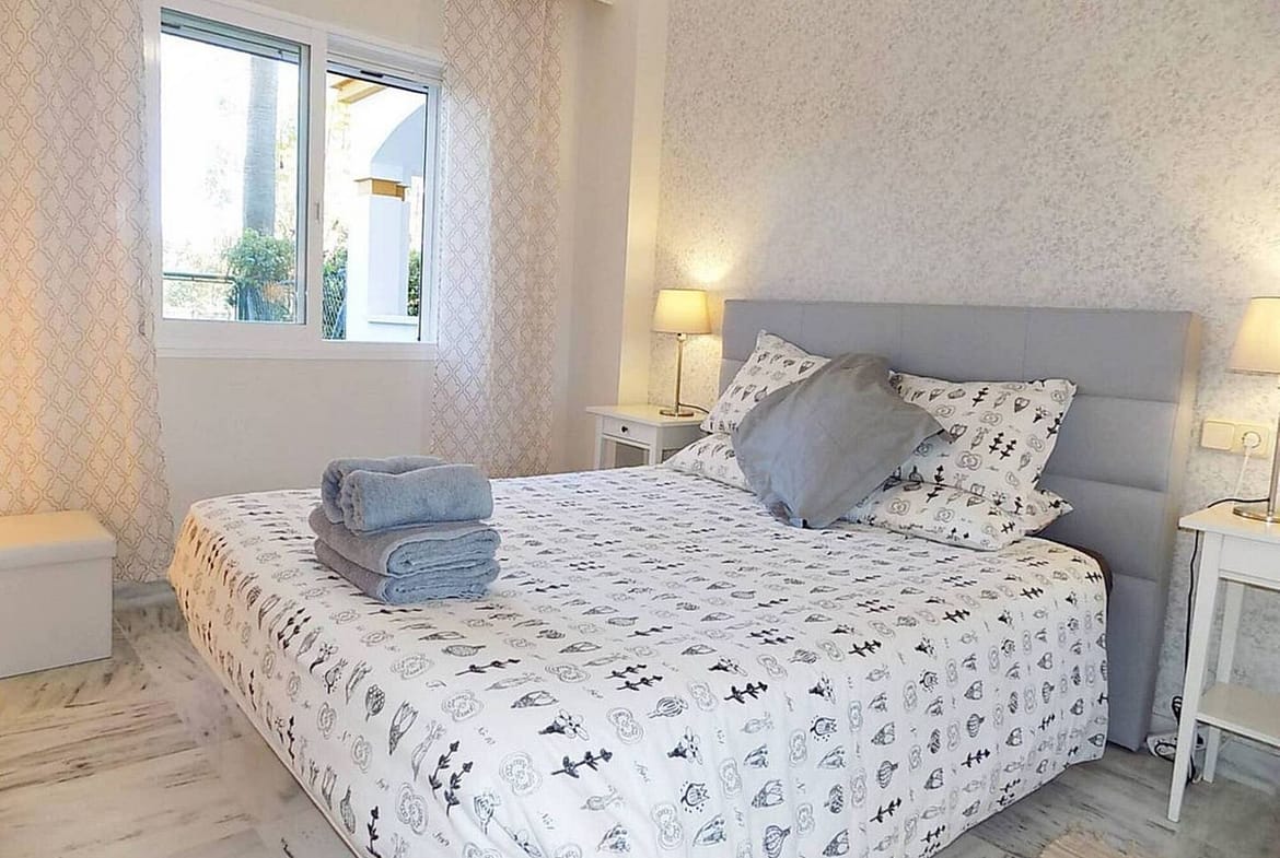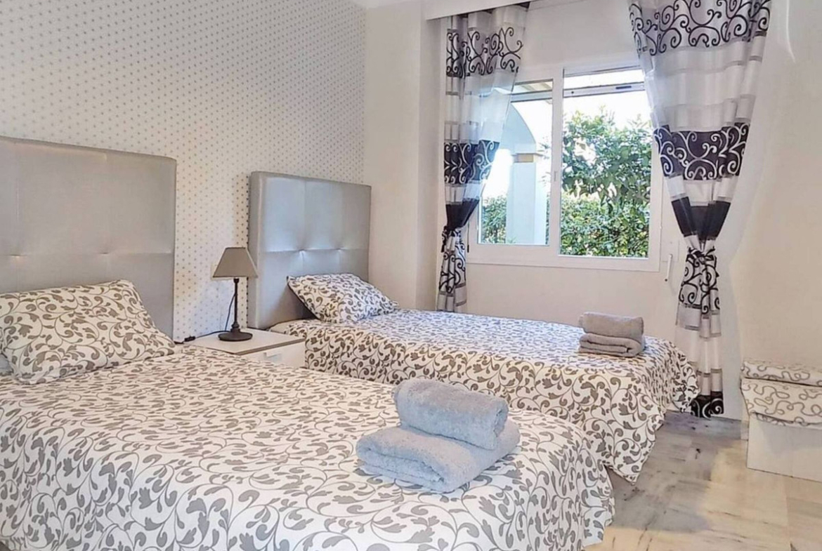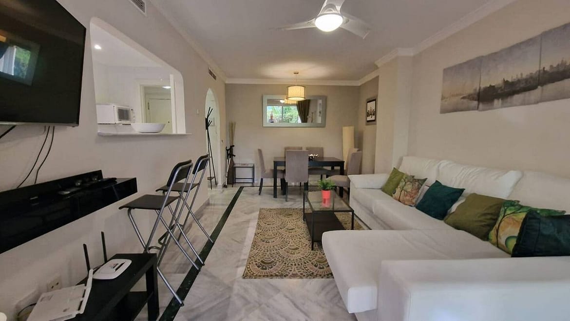 Modern, newly furnished, very spacious two-bedroom apartment with a large terrace, located near Puerto Banús (a 5-10 minute walk) in the ideally located La Dama de Noche residential complex.