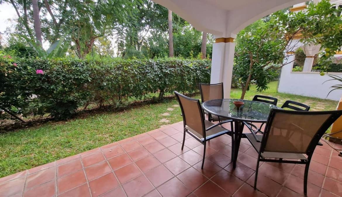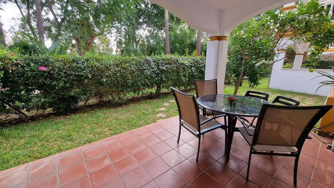 The property features a private, well-landscaped garden and a large orange tree with abundant fruit during the winter. The community features 6 paddle tennis courts (free), a children's play area, 2 large swimming pools (open in summer), and a cozy restaurant serving lunch and dinner daily.