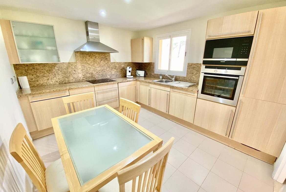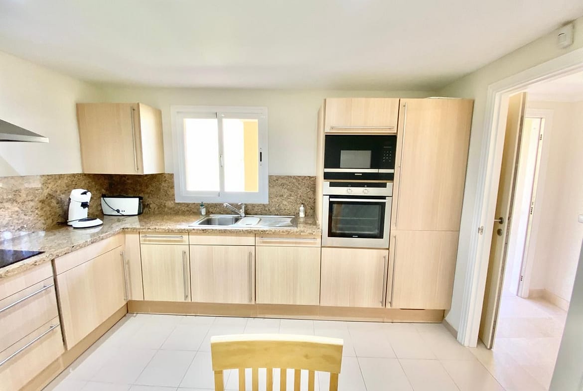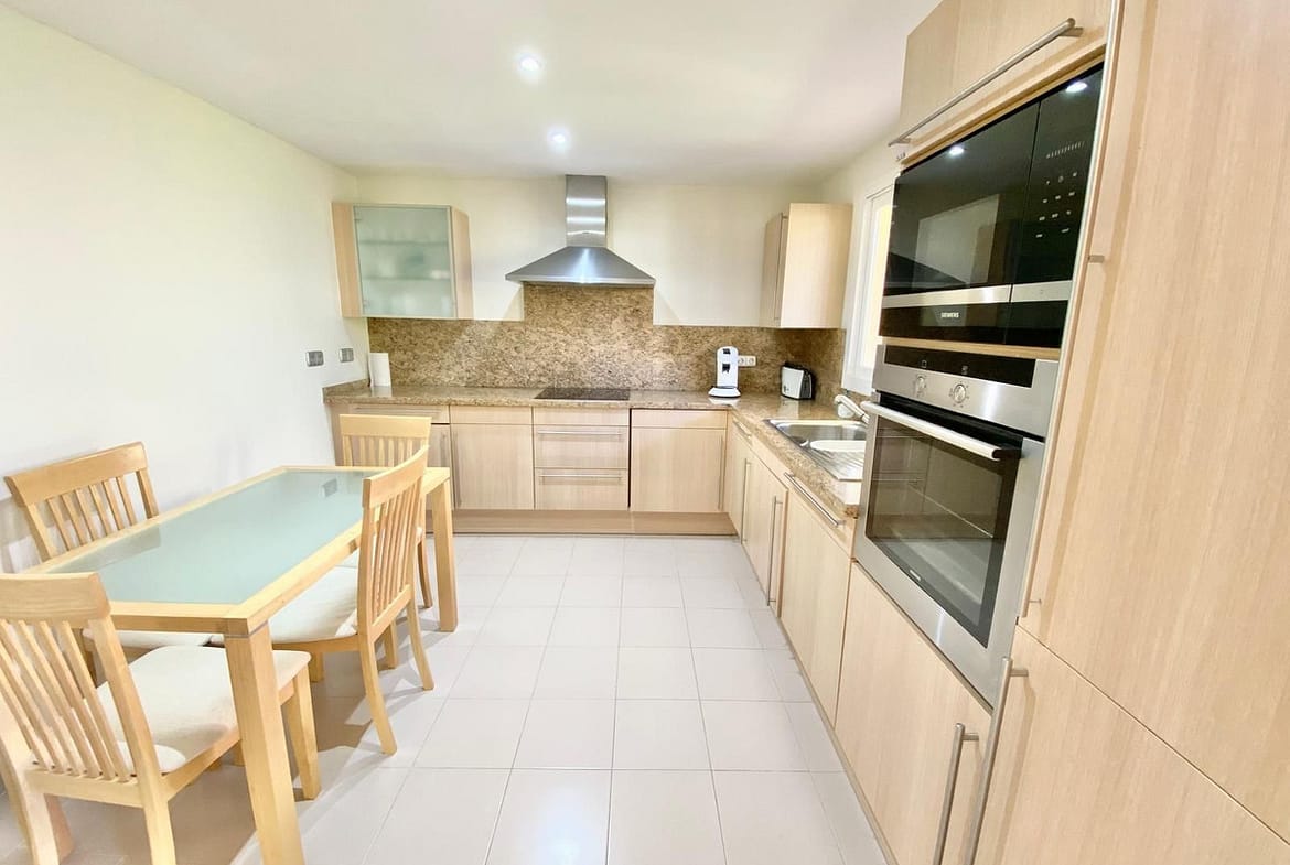 The kitchen is fully equipped with modern appliances and a functional design, while the two bedrooms feature built-in wardrobes and en-suite bathrooms, offering a high level of comfort and privacy.