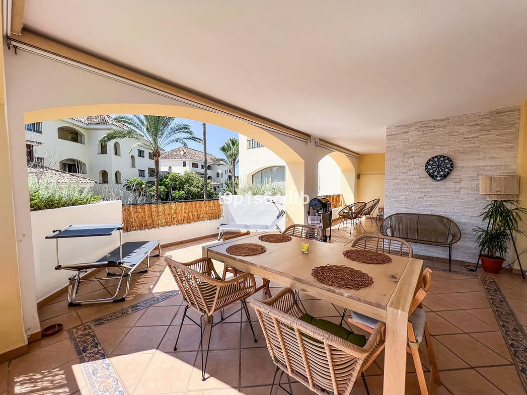 Fantastic apartment placed in Bahía de Marbella, 300m from one of the best natural beaches in Marbella and 3 minutes drive from the city center. In a high standing urbanization with a gated complex, paddle tennis court, large adult's pool and additional kids' swimming pool (both with saline chlorination), as well as beautiful landscaping with tropical gardens and native trees of the region.