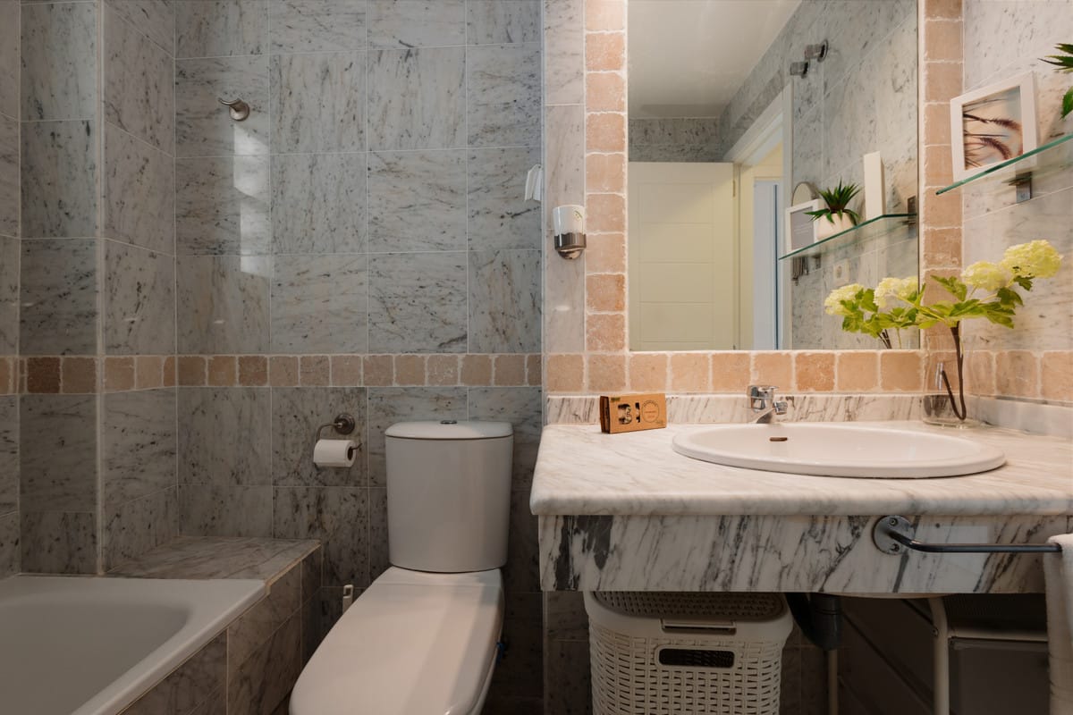The 2 bedrooms are tastefully decorated, offering comfortable beds, closets and bedding, as well as high quality towels. Both have double beds and good natural light and, in the case of the master bedroom, it also has its own en-suite bathroom with bathtub and fully equipped with sink, toilet and clean towels.