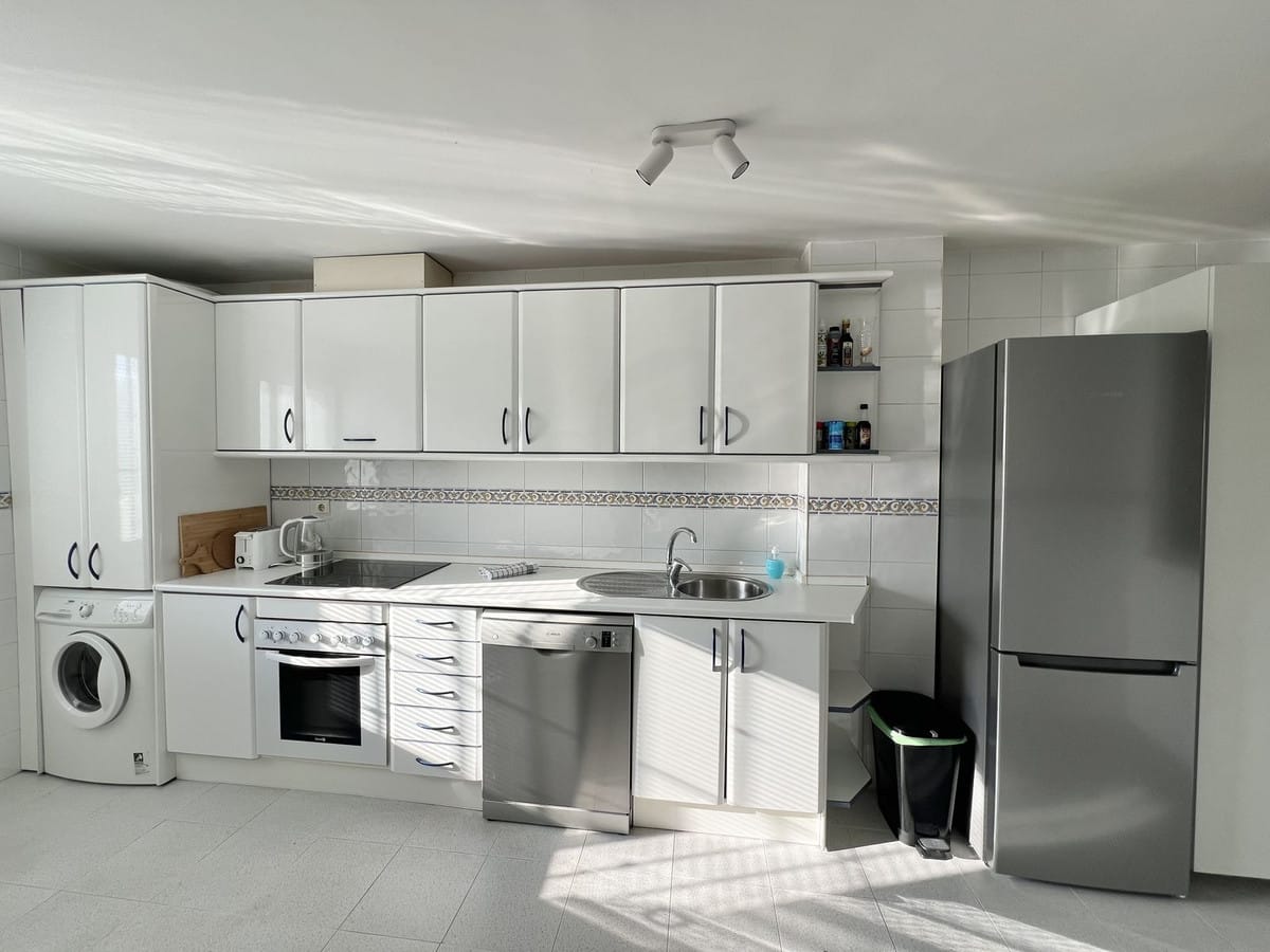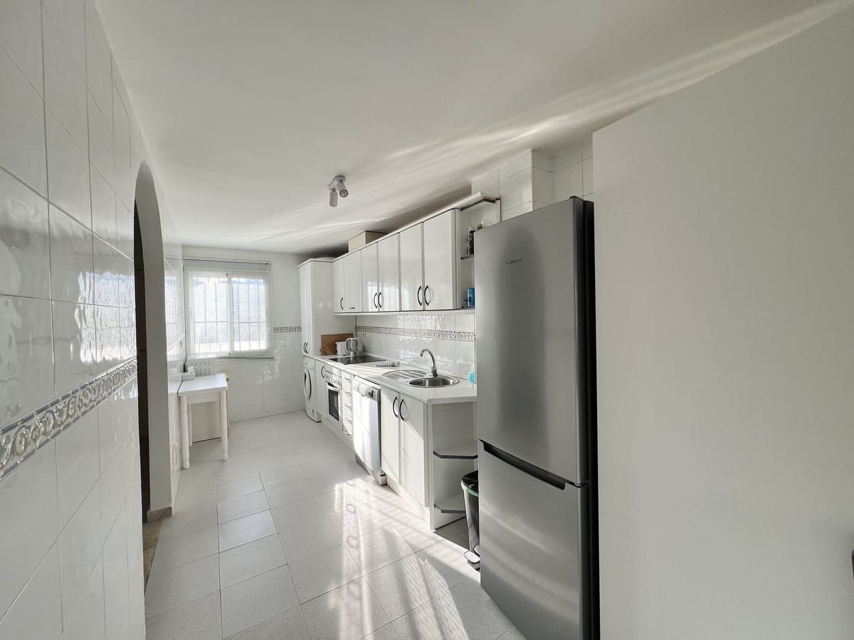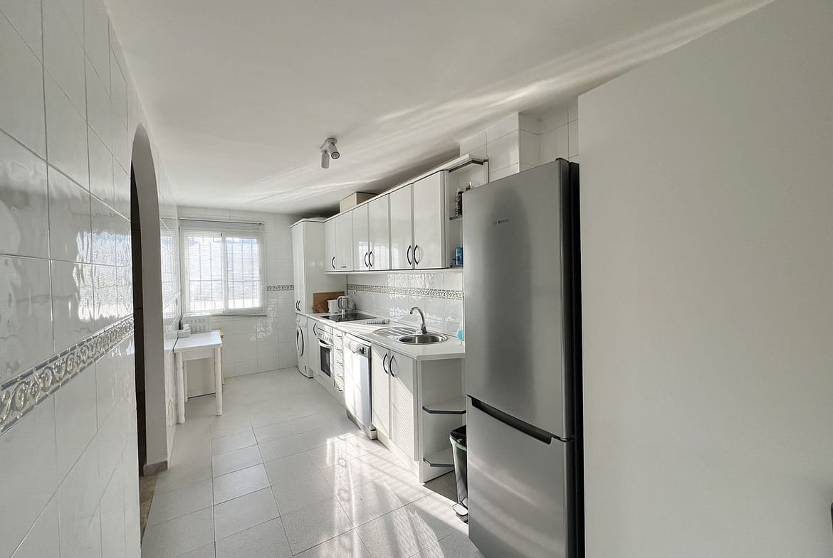The fitted kitchen is very spacious and it's semi opened onto the large and bright living-dining room which has also a direct access to the large terrace. From the terrace you overlook the gardens of the Urbanisation that offers 2 swimming pool areas and a communal gated parking area for the residents.