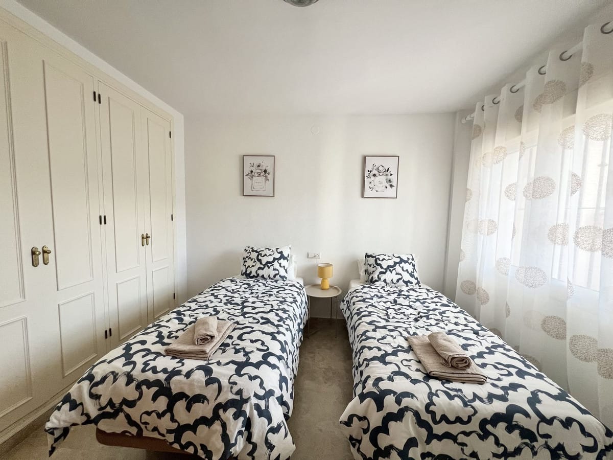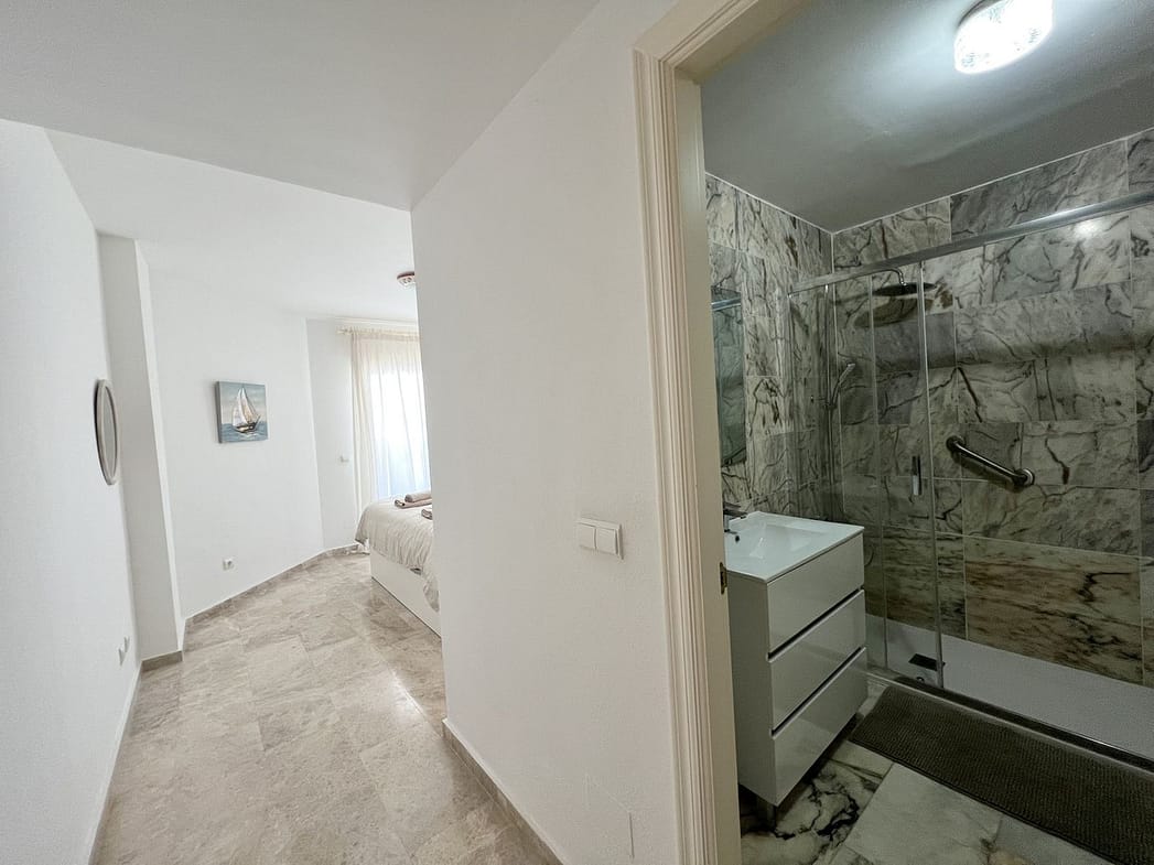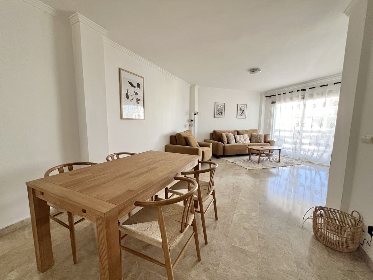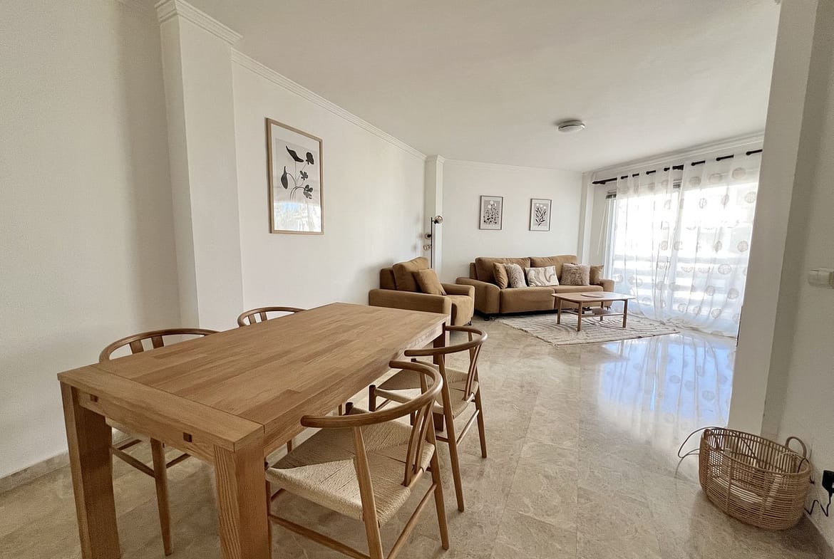 The fitted kitchen is very spacious and it's semi opened onto the large and bright living-dining room which has also a direct access to the large terrace. From the terrace you overlook the gardens of the Urbanisation that offers 2 swimming pool areas and a communal gated parking area for the residents.
