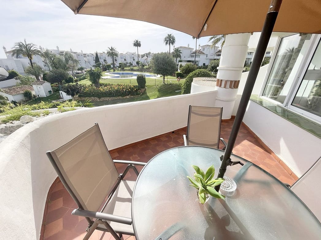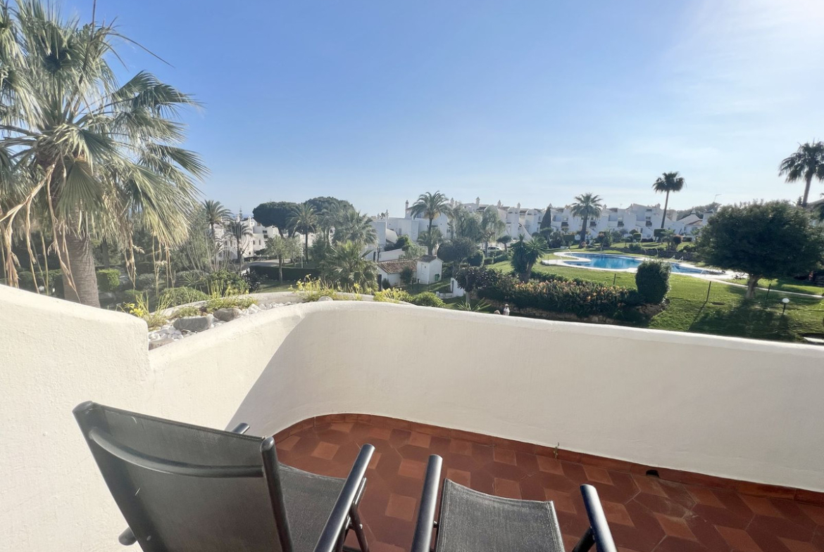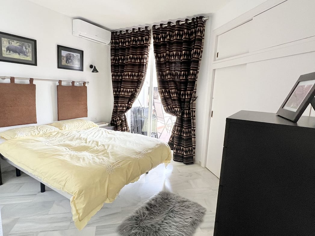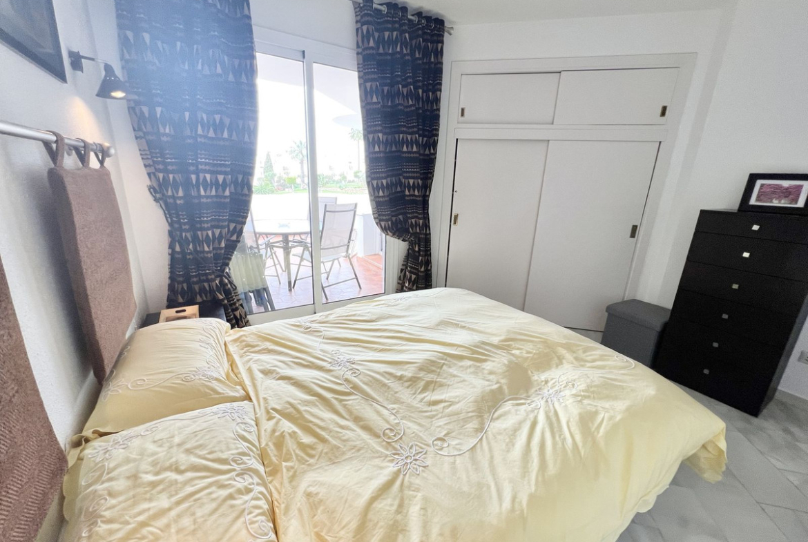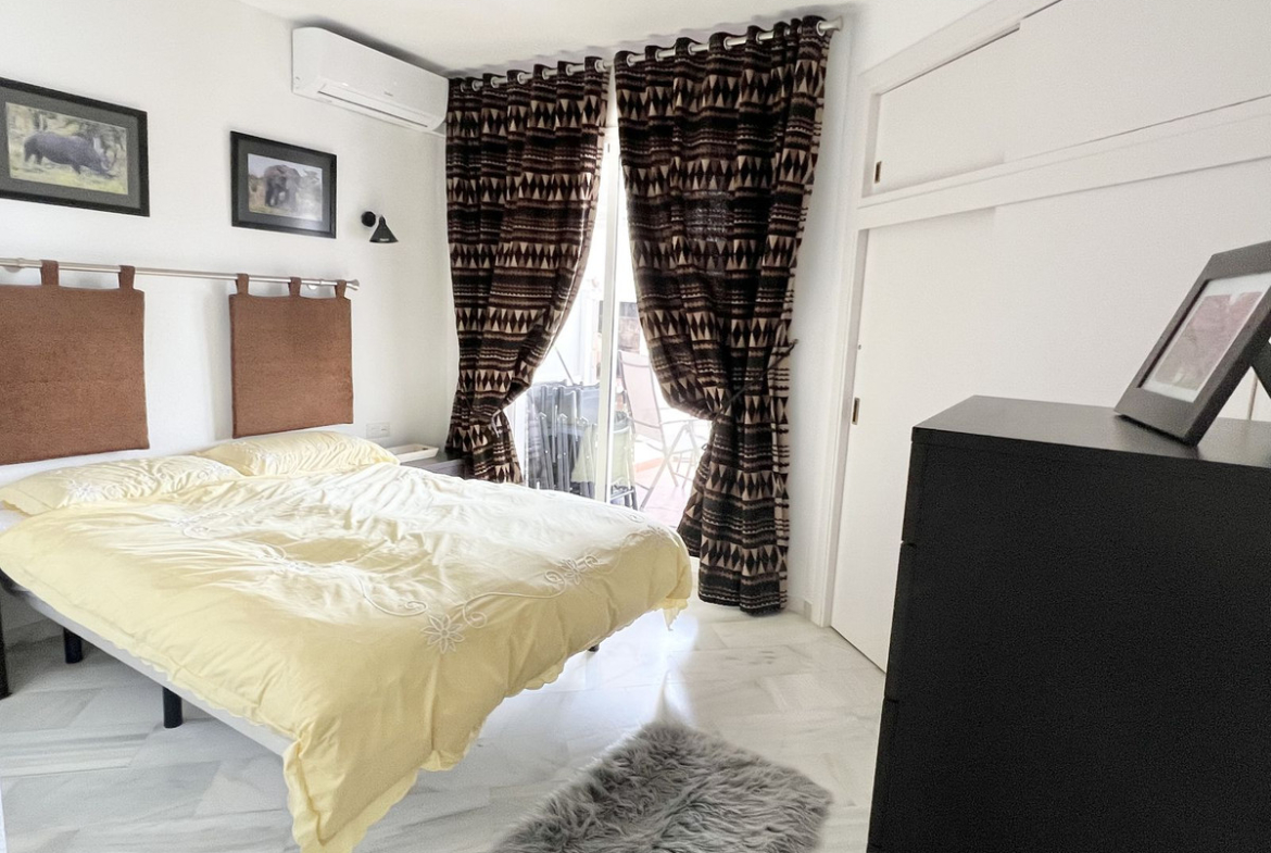 Fully equipped, air Conditioned 2 Bedroom/2 bathroom apartment in the vast Tropical Gardens of the exclusive and unique Jardines de Calahonda (Gardens of Calahonda) with a 7 minute walk through the park to Luna Beach and the 6km of coastal sea front boardwalk without having to cross a road. The urbanisation is made up of low level “Andalusian style” properties. This relaxed tranquil feel but walking everywhere is what makes this property a dream holiday home.