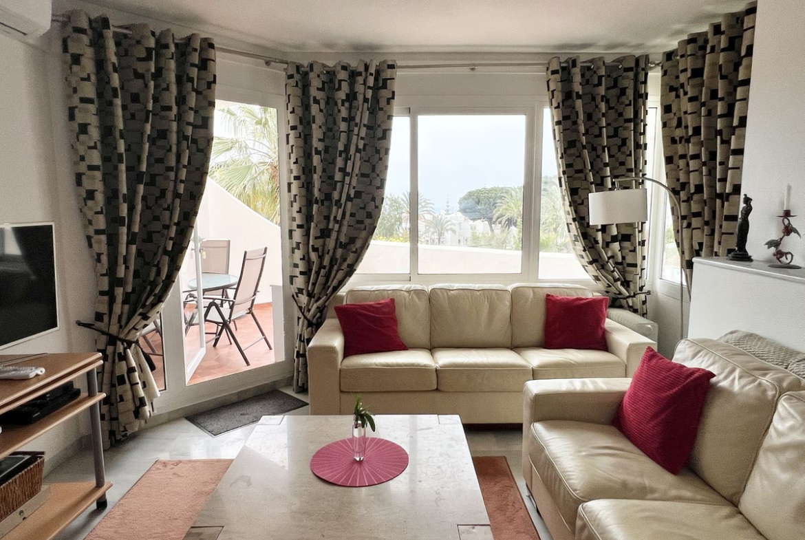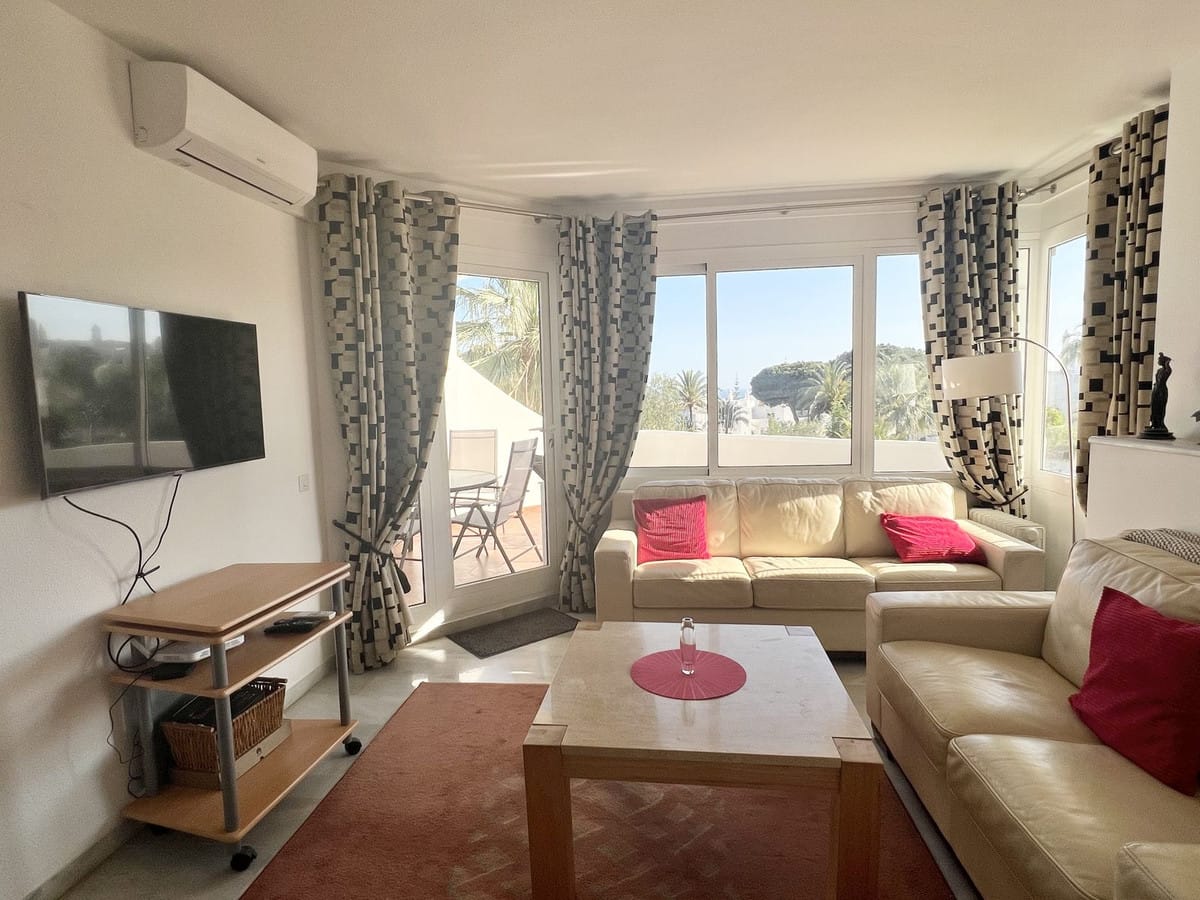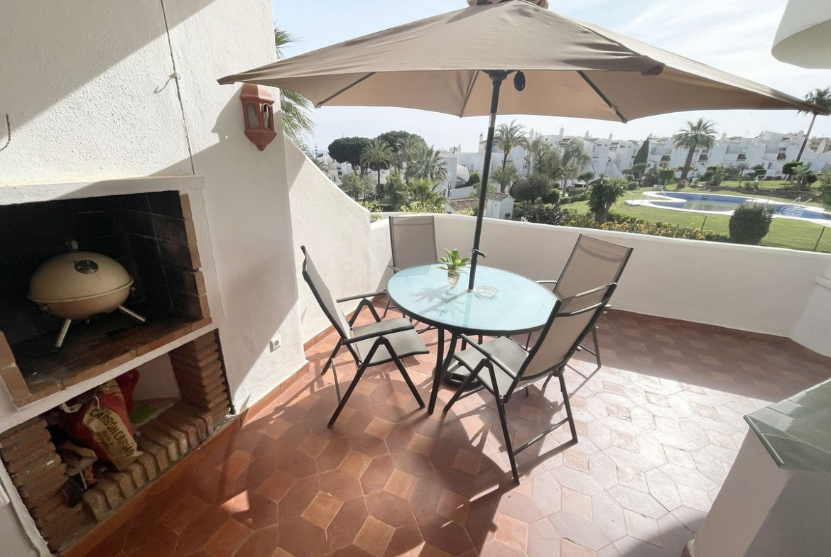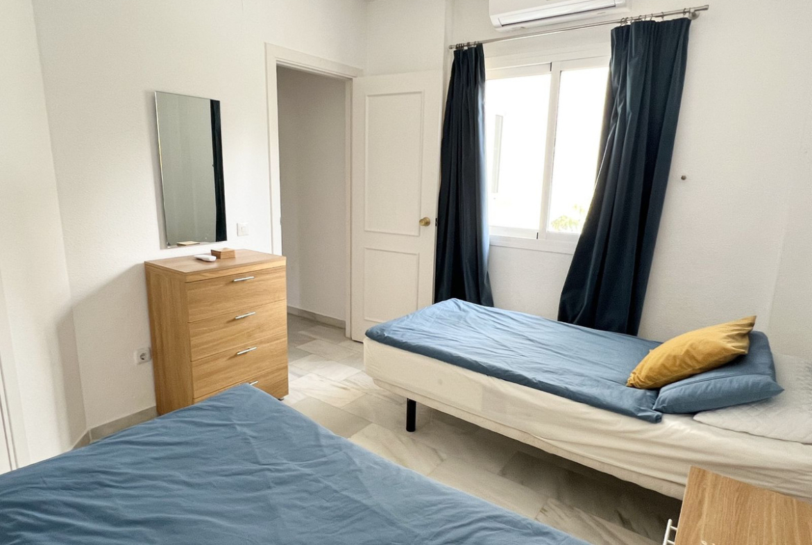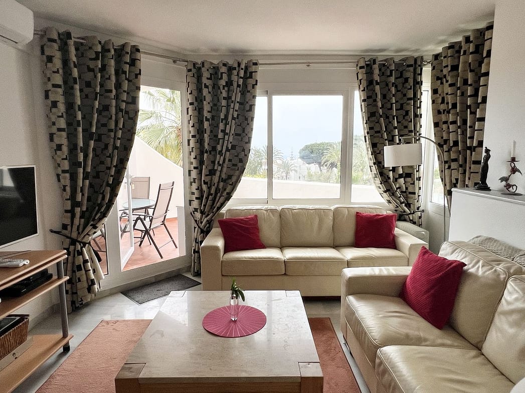 Fully equipped, air Conditioned 2 Bedroom/2 bathroom apartment in the vast Tropical Gardens of the exclusive and unique Jardines de Calahonda (Gardens of Calahonda) with a 7 minute walk through the park to Luna Beach and the 6km of coastal sea front boardwalk without having to cross a road. The urbanisation is made up of low level “Andalusian style” properties. This relaxed tranquil feel but walking everywhere is what makes this property a dream holiday home.