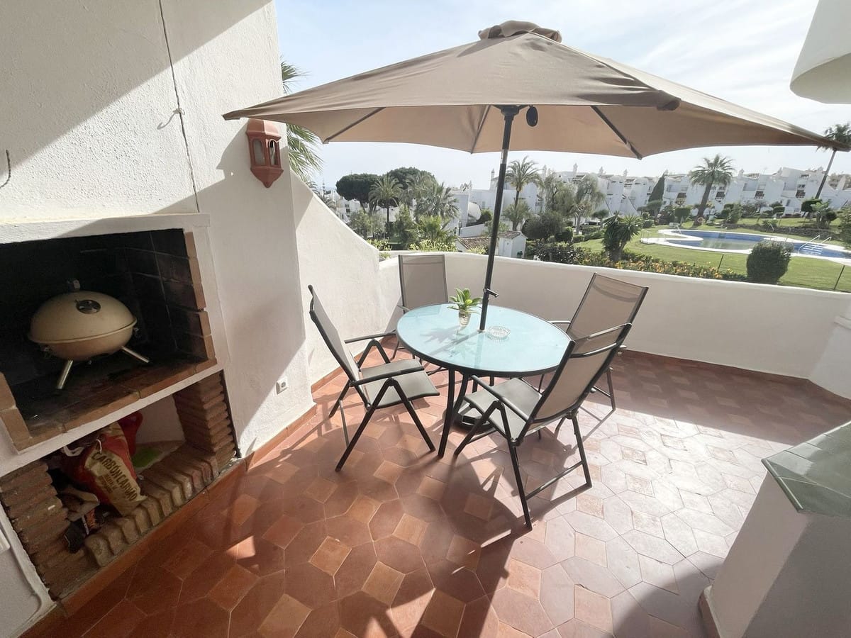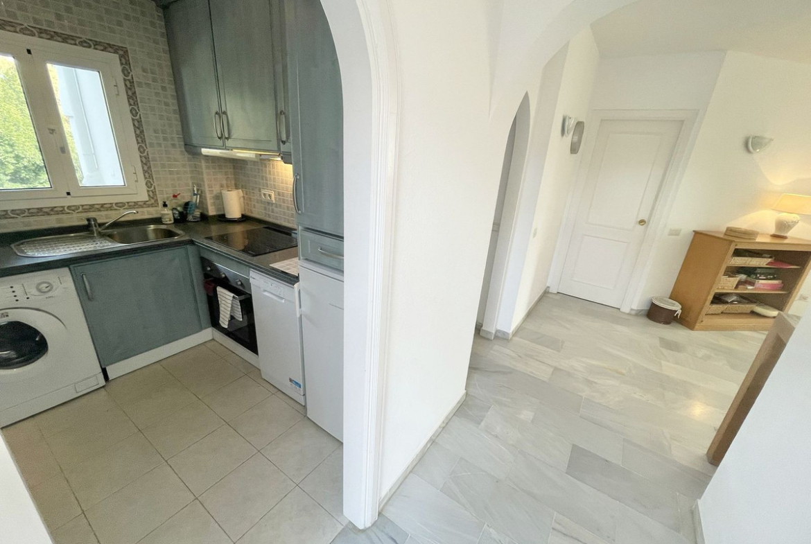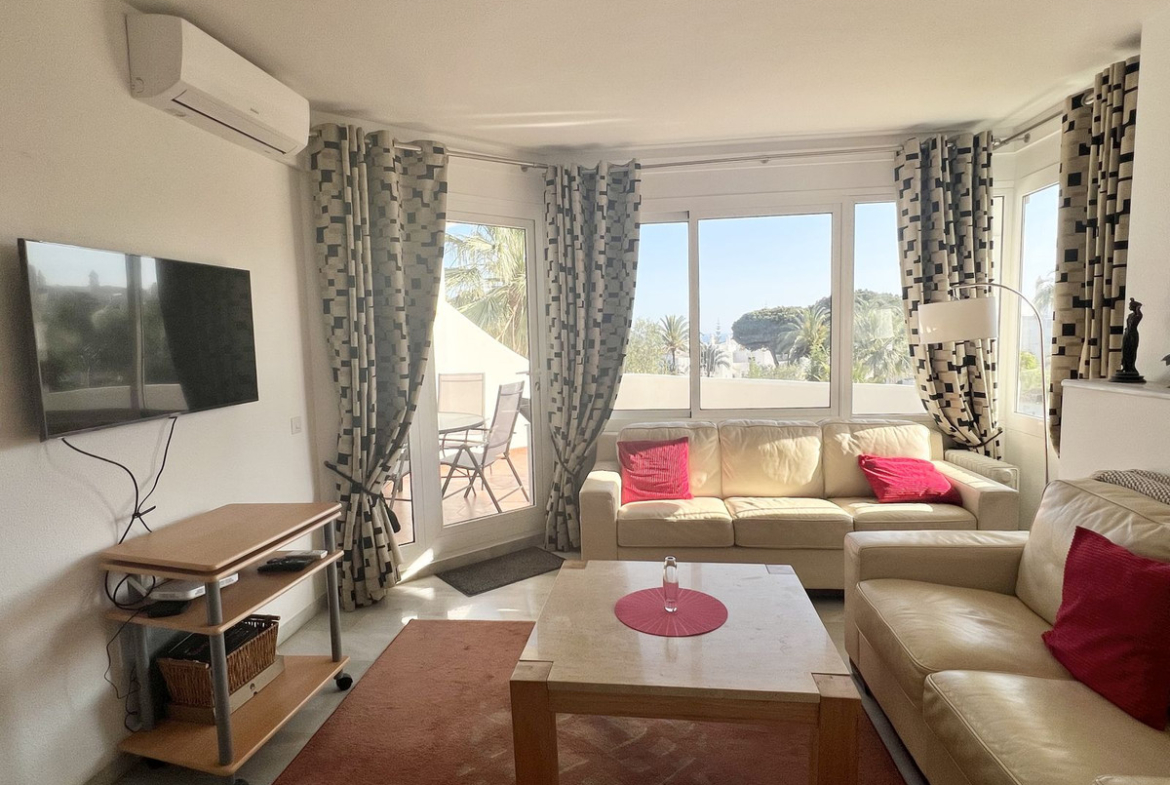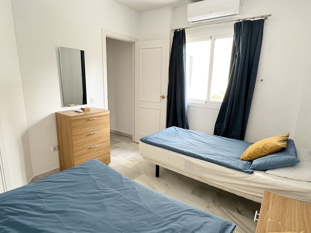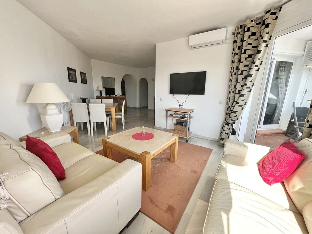 Fully equipped, air Conditioned 2 Bedroom/2 bathroom apartment in the vast Tropical Gardens of the exclusive and unique Jardines de Calahonda (Gardens of Calahonda) with a 7 minute walk through the park to Luna Beach and the 6km of coastal sea front boardwalk without having to cross a road. The urbanisation is made up of low level “Andalusian style” properties. This relaxed tranquil feel but walking everywhere is what makes this property a dream holiday home.