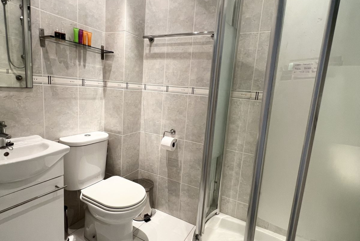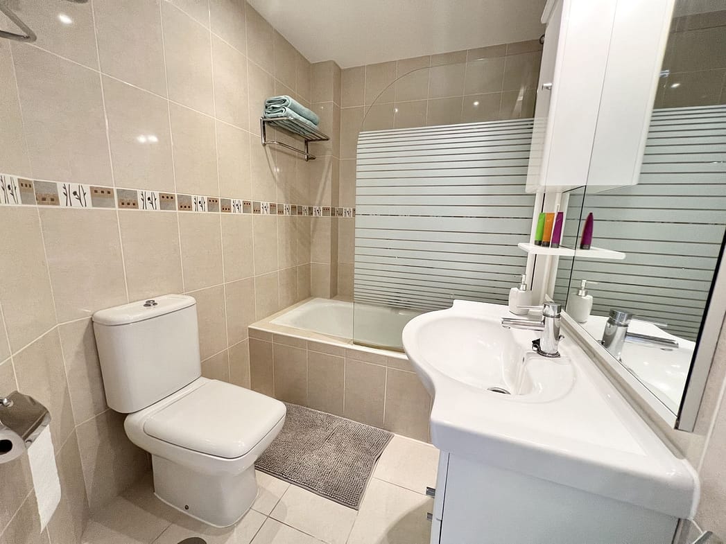 SECOND BEDROOM – 2 single beds to allow your kids or adult guests to relax in this air conditioned bedroom and have a comfortable nights sleep. Plenty of storage is available in the wardrobes, and chest of drawers. The shower room is ideally situated just adjacent to the second bedroom in the hallway.