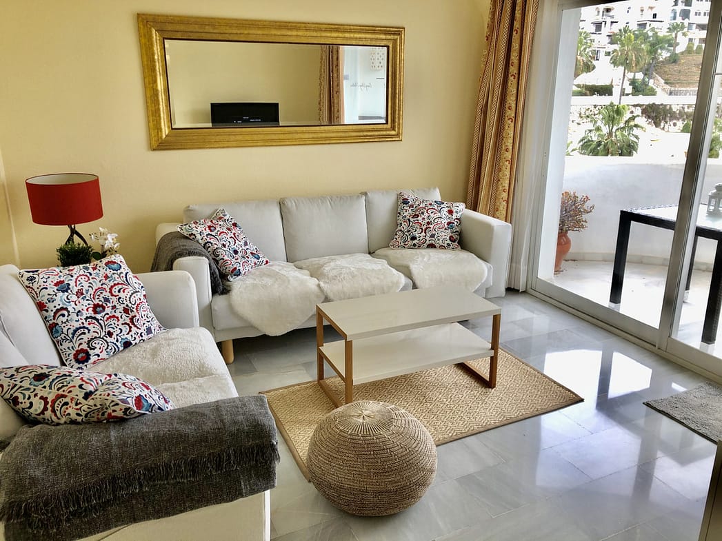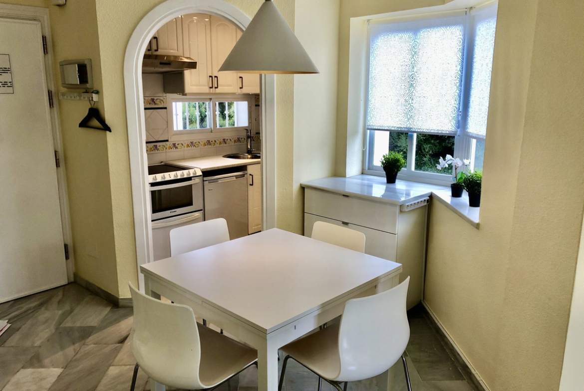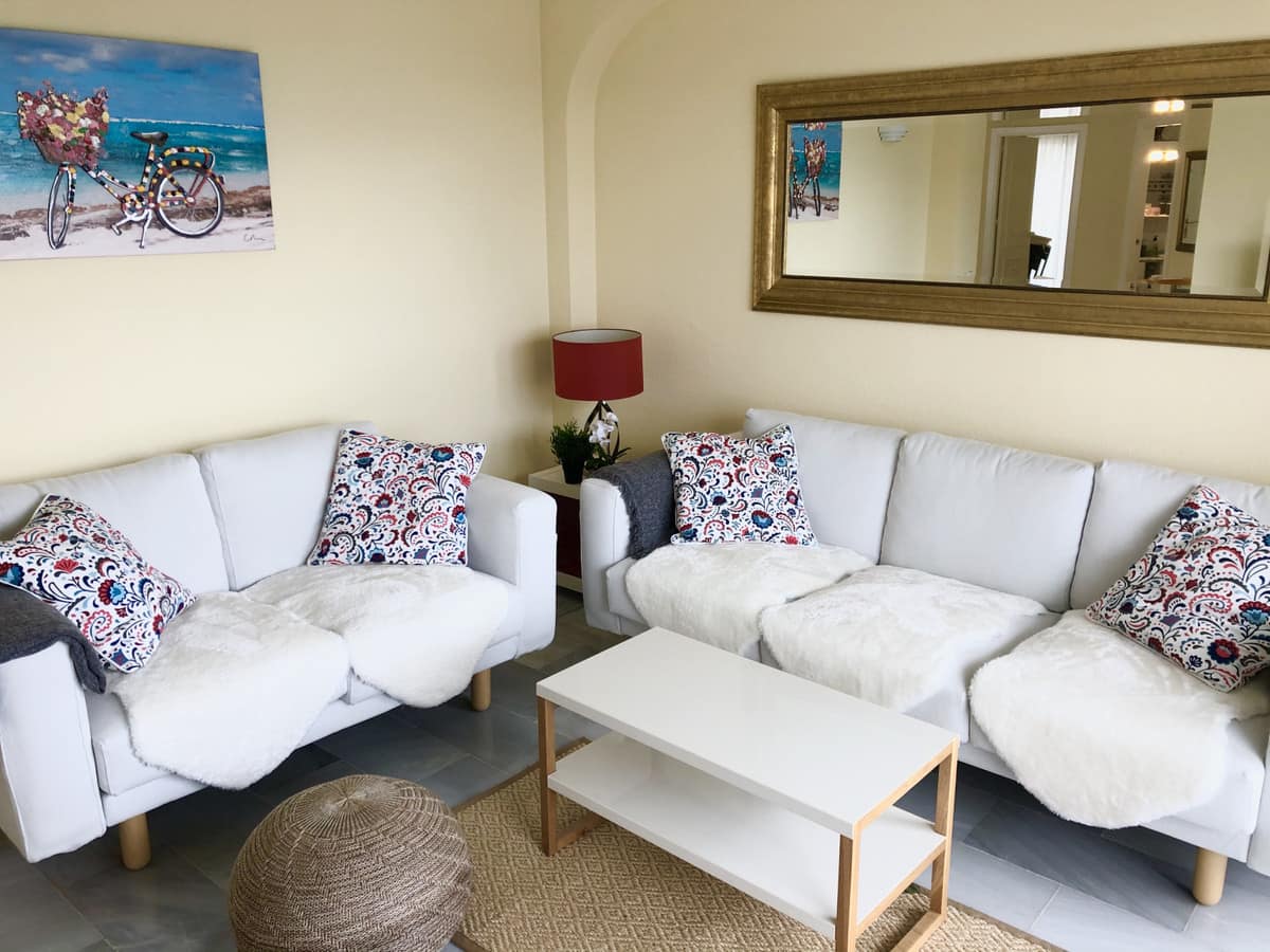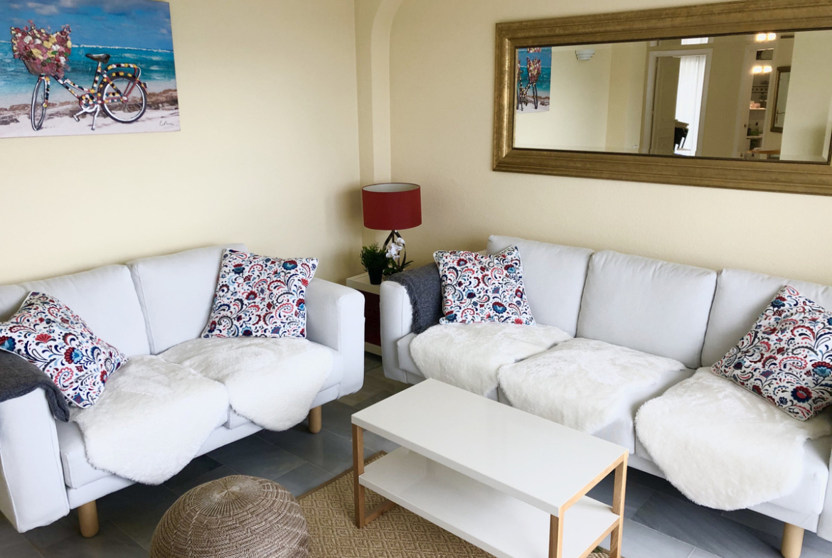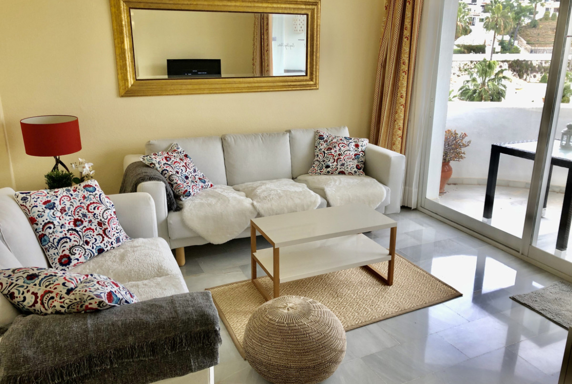This cosy two bedroom, one bathroom apartment is set within the beautiful La Cartuja complex. Situated on the upper slopes of Calahonda with panoramic sea views and only a 5 minutes drive to local sandy beaches, restaurants, bars and supermarkets.