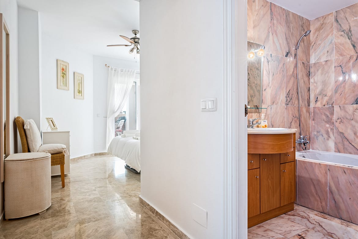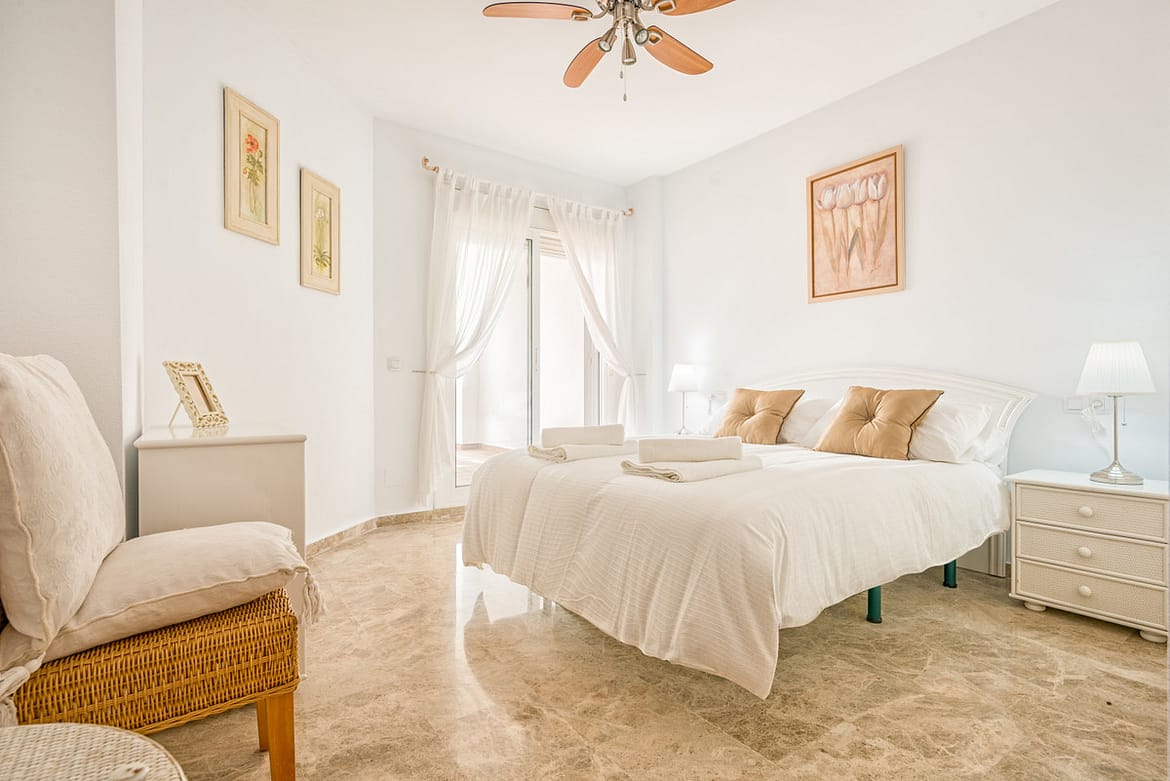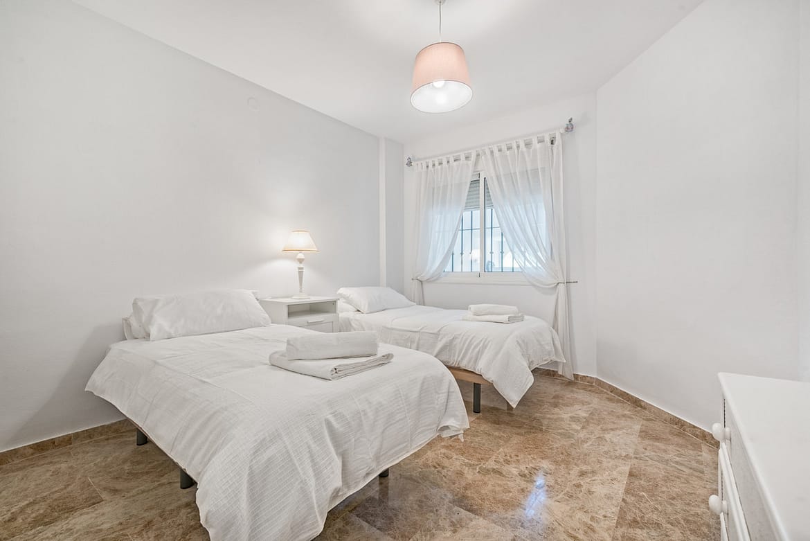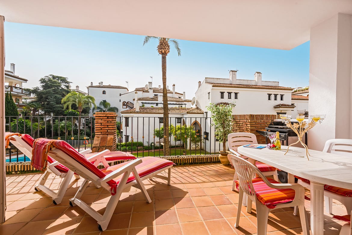 2 bedroom, 2 bathroom first floor, south facing apartment. This bright spacious two bedroom apartment is well furnished with a bright sunny lounge and two double bedrooms. There is Air conditioning/heating throughout and complementary Wi-Fi and internet enabled TV with a selection of international channels is provided.. Situated close to the beach and within walking distance of all amenities this complex has extensive lawned tropical gardens and 2 sparkling free form swimming pools.