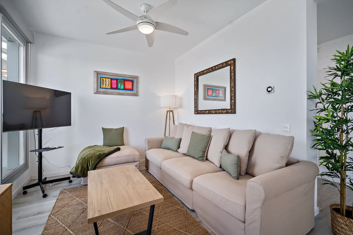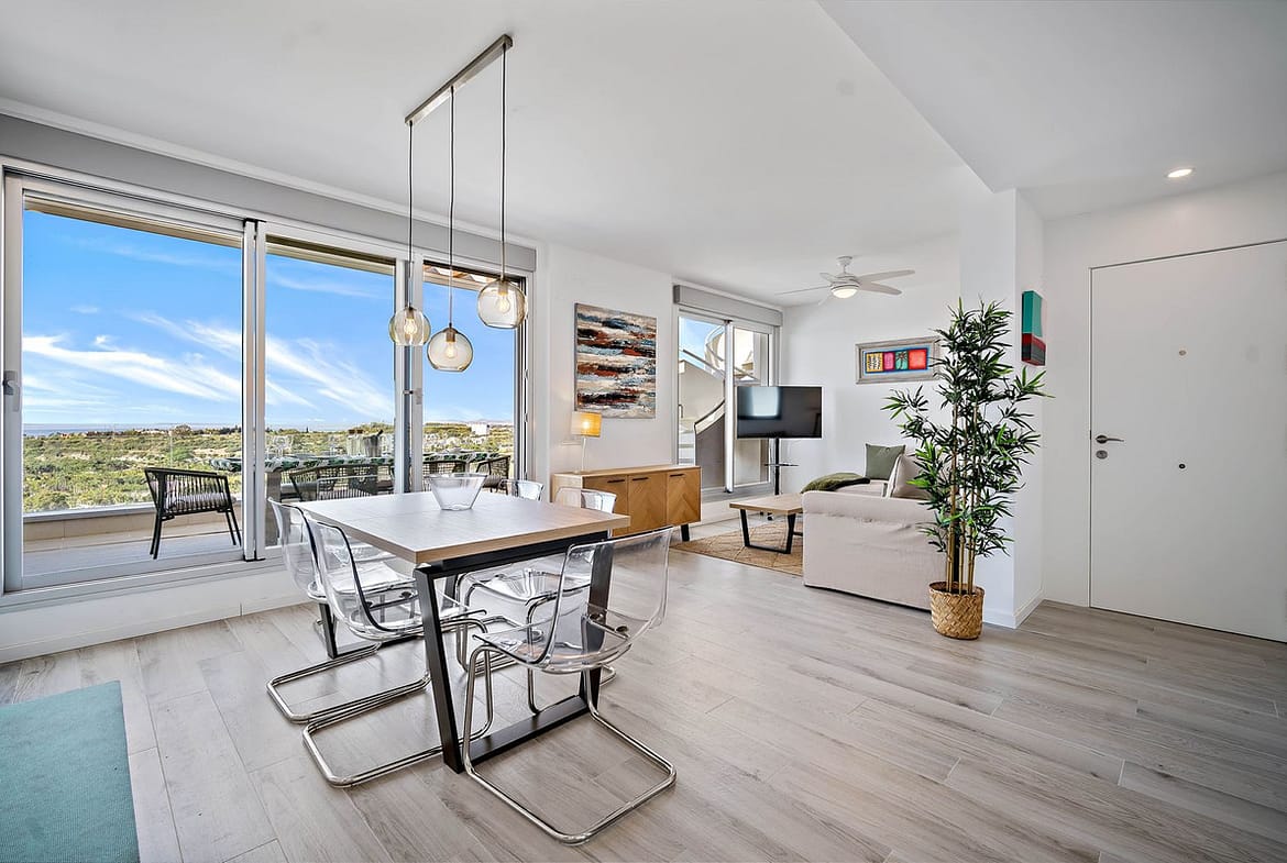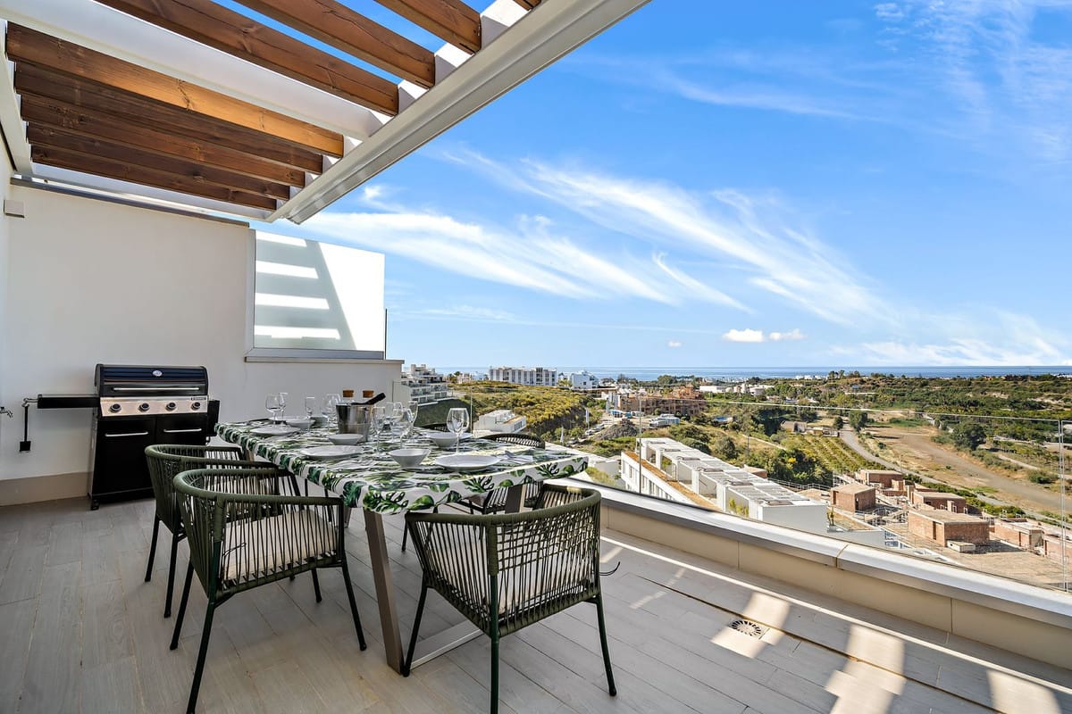 A wonderful light and modern apartment with incredible views over the countryside and sea bay. This superb holiday home is set apart from the rest thanks to its enormous private roof terrace, perfect for enjoying the sun throughout the days and into the evenings.
