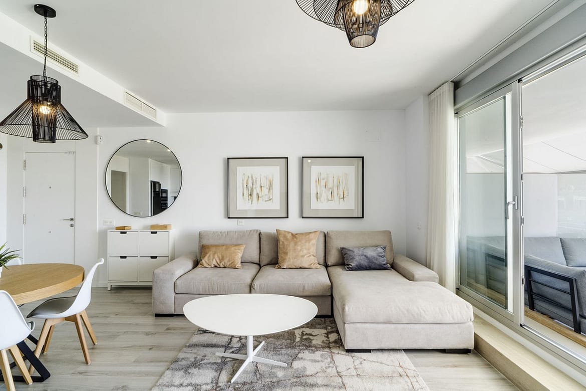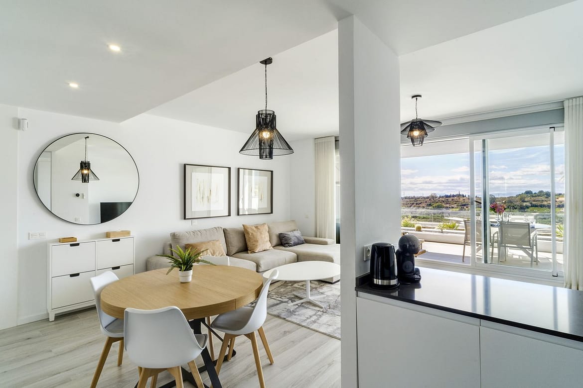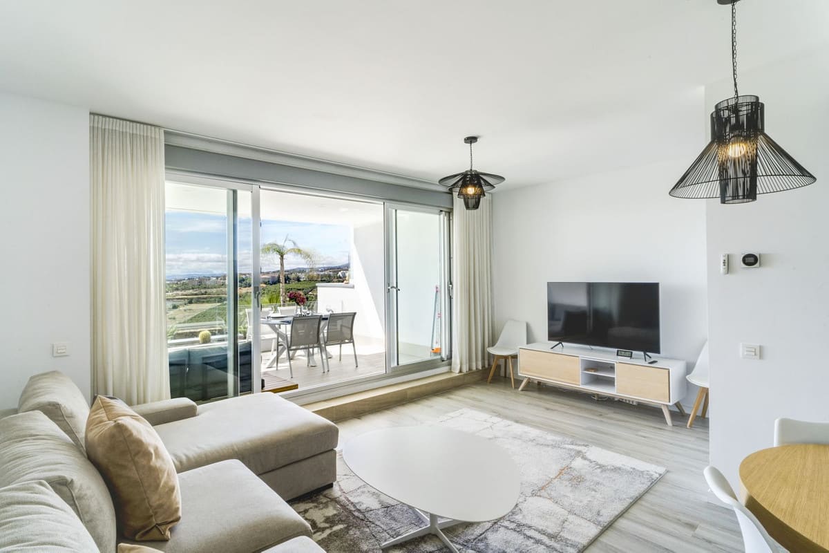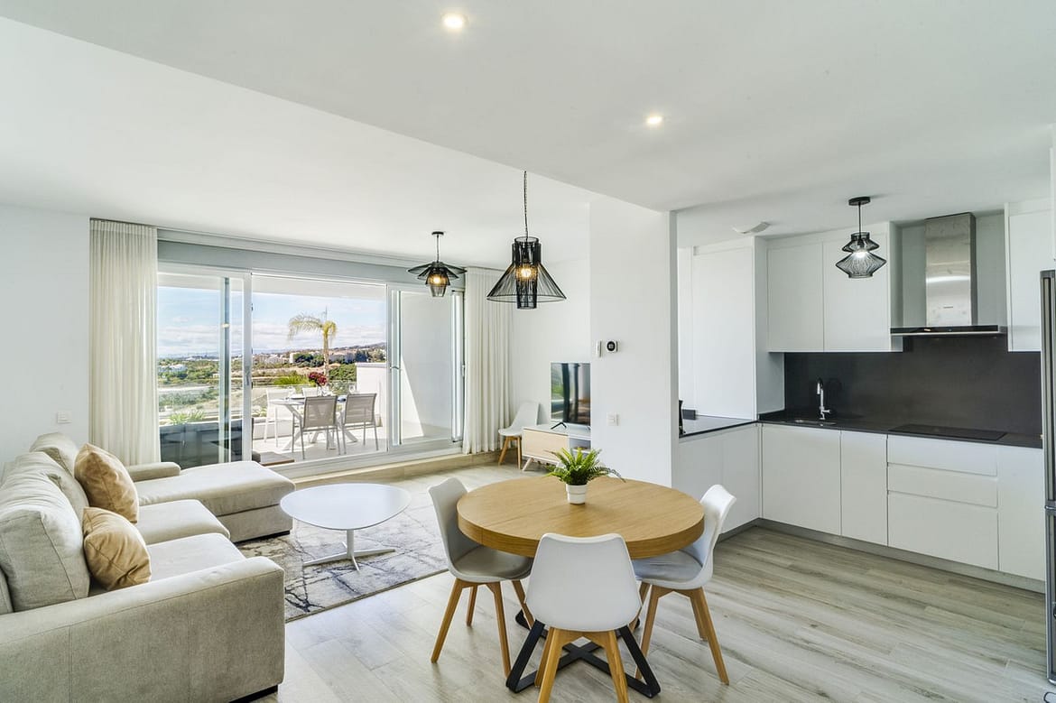 A bright and contemporary apartment offering stunning views of both the countryside and the coast. This exceptional holiday retreat features a beautifully furnished open living room, and a spacious terrace ideal for soaking up the afternoon sun.