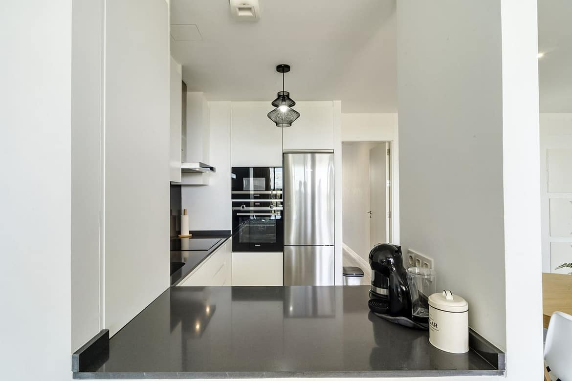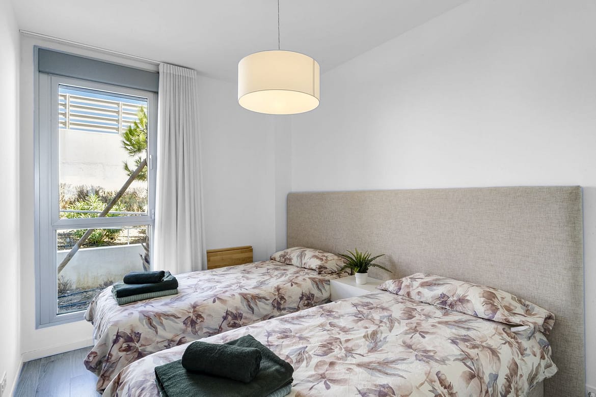 This ground floor apartment into a spacious open-plan kitchen, lounge, and dining area, where large windows frame breathtaking sea views and lead to a well-positioned south-west-facing terrace. The kitchen comes fully equipped with modern appliances, including a Nespresso machine, ensuring you have everything you need for your stay.