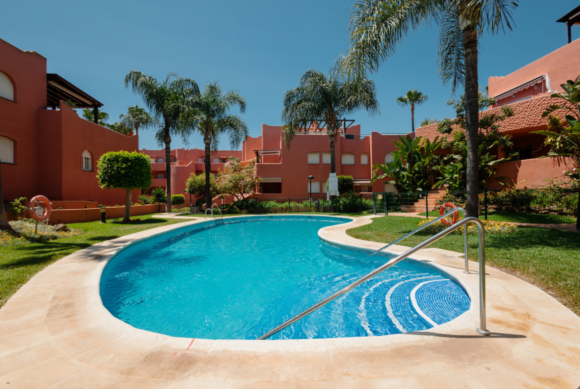 The complex offers several pools with loungers and a tennis court, perfect for relaxing or practicing sports. Its tranquil surroundings, with gardens and direct beach access, provide a unique atmosphere to enjoy the exceptional Costa del Sol climate.