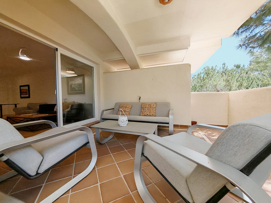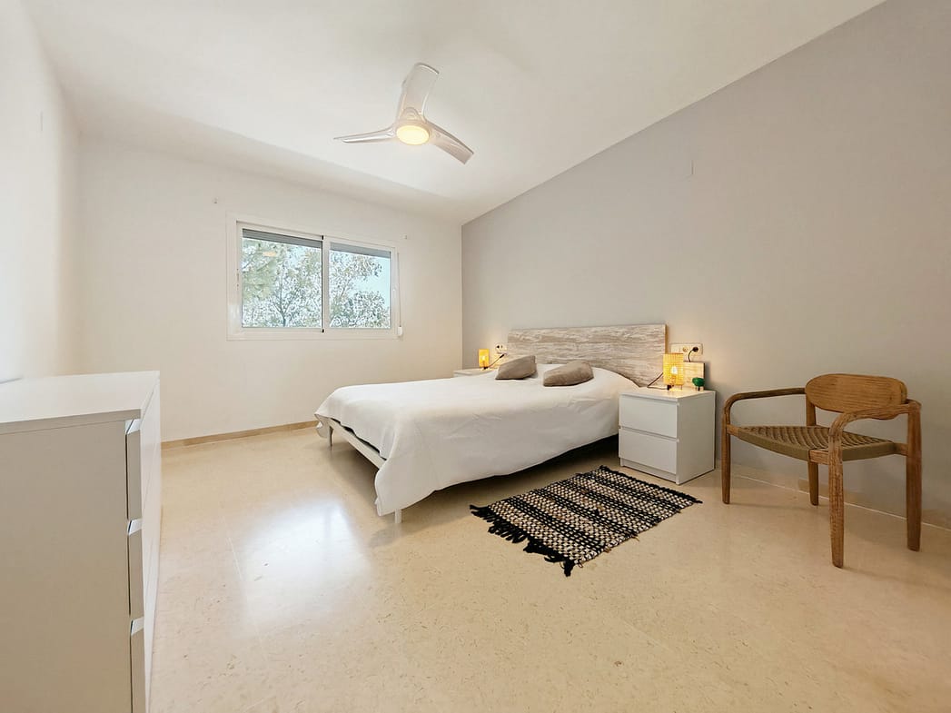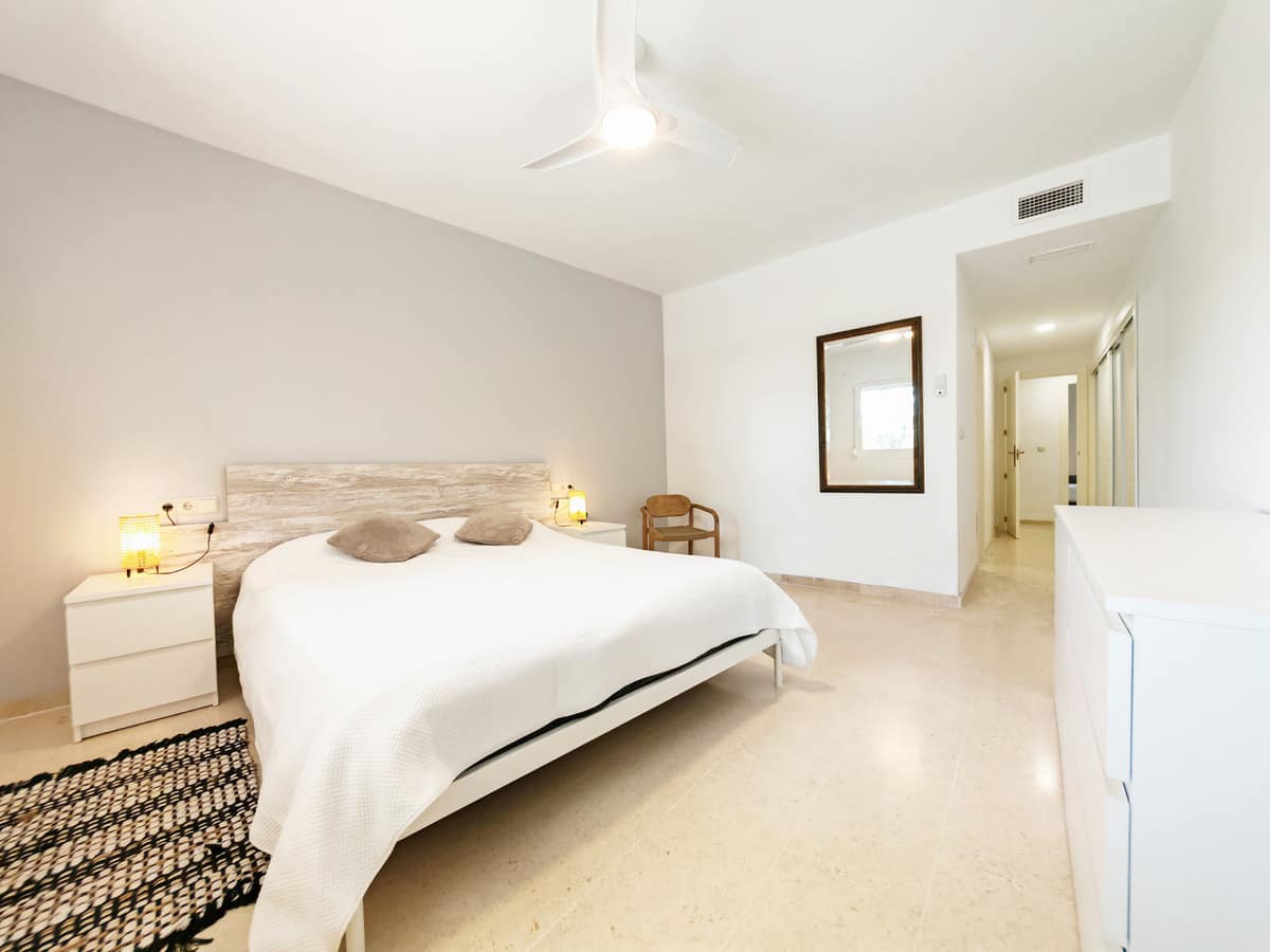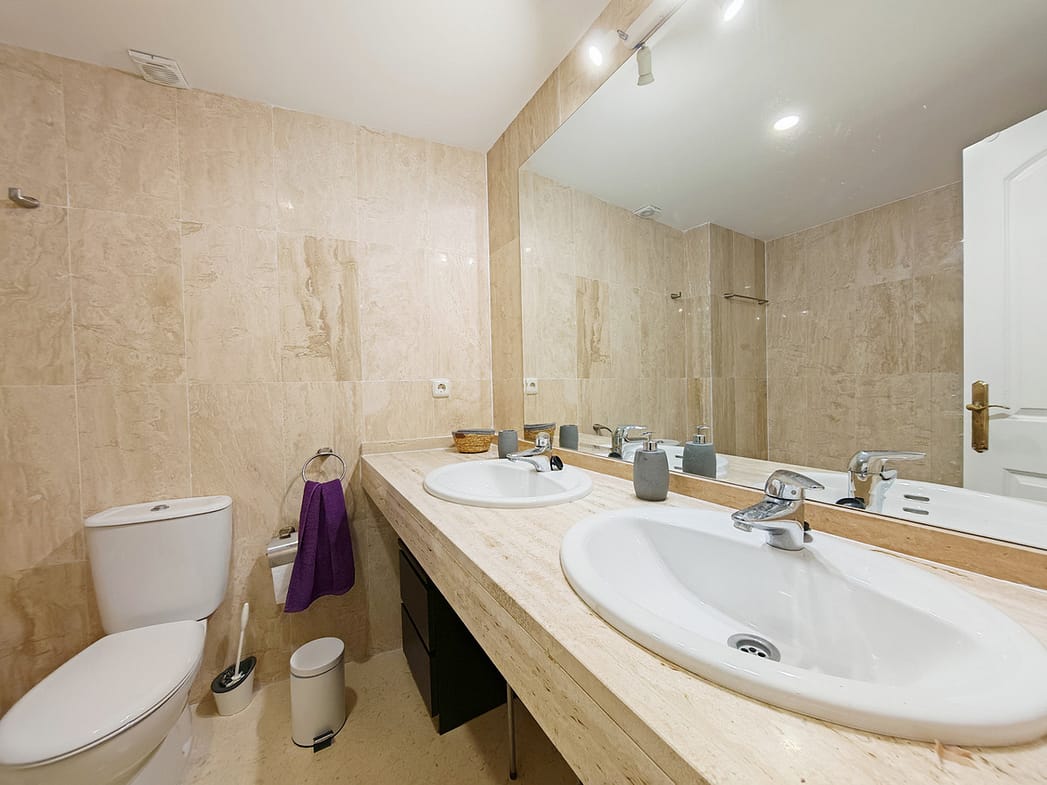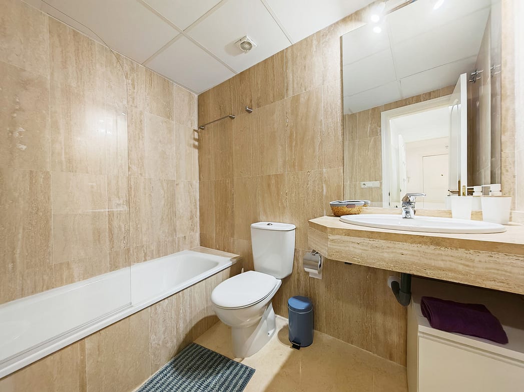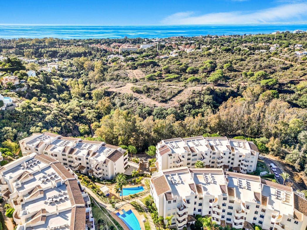 Apartment for rent in Elviria, Marbella with 2 bedrooms, 2 bathrooms, 1 on suite bathroom and with orientation south/west, with communal swimming pool, communal garage (1 parking spaces) and communal garden. Regarding property dimensions, it has 123 m² built and 16.25 m² terrace. Has the following facilities amenities near, air conditioning, fully furnished, fully fitted kitchen, marble floors, private terrace, kitchen equipped, water tank, country view, indoor pool, laundry room, internet – wi-fi, covered terrace, fitted wardrobes, gated community, lift, close to sea / beach, close to golf, balcony, excellent condition, ceiling cooling system, close to town, close to schools, surveillance cameras, inside golf resort and close to restaurants.