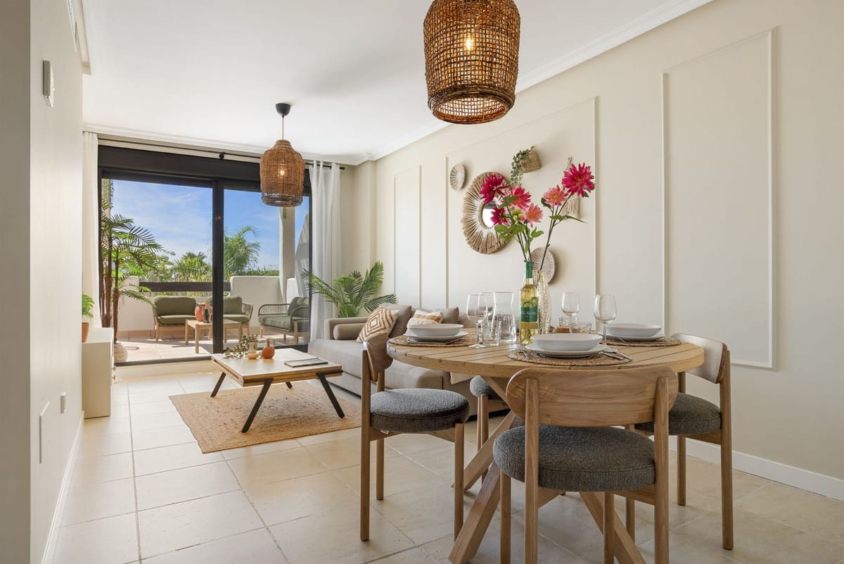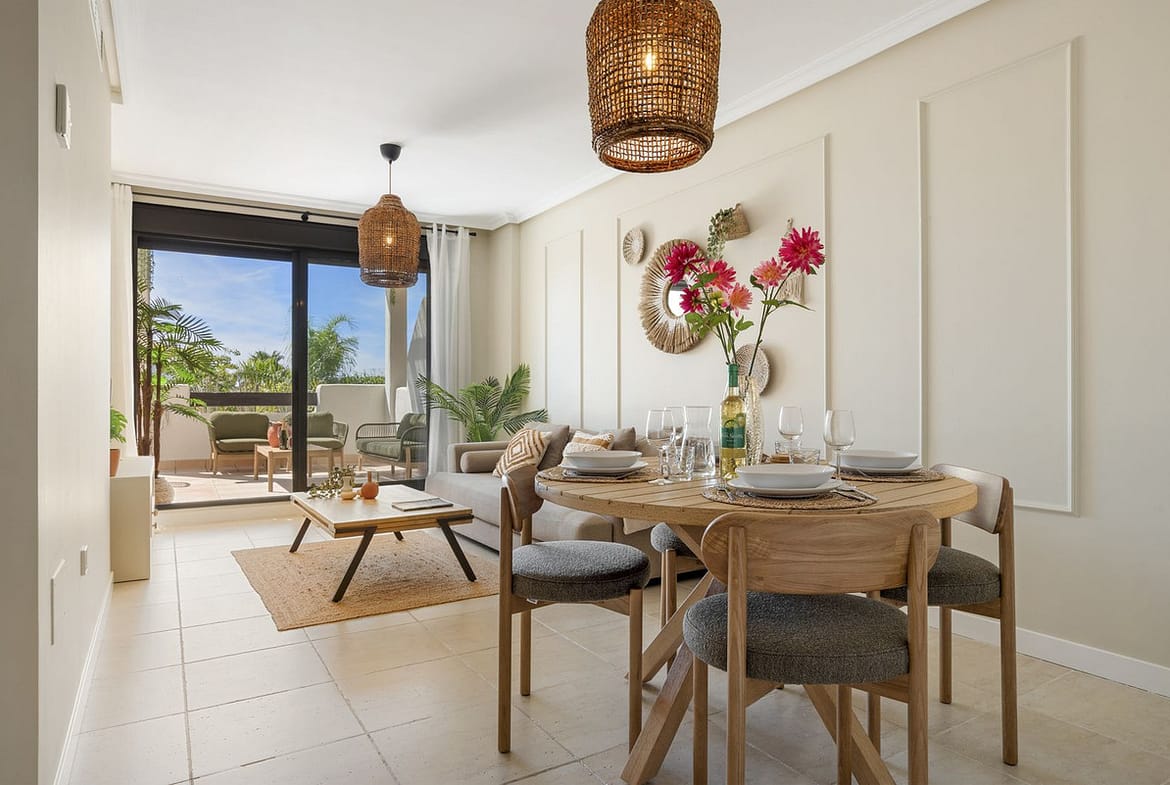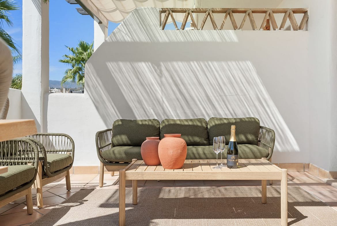 Sunset Golf is an exclusive Mediterranean residential complex, beautifully located on the La Resina Golf Course in Estepona, along the stunning Costa del Sol. This modern apartment features two bedrooms and two bathrooms. The master bedroom includes an ensuite bathroom and a comfortable double bed, while the second bedroom is furnished with two single beds – ideal for family or guests.