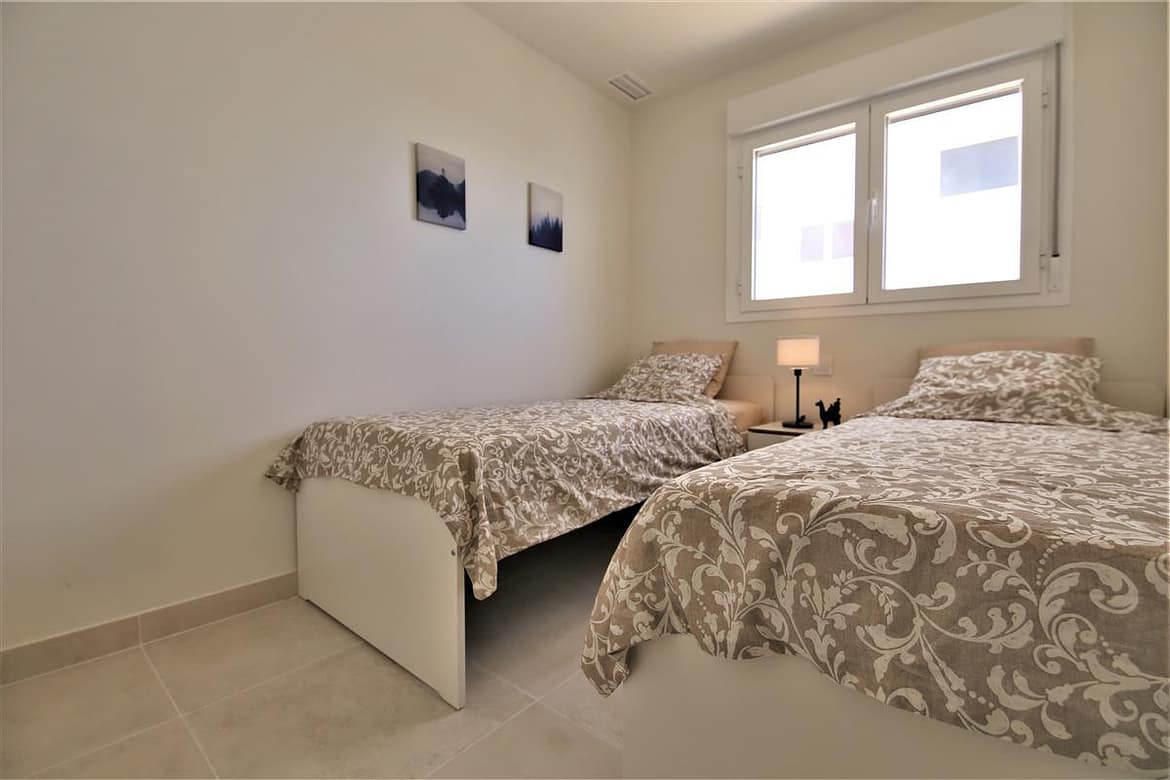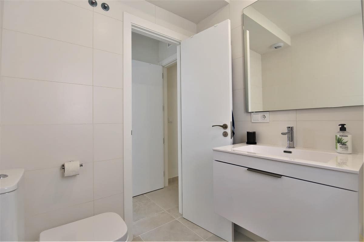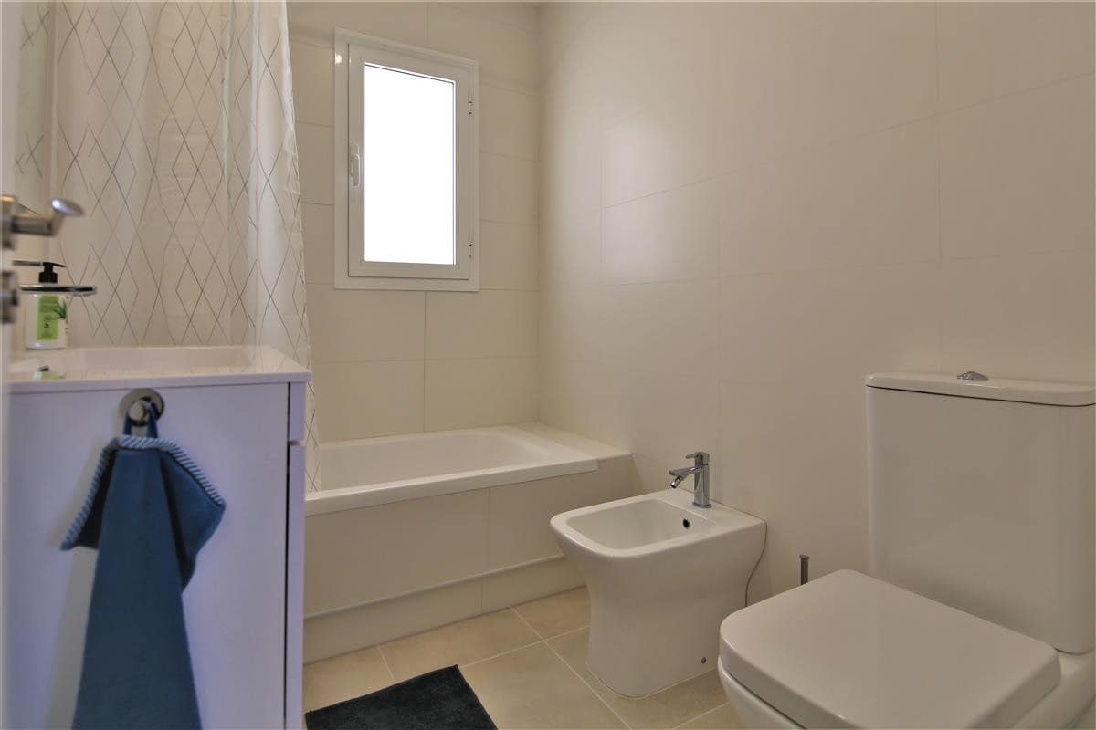 This very modern apartment is about a 10-12 minute walk from the marina of Estepona. It offers two bedrooms and two bathrooms and a spacious balcony for outside dining or sun bathing. It is perfect for families due to the location and amenities. In the master bedroom, with its king-size bed and plenty of wardrobe space, you'll find the en-suite bathroom with its modern feel and white suite comprising of bath with hand-held shower, hand basin, WC and bidet. The smaller twin bedroom has two single beds and uses the family shower room with shower cubicle, hand basin and WC. The kitchen has all mod cons, including a small dishwasher, three ring cooking hob, oven and microwave. There is also a separate laundry area with washing machine. On the south-west facing balcony you’ll find a dining set for four guests, it is surrounded by glass panels to make it feel even more spacious. The lounge comprises of a dining table with four chairs, a comfortable three seater sofa and a flat screen television with its international multi-channel system, offering British, French, Dutch, German and Scandinavian languages. The apartment is fully air-conditioned with a new and efficient central system and has a high-speed fibre optic internet connection for your use. Within the urbanisation of Puerto Blanco, you'll find the large community swimming pool only a short walk from the property (around 200m). A car is not necessary but there is a private parking space in the secure underground car park if needed however the parking space is only suitable for small or medium sized cars. All in all, a great family holiday apartment.