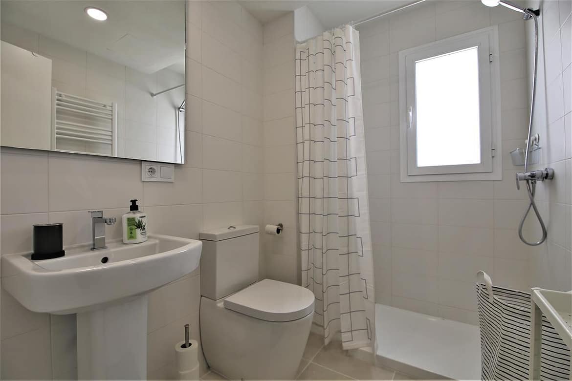 This modern two bedroom apartment is about 10 – 12 minutes’ walk from the marina of Estepona with its bars, restaurants and cafes. There are two supermarkets (an OpenCor and a SuperSol) within a few minutes’ walk and also a cafe which adjoins the gym/sports centre of "Las Mesas", which is just a minute away. An ideal location if you’re thinking about fitness during your holiday. There are two blue flag beaches in the vicinity – Playa La Rada and Playa del Cristo, both of which have chiringuito beach bars, where you can buy food and drinks during your beach time. The centre old town of Estepona with its flower lines streets and traditional shops and restaurants will take about 12-5 minutes to walk to. The Sunday flea market is held each week in the marina of Estepona and the large Wednesday market, selling all manner of things, is about four minutes away. All in all an ideal location for a holiday in Estepona.