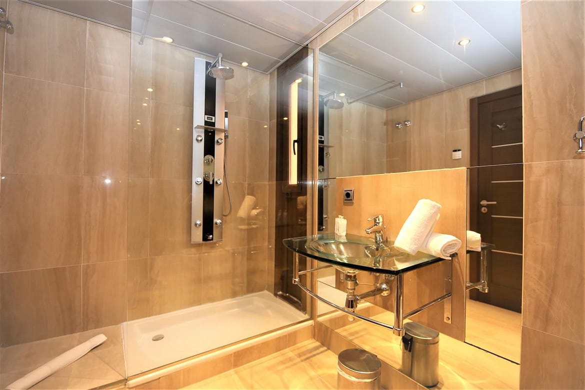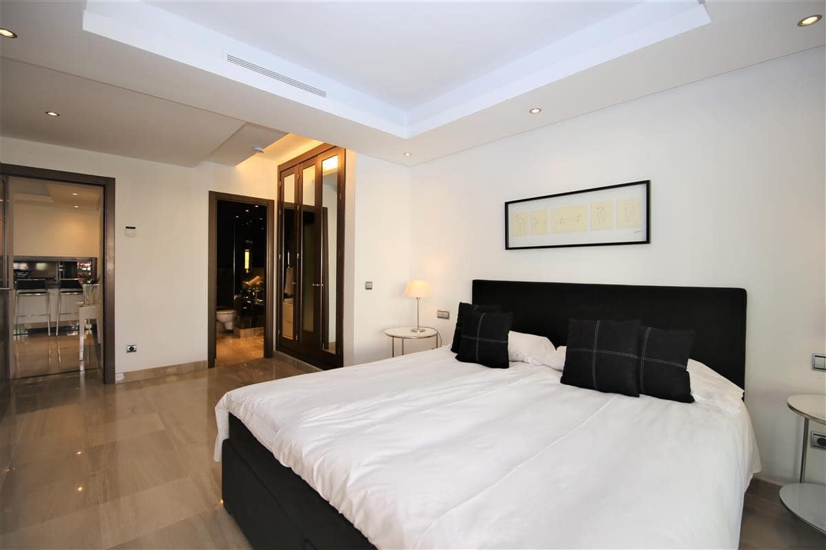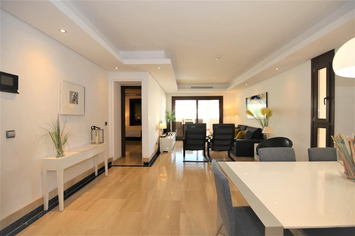 A fantastic, quality apartment located on a first floor in the popular urbanisation of Bahia de la Plata in Estepona. This elegant family apartment, with its tasteful decoration, offers comfortable accommodation for four guests. The property has two large bedrooms equipped with spacious built-in wardrobes and central air conditioning. The master bedroom offers a comfortable, king size bed and also has an elegant en-suite bathroom. The bathroom has a bath with over-head shower, double hand basin, WC and bidet, it is also equipped with underfloor heating (only available during the winter months). The second bedroom has two single beds and a modern en-suite bathroom with walk-in shower, hand basin, WC and bidet. The modern kitchen is fully equipped with high-end appliances and also has a small laundry room with a washing machine and mini fridge. The kitchen has a small breakfast bar for two with bar stools, which connects to the living-dining area. The spacious living room is very well presented and offers a dining area for up to six guests and a seating area with comfortable sofas and a flatscreen TV with a high speed fiber optic internet connection and international channels such as Sky. The lounge has direct access to the large south west facing balcony through the sliding doors. From here you have great views towards the inviting communal swimming pool and lovely gardens. The balcony is equipped with two sun loungers, an outdoor dining area for four guests and a relaxer/sofa area with comfortable seating for six. The community features two large pools with separate children's pool and direct access to a secluded beach and promenade. The community also has a well equipped spacious gym, paddle court and spa including indoor pool, Jacuzzi, sauna and steam room. A private parking space is also available in the underground communal garage along with plenty of street parking just outside the urbanisation. In general, due to the location and the qualitiy of this apartment, there is no doubt that this is the perfect accommodation for your family holidays in Estepona on the Costa del Sol.