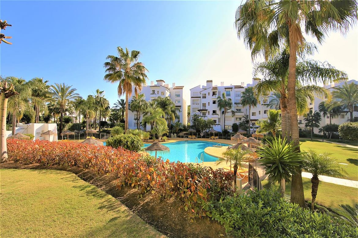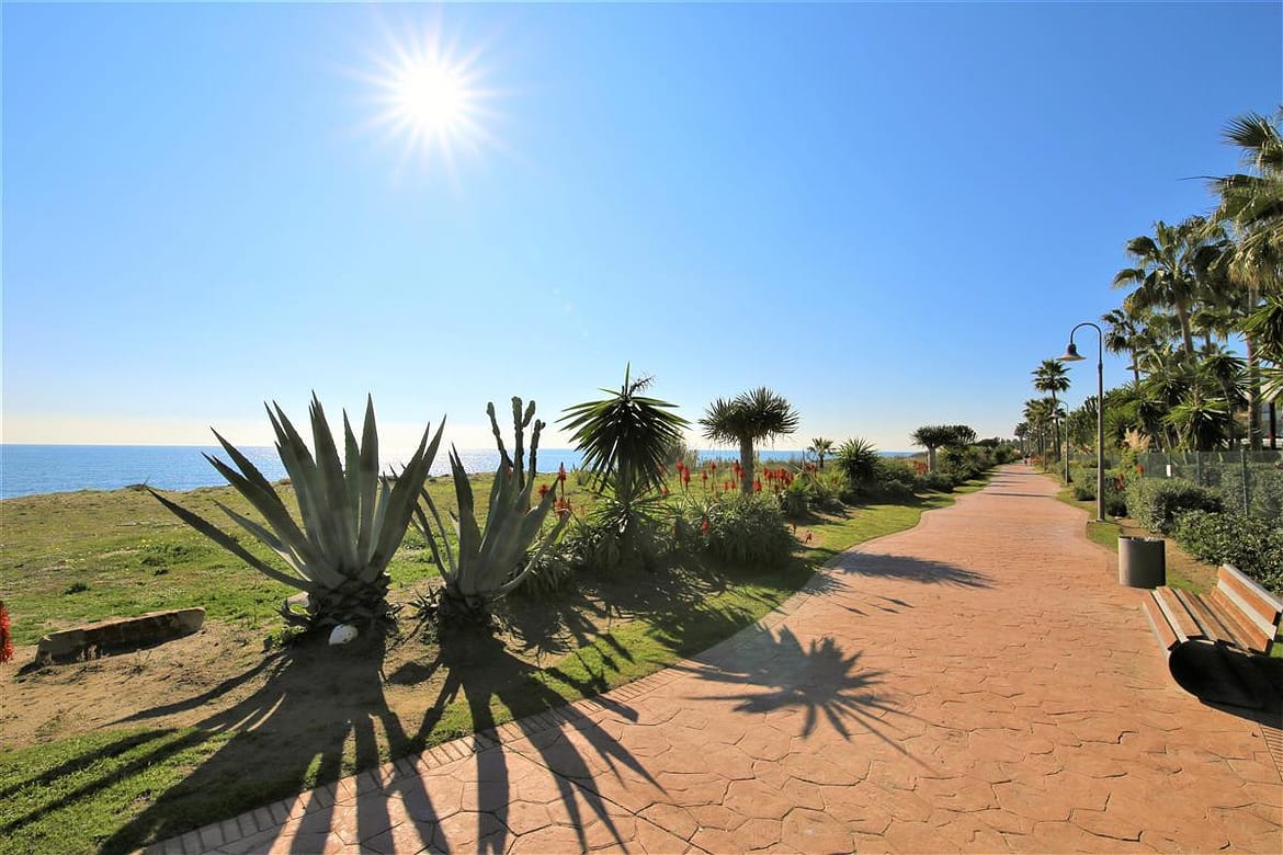 Costalita del Mar is a popular urbanisation well known for its beautifully maintained gardens, with plenty of palm trees and colourfull mediteranean flowers. It is very well located on the beach-side of the Cancelada exit of the A7 road between Estepona and San Pedro de Alcantara. There are two large communal swimming pool with plenty of communal sunloungers for your use. A short walk to the beach where you can find numerous bars and restaurants and supermarkets located on the other side of the main road. Several charming towns such as Estepona and San Pedro de Alcantara are only a short drive away and of course, Marbella and Puerto Banus with its busy nightlife, high end shops and gourmet restaurants.
