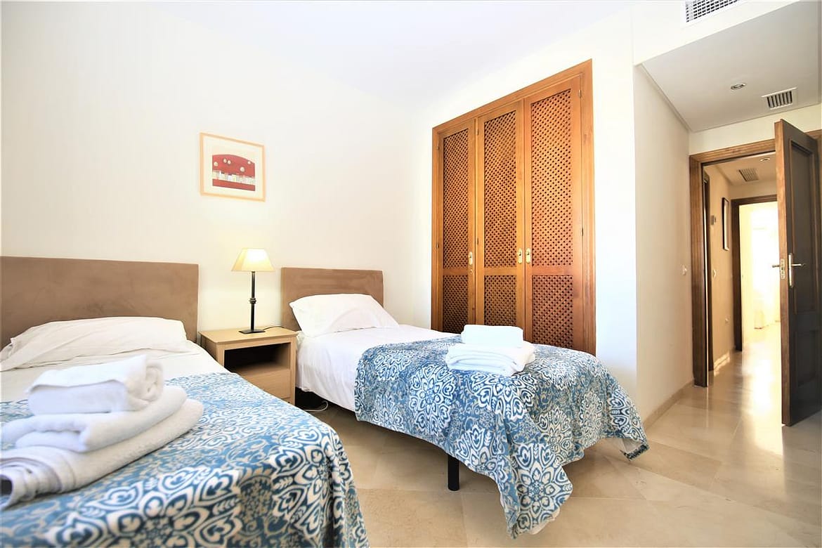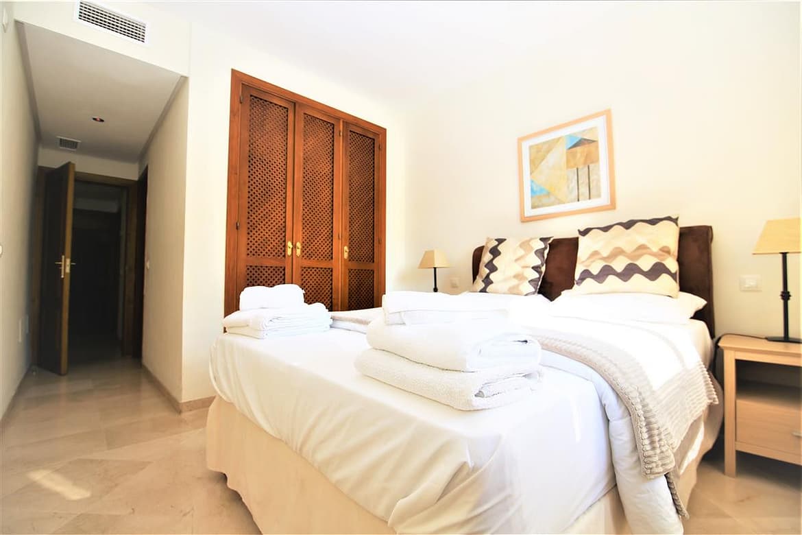 A modern and spacious apartment located on the popular Costalita del Mar complex on the beach-side of the Cancelada exit. It provides a relaxing family environment for those looking to enjoy a holiday in between popular towns such as Estepona and Marbella/Puerto Banus. The apartment, located on a second floor benefits from an en-suite king-size bedroom with a further twin bedroom that share a family bathroom. There is a good sized balcony with a dining area for up to six guests that overlooks the tropical and Mediterranean gardens surrounding the large community swimming pool. This apartment is fully air-conditioned for a comfortable stay and the lounge provides several international channels plus Sky channels and a fibre optic high speed internet connection. Films and series are also available in several languages. The lounge provides a sofa bed for a fifth guest, a dining area for up to six guests and a fully fitted kitchen with an extra laundry room. The property also offers a private parking space (for a small or medium size car) in an underground communal garage along with extra storage if needed. There is also plenty of street parking around the urbanisation. Costalita del mar is a modern and well maintained complex with gardens that have streams running through them and a small lake at one end. There are lovely walkways through the gardens, which take you down to the waterfront and beach. As an added benefit, there is 24 hour security and the development is gated. A great location for a great holiday.