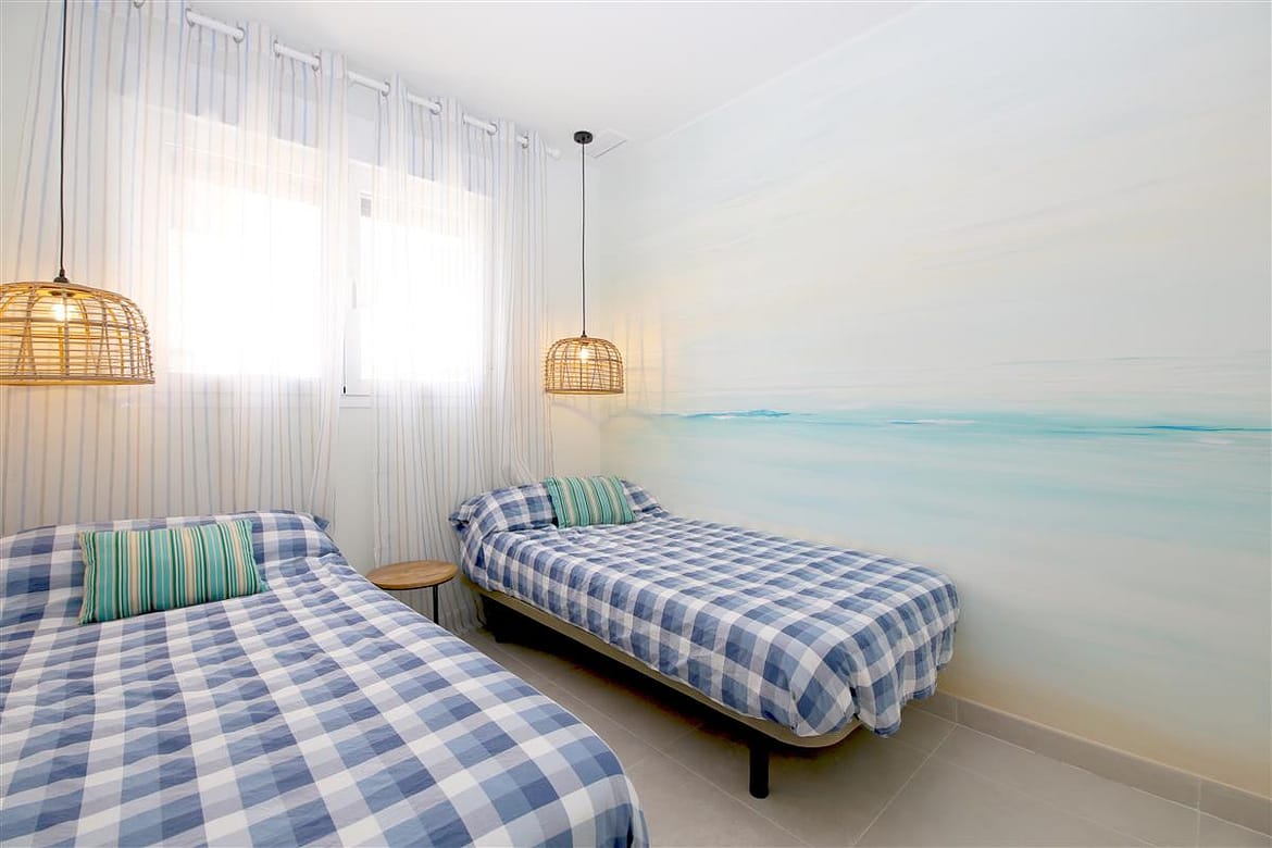 This modern two bedroom apartment is about a 10 minute walk from Estepona port with its bars, restaurants and cafes. There are two supermarkets close by – OpenCor and a Carrefour Express within a few minutes’ walk and also a cafe which adjoins the gym/sports centre of "Las Mesas" which is just a minute away. An ideal location if you’re thinking about fitness during your holiday. The closest beaches in the vicinity – Playa de la Rada and Playa del Cristo, both of which have chiringuito beach bars, where you can buy food and drinks during your beach time. Estepona old town, with its flower lined streets and traditional shops and restaurants will take about 15/20 minutes to walk to. The Sunday flea market is held each week in the port area and the large Wednesday market, selling all manner of things, is about four minutes away. All in all, an ideal location for your holiday.