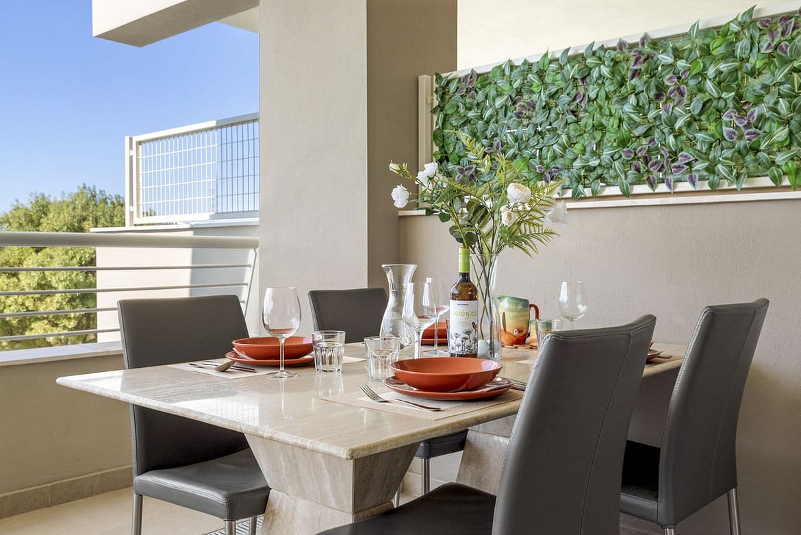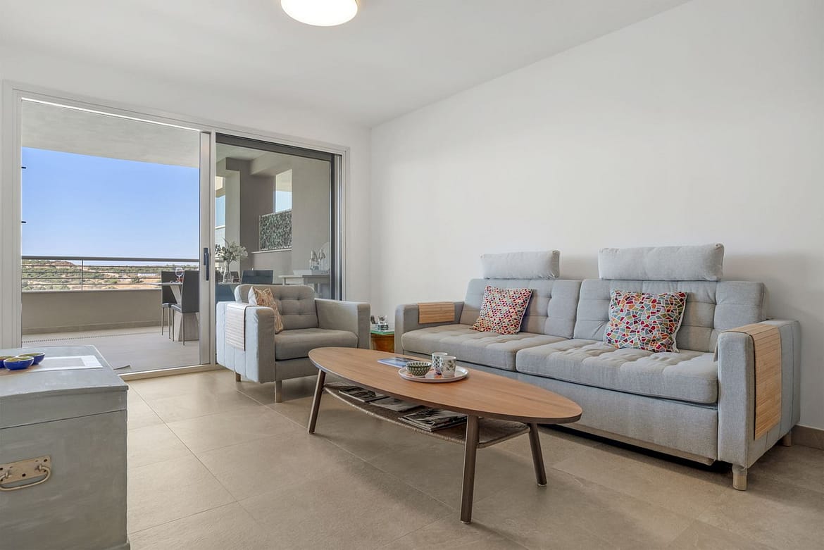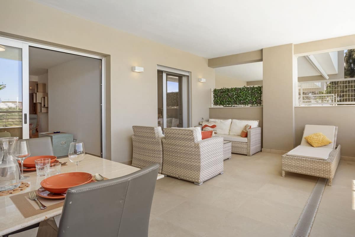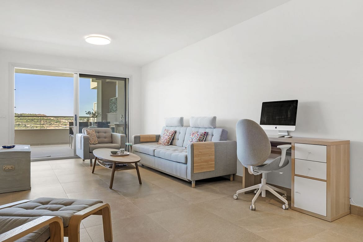A large terrace with panoramic views of the golf course and surrounding mountains extends your living area outdoors – ideal for morning coffee, reading, or simply soaking up the Mediterranean light.
