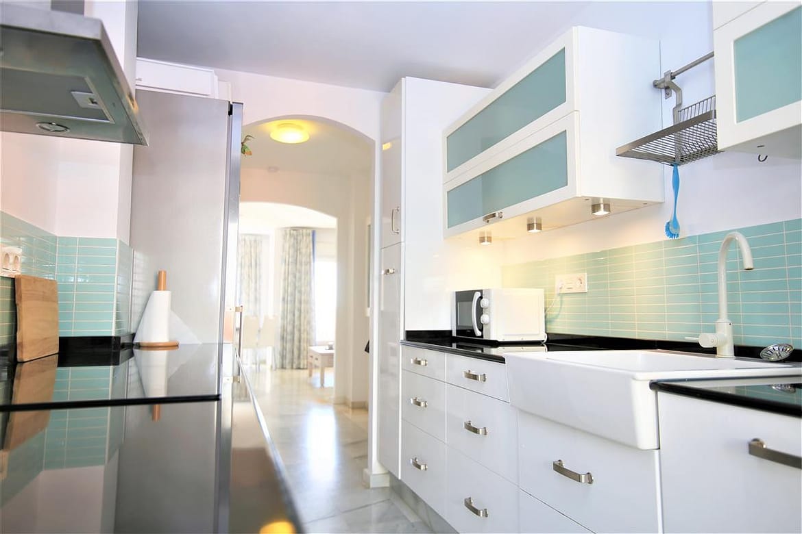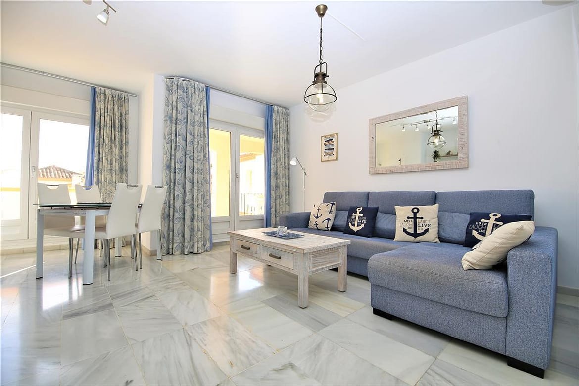 The apartment is on a popular urbanisation called the Belgravia Club. This is located only minutes walk to the entrance of Estepona port and just three minutes from the closest beach. The urbanisation is gated and private parking is possible on a first come first served basis. The whole area has been nicely landscaped and provides plenty of Mediterranean plants and squares to walk through. There are two supermarkets close by. The Supersol is a short walk away plus the Opencor in the port which is slightly more expensive but has longer opening hours and closes at 2am. Estepona is a good location when coming to the Costa del Sol as it is a pretty town and is a good central location from where you can drive up and down the coast for sight seeing purposes.