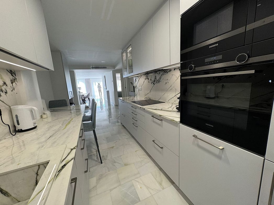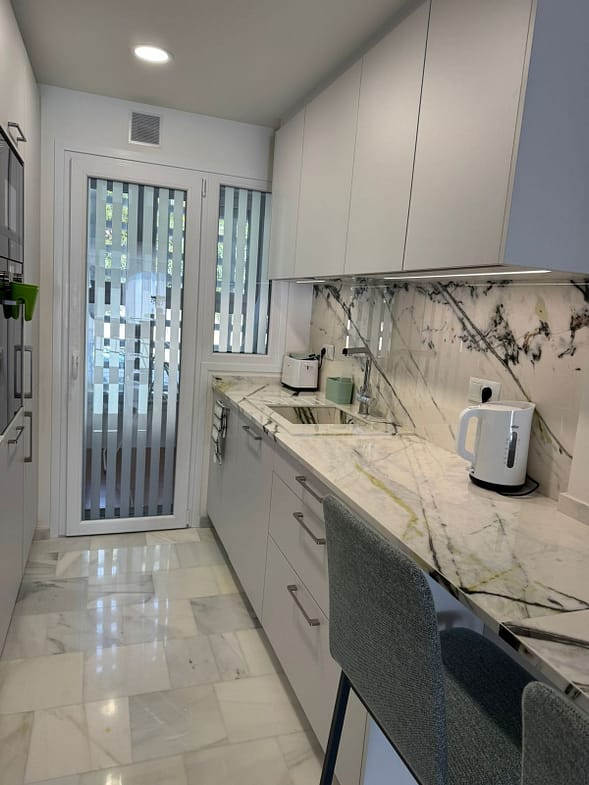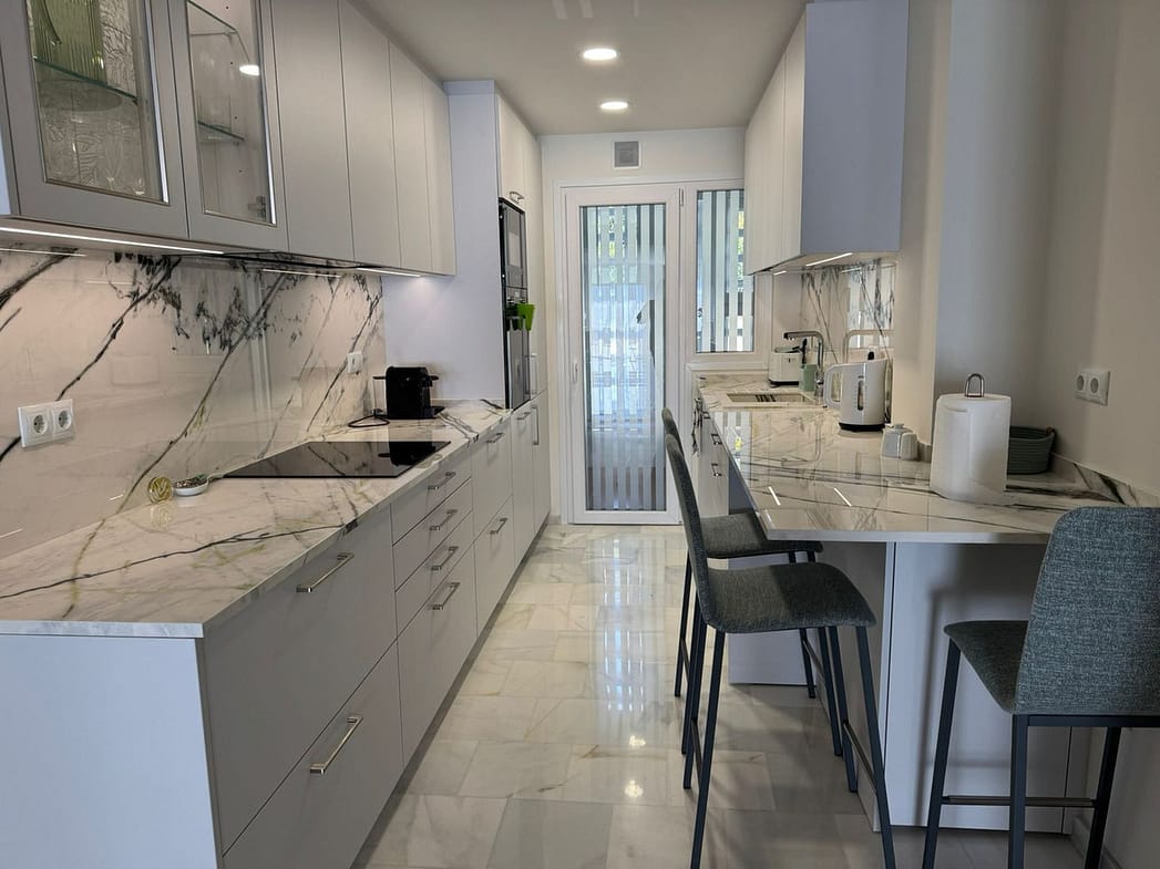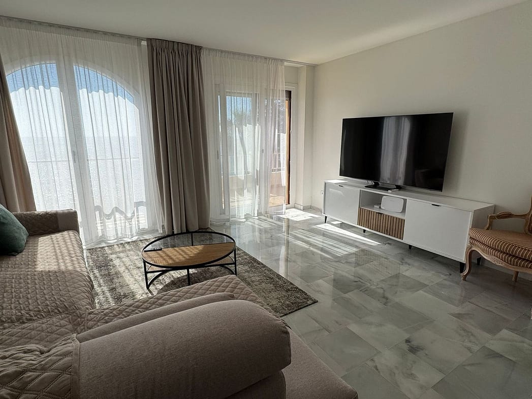 The apartment offers 2 bedrooms and 2 bathrooms and comes fully equipped with a dishwasher, washing machine, and Smart TV, providing comfort for medium-term stays.