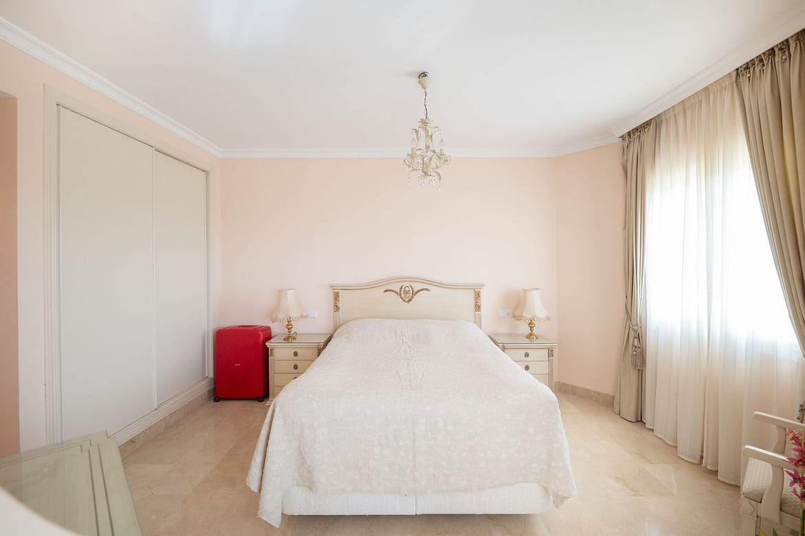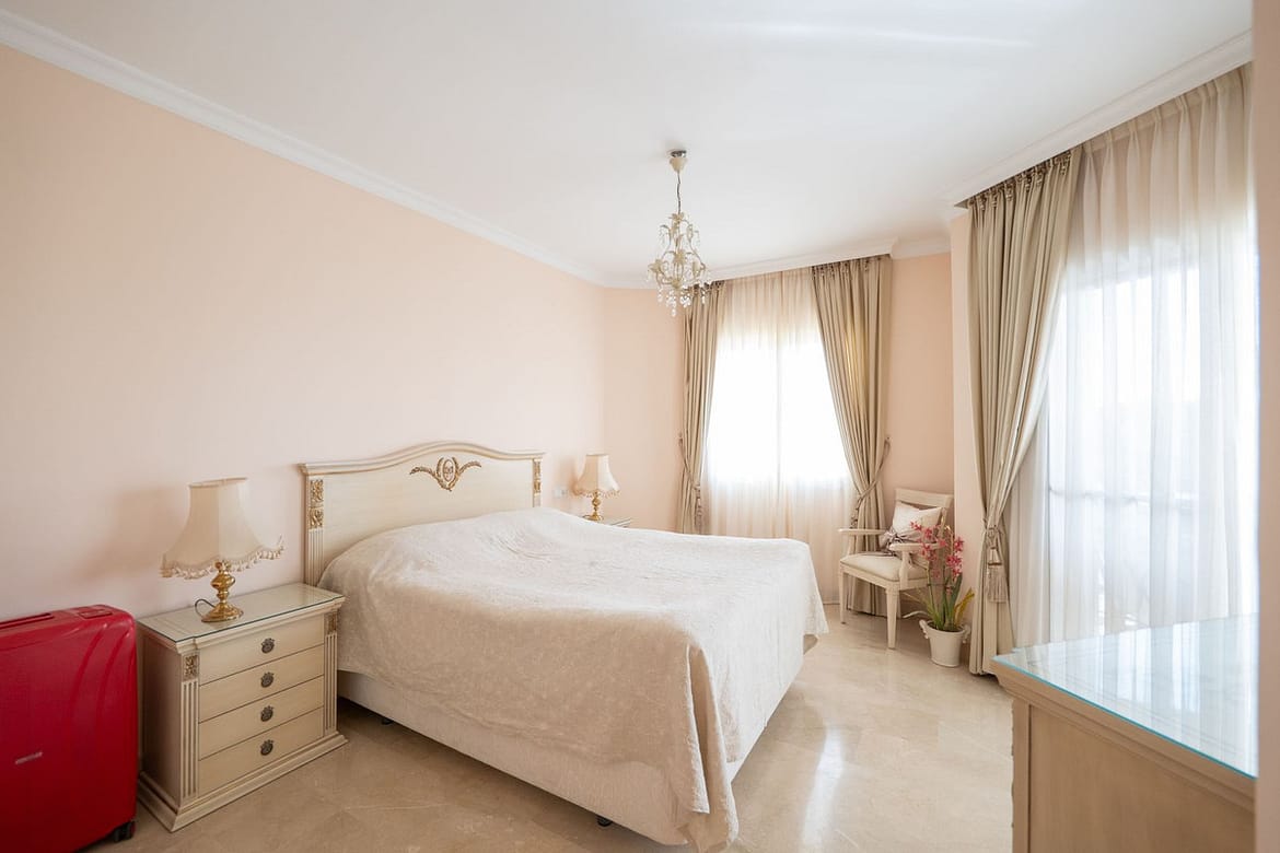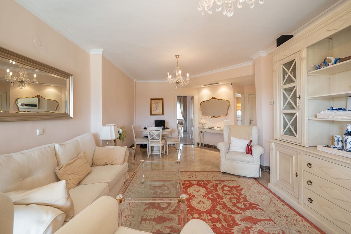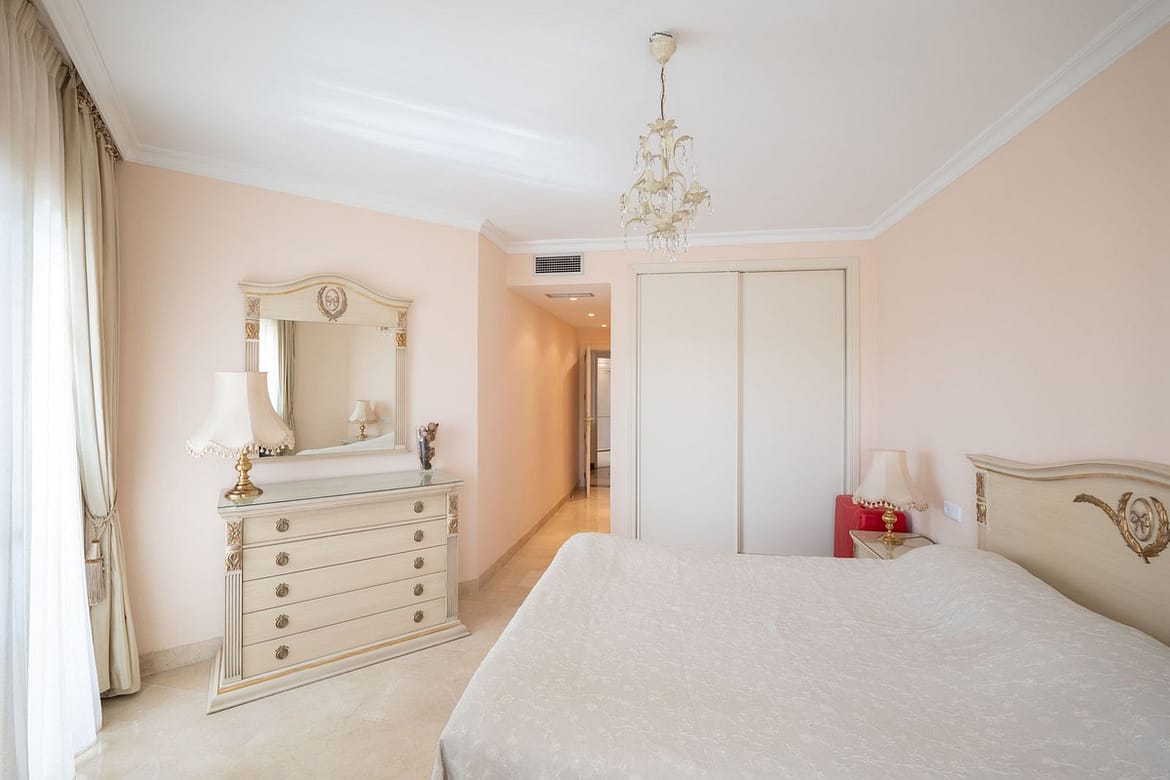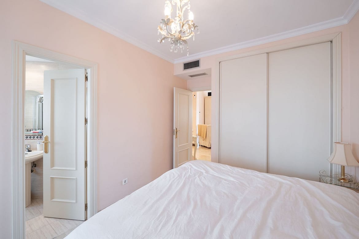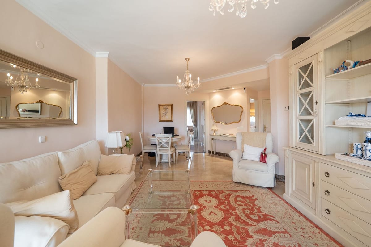 Located in the desirable Bel Air zone, this south-east facing apartment features two spacious bedrooms with panoramic views of the sea, La Concha mountain, and the golf course.