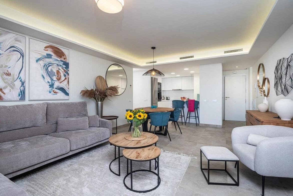Just steps from the beach and popular chiringuitos, this brand-new luxury apartment offers an unbeatable blend of style, comfort, and location. With elegant furnishings, abundant natural light, and views of Estepona’s charming historic center, it’s the perfect base for your Costa del Sol getaway.