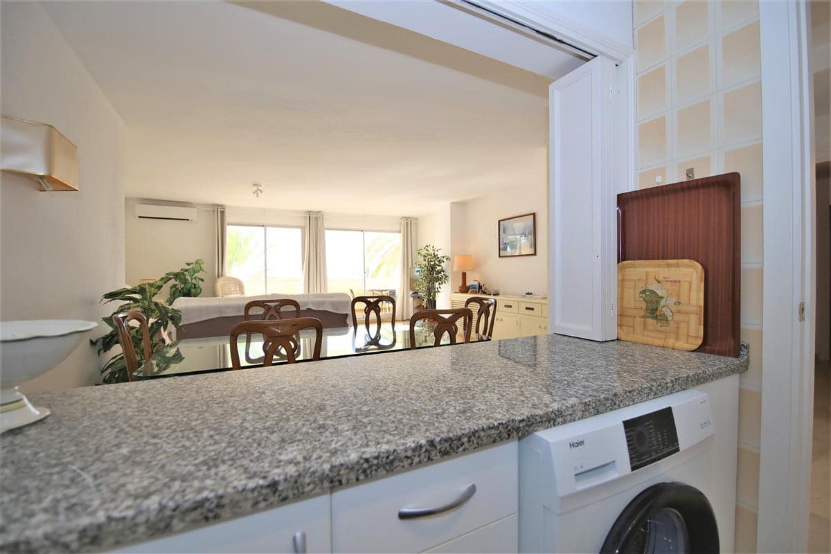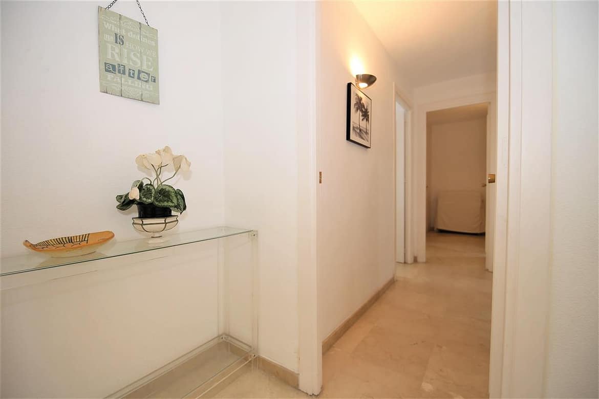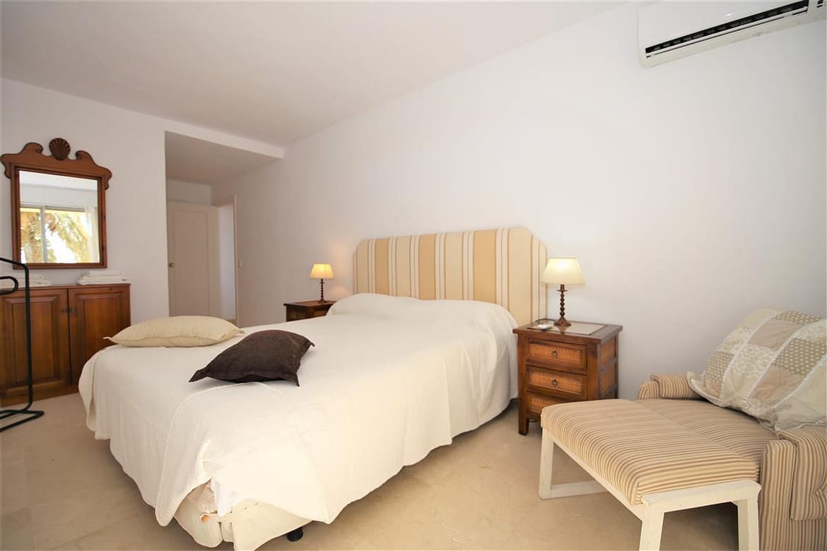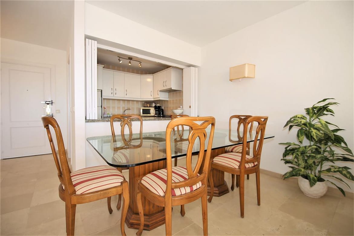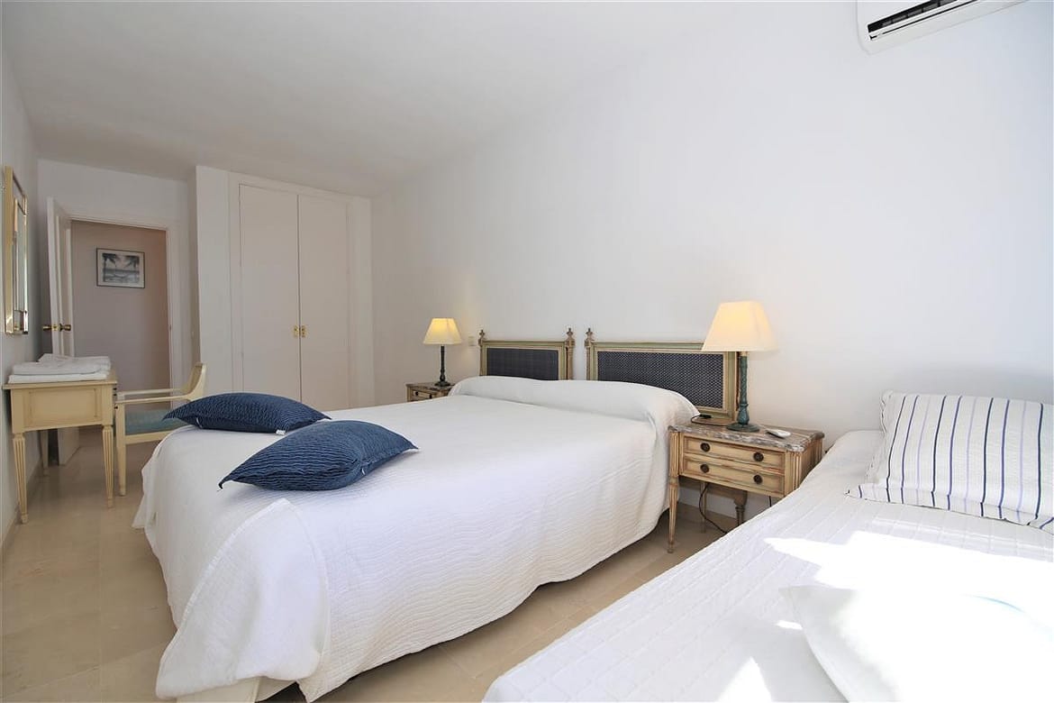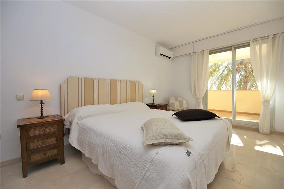 A lovely south facing, front line apartment located in Estepona port. A good size ground floor property with two spacious bedrooms, two bathrooms a bright lounge-dining area and kitchen. The master bedroom has a king size bed and a completely renovated en-suite bathroom with shower, WC and hand basin. It also has a dressing area with spacious built-in wardrobes. The master bedroom has air conditioning and direct access to the south facing balcony. The second bedroom has a king size bed and an extra single bed with beautiful views to the sea through the balcony. There is another renovated family shower room with shower, WC and hand basin. The large and bright lounge area leads out onto the long balcony which runs along the front of Estepona marina. It has two sun loungers and an extra outdoor dining area with space enough for six guests. The lounge offers comfortable sofas and an independant air conditioning system. A high speed Wifi internet connection is available and the TV offers plenty of British channels (Sky) plus Dutch, Russian, German, French and Scandinavian channels. Spanish TV is all provided by the digital terrestrial broadcast. The kitchen is fully equipped with all the appliances and is half-open to the dining area in the living room. There are two large swimming pools available in the urbanisation, one is set amongst landscaped gardens with a grassy area while the other is terraced around the pool. The property benefits from a private garaged parking space just 250 meters from the property in another urbanisation. There is also a communal parking area which operates on a first come, first served basis. The property would suit golfers, retirees and families. All in all, a highly recommended accommodation in Estepona port.