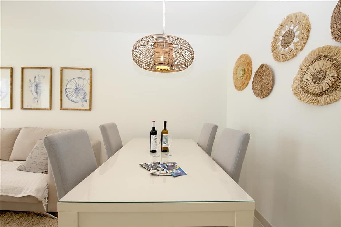 A stylish and modern apartment only a short walk to Estepona port. This lovely property has two bedrooms and two bathrooms offering comfortable accommodation for up to four guests, ideal for families due to its location and amenities. The master bedroom, with its king size bed (160x200cm) and ample closet space has an en-suite bathroom with a modern feel, consisting of a bath with over-head shower, hand basin, WC, and bidet. The second bedroom has two single beds (90x200cm) and uses the family bathroom with a walk-in shower, hand basin and WC. The kitchen is equipped with most appliances, including a small dishwasher, three-ring hob, oven, microwave/grill combo, fridge freezer, toaster, espresso machine and kettle. There is also a separate laundry area with washing machine for your use. The south-east facing balcony features a dining table and chairs for alfresco dining, surrounded by glass panels to make it appear even more spacious. The living room consists of a dining table with four chairs, a comfortable sofa, an additional armchair, and a flatscreen Smart TV with international TV including Sky. The apartment is fully air conditioned with a new and efficient central heating/cooling system and has a high speed fibre optic connection for your use throughout the property. Within the Puerto Blanco residential complex, you'll find the large communal pool just a short walk from the property (approximately 250m). A car is not necessary, but there is private parking in the secure underground garage if needed however the parking space is only suitable for small or medium sized cars. All in all, a great apartment for families, retirees, golf lovers or couples.