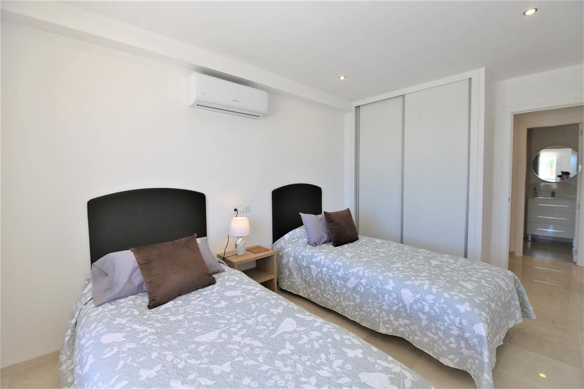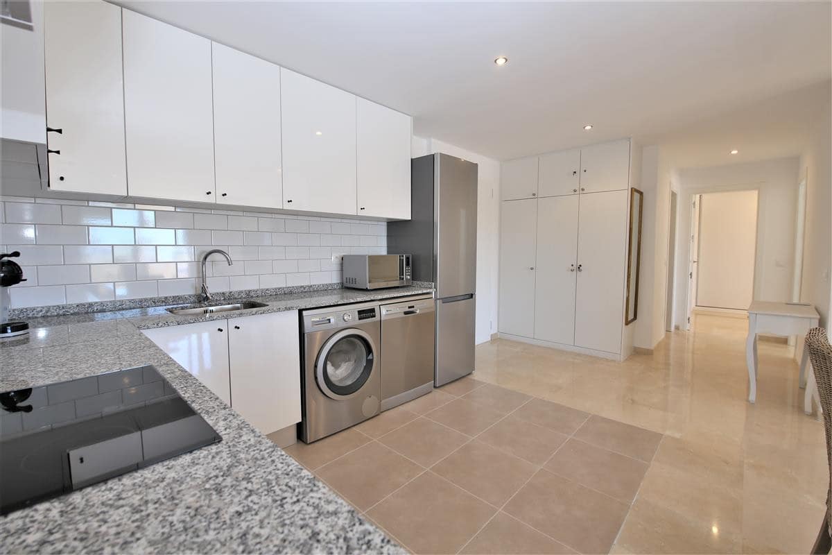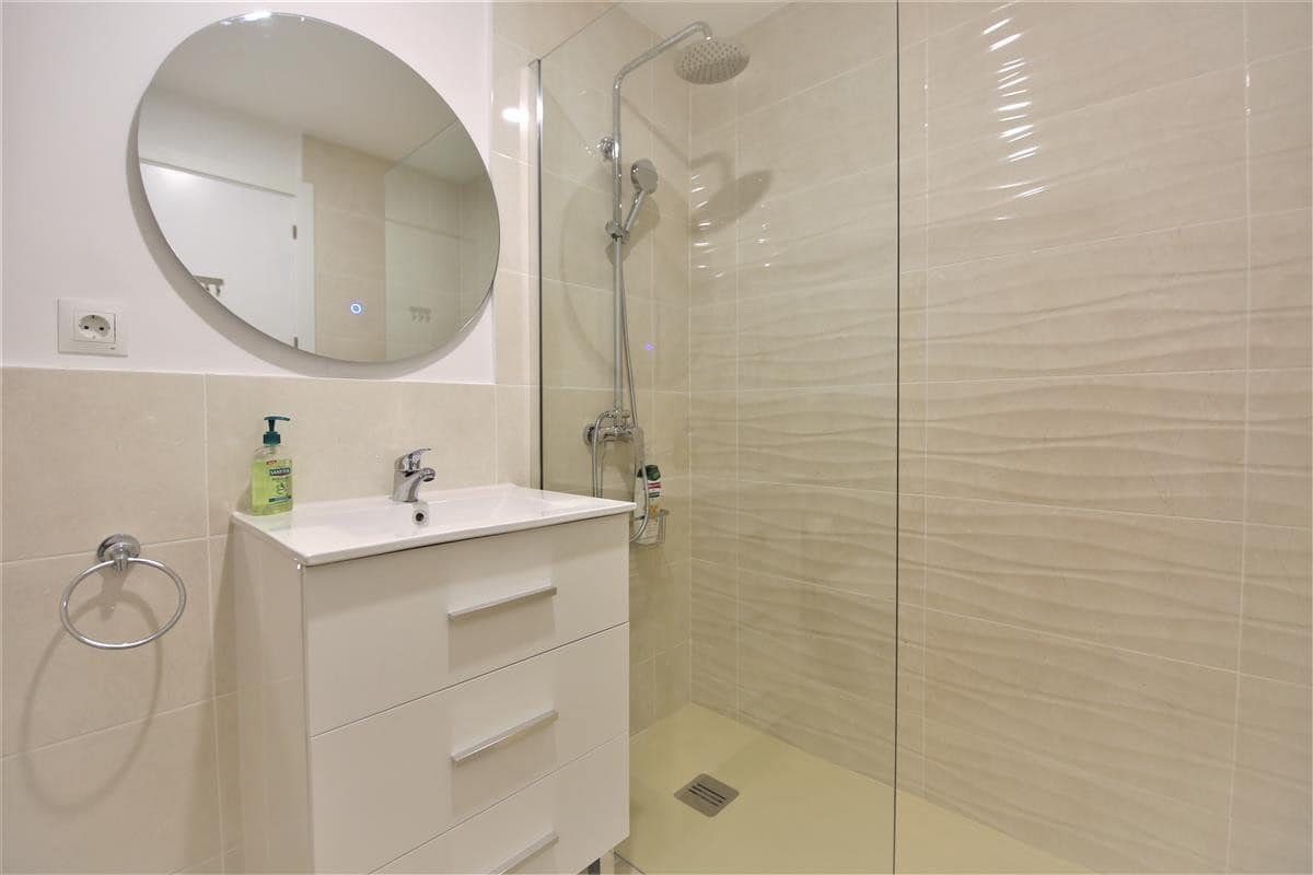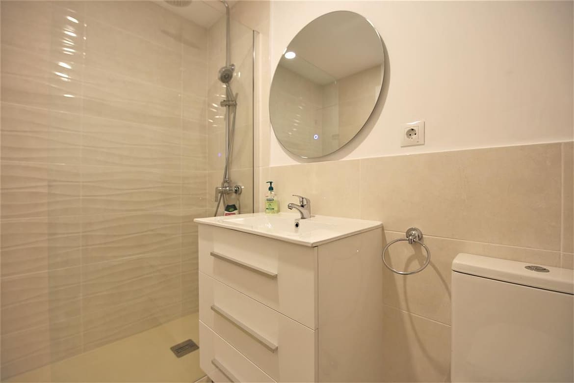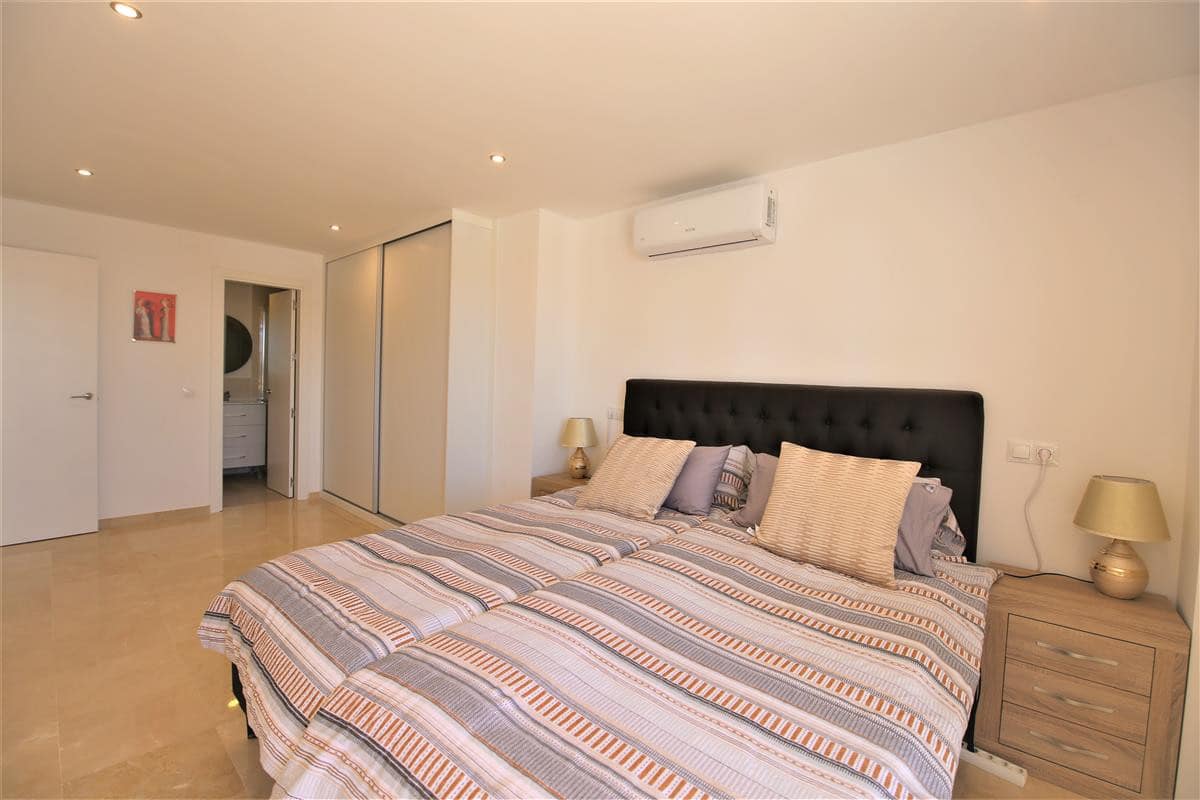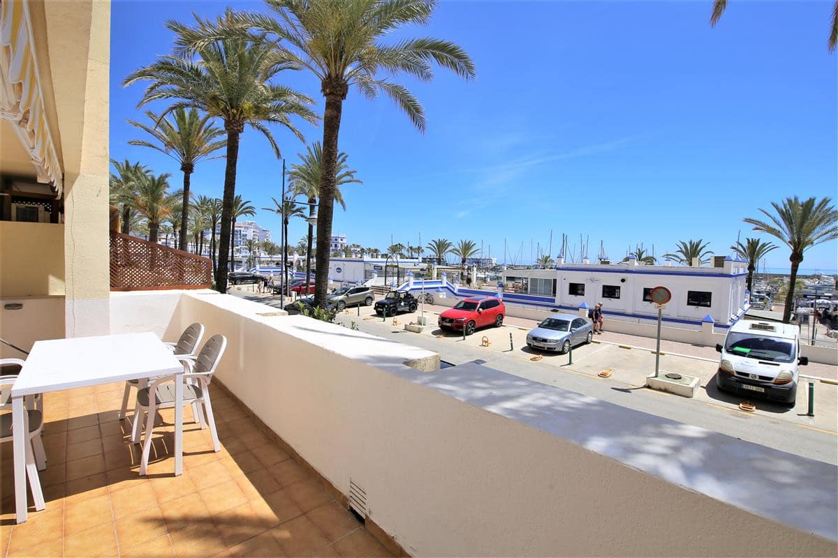 A modern, south facing front line apartment that has been completely renovated in a high standard and quality. The spacious property offers two large bedrooms and two bathrooms. The master bedroom has a super king size bed and air conditioning with direct access to the balcony with an outdoor dining area. It has an en-suite bathroom with walk-in shower, WC and sink. It also offers plenty of storage space in its built-in wardrobes. The second bedroom has two single beds and it is also equipped with air conditioning and built-in wardrobes. There is a family bathroom in the main hallway with shower, WC and sink. The modern lounge is very bright and offers comfortable seating for four guests along with a Wifi internet connection and international TV including Sky. The property has a modern open kitchen with all the appliances you may need for your holiday. Parking is possible in the communal parking area and operates on a first come, first served basis however finding a space isn't normally a problem. You can also park nearby for free and the property would suit families, golfers and retirees in particular. To reach this property you must go up a flight of around 15 steps from the port entrance.