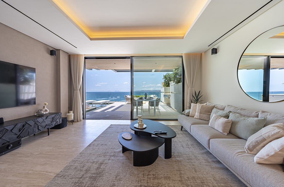 The apartments have an open plan layout, with the kitchen, living and dining areas offering a wide open space perfect for family interaction with a breathtaking view over the Mediterranean Sea.