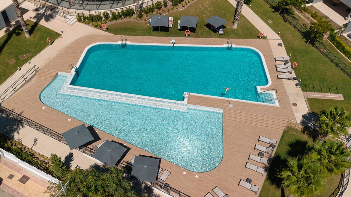 The urbanisation has two outdoor pools, one for adults and one for children, and an indoor pool (opening hours may vary depending on season, subject to variation of availability). There are also sun loungers, a huge garden and a gym with numerous exercise machines and dumbbells.