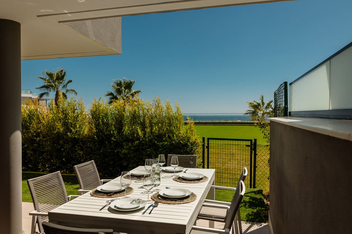 The terrace is covered and has been decorated with two rooms, one as a chill out area and the other as a dining area. In addition to the terrace there is a lovely garden for sunbathing and best of all there are stunning sea views in the background.
