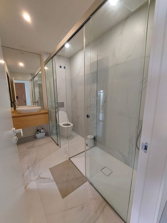 2 spacious bedrooms with built-in wardrobes and 2 modern bathrooms, one en-suite in the master bedroom