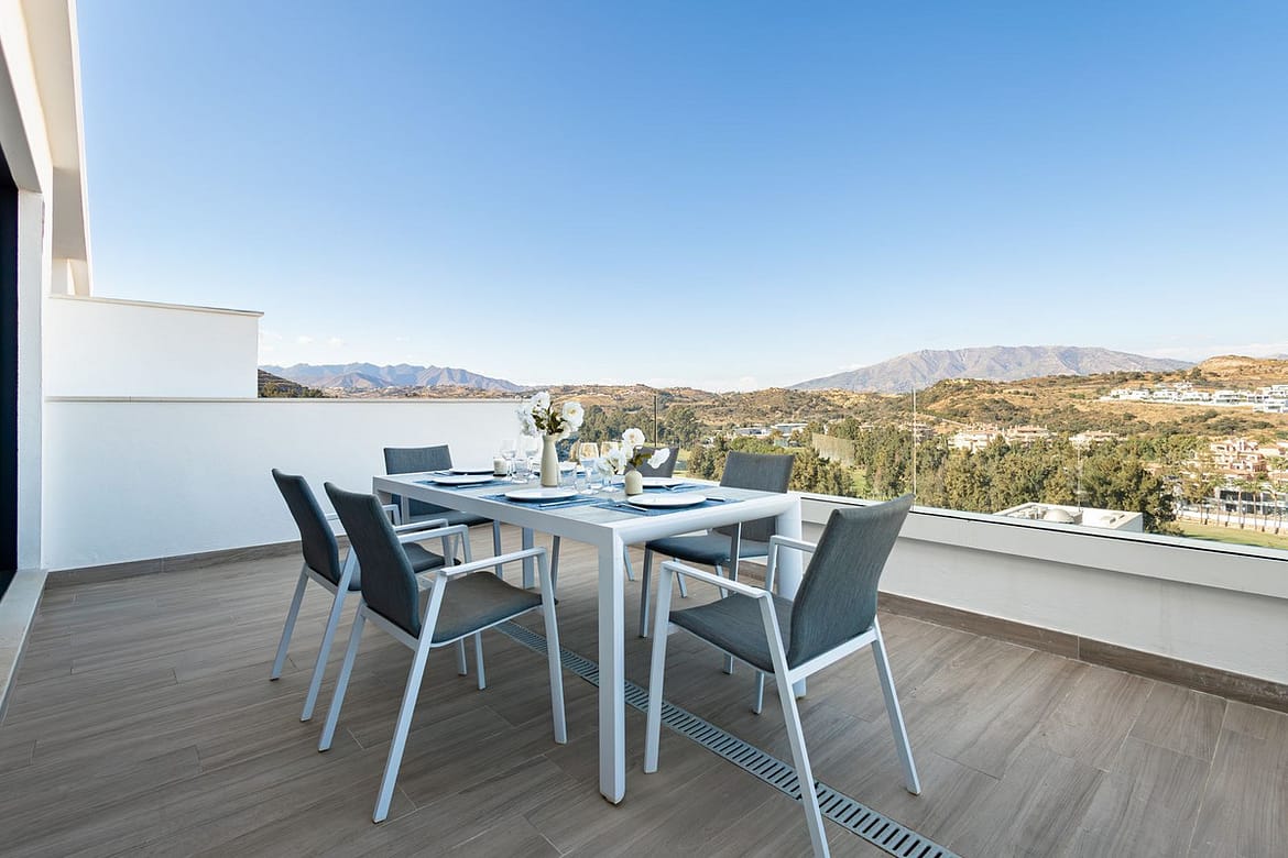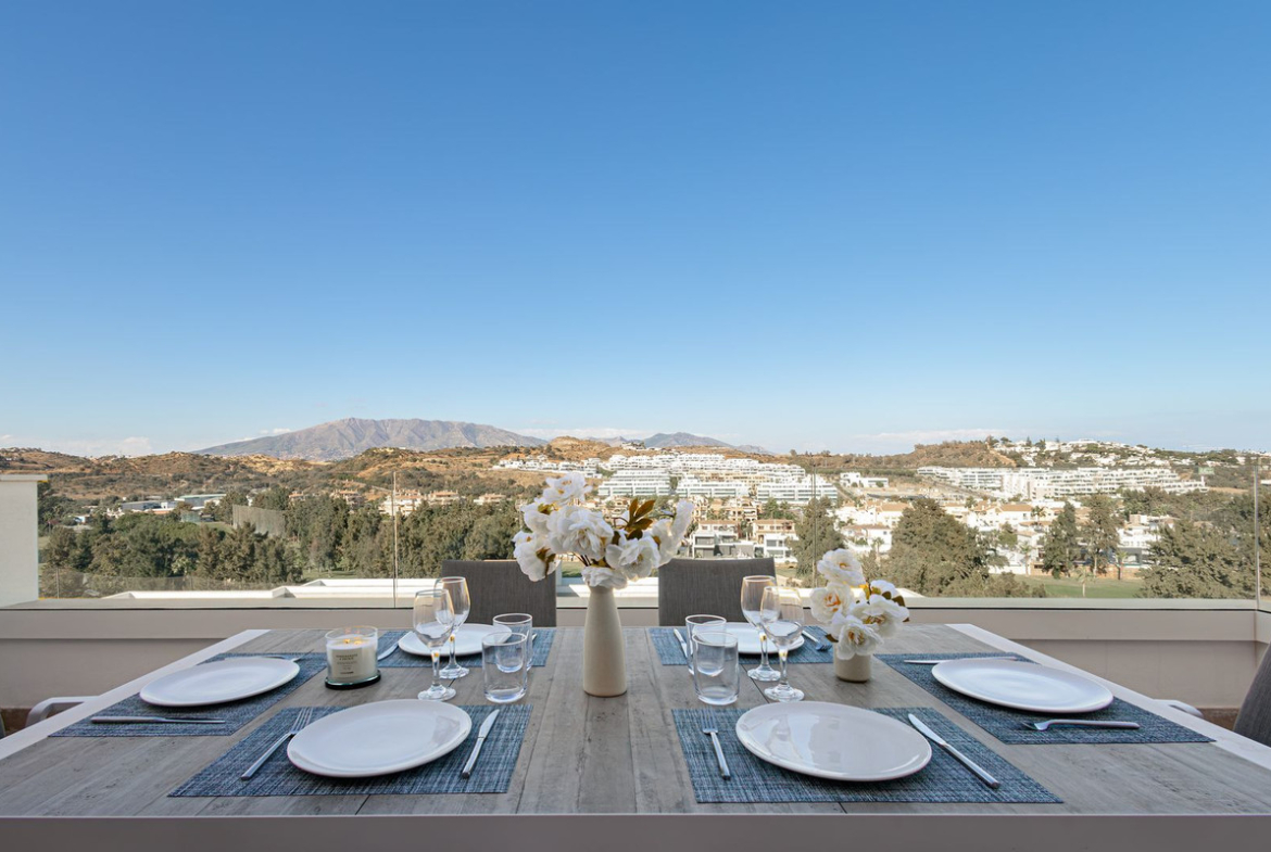 The location is unbeatable: just a short stroll from La Cala de Mijas town centre, where you’ll find charming restaurants, lively beach bars (chiringuitos), boutiques, supermarkets, and the beautiful golden-sand beach. You’re also next to La Noria Golf Club, with Calanova and Miraflores Golf only a few minutes away. Marbella and Fuengirola are within a 15-minute drive, and Málaga Airport is just 25 minutes away.