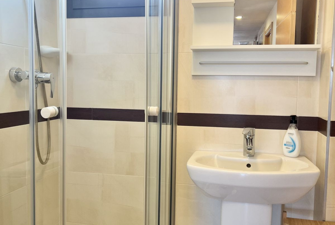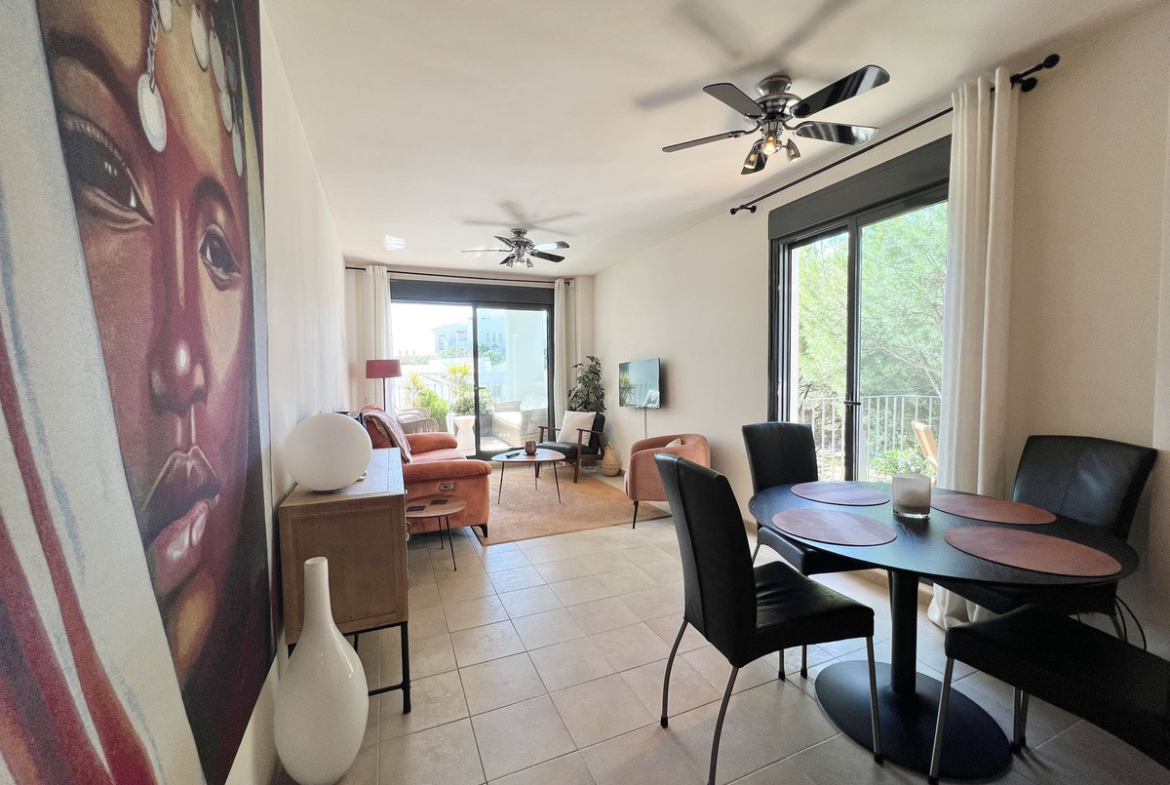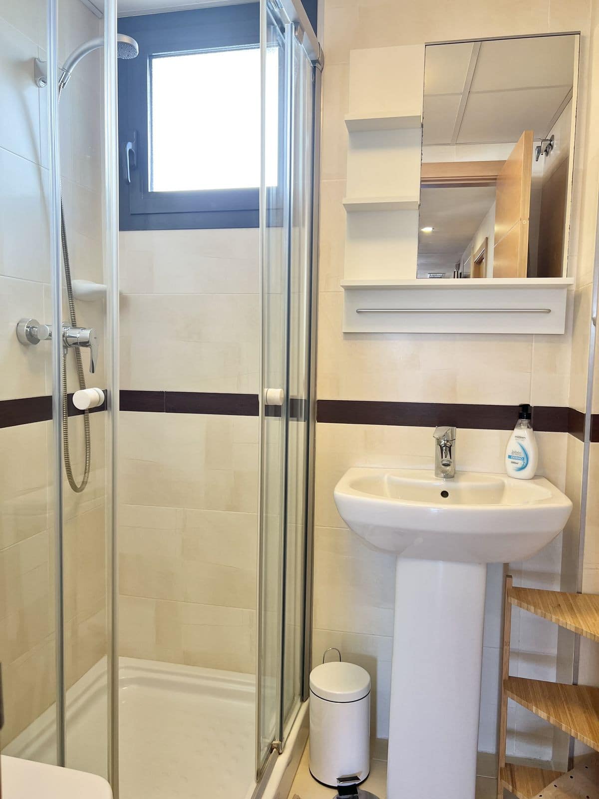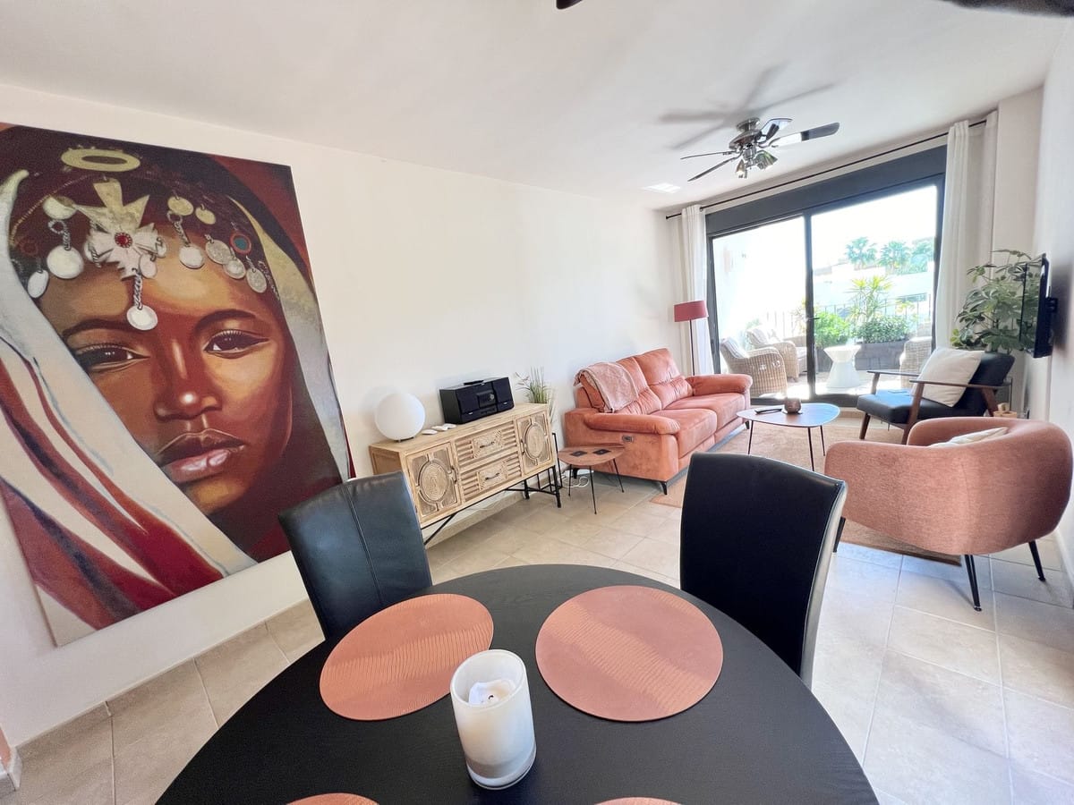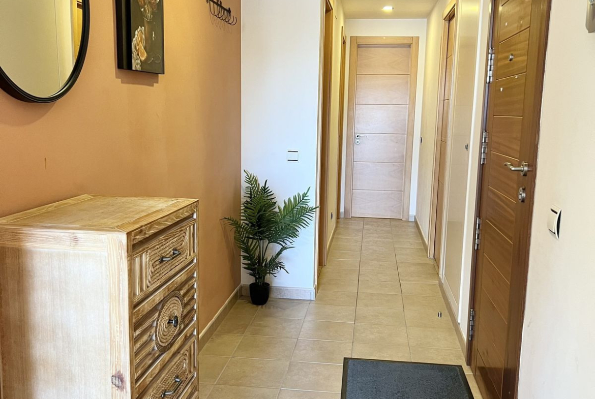 The apartment: When you step into the apartment you will find the hall that leads into the cozy living room with access to two terraces. The comfortable sofa, dining table for 4, TV will make you feel home. Also the south west facing covered terrace, where you best spend the days and evenings with friends and family.The kitchen is on the right after entering and it is fully equipped with dishwasher, fridge and freezer, coffee maker, kettle, toaster and much more. There is hot and cold A/C through the apartment. The main bedroom with its en-suite bathroom, double bed and plenty of storage place. The second bedroom has two single beds and access to a small balcony. The second bathroom with a shower is right outside. The apartment is otherwise fully equipped with A / C in all rooms, WIFI in all rooms, Underground parking included,