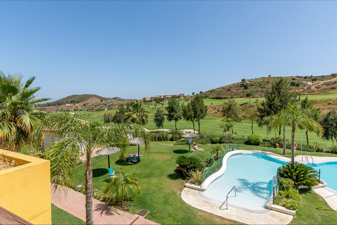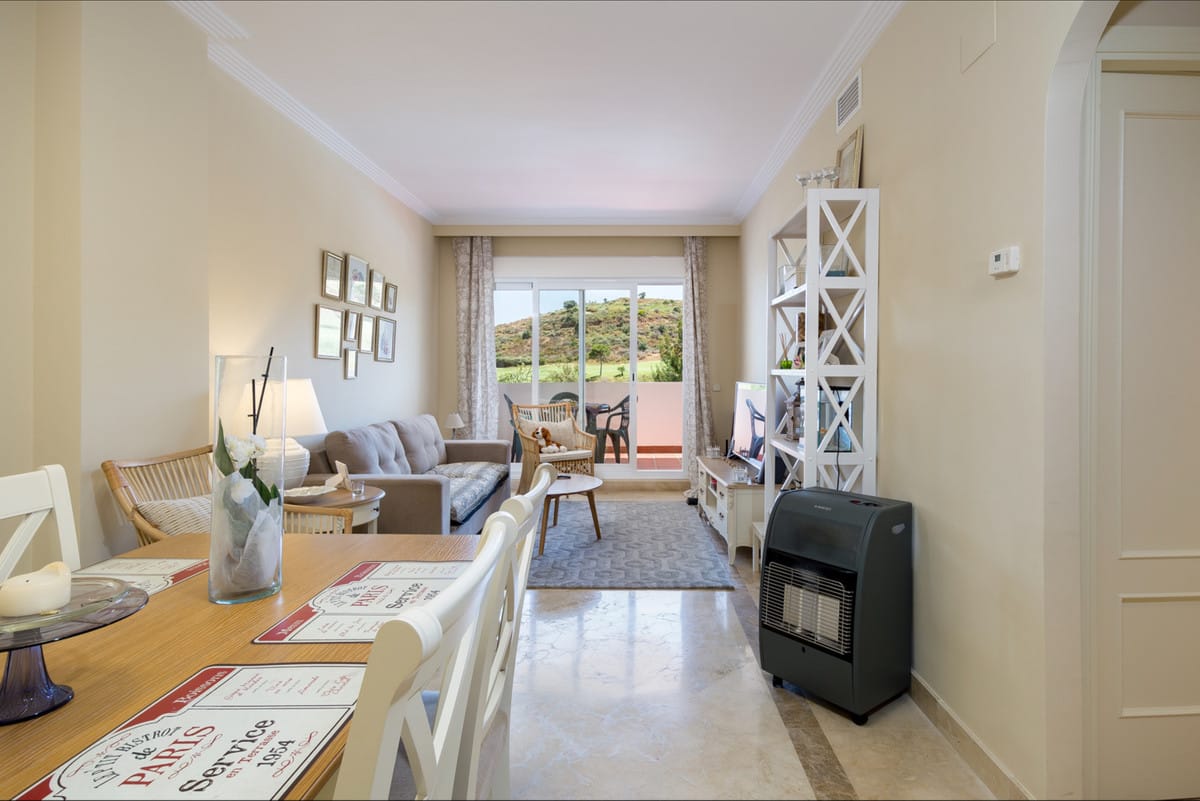 This beautiful two bedroom apartment is located in the area of Calanova Grand Golf, offering spectacular views of the golf course, the sea and the town of Mijas. The house has two bedrooms and a twobathrooms, a kitchen and a closed terrace. The urbanization is closed with security service 24 hours a day. The owners can enjoy large nice gardens, two swimming pools and paddle courts. The area of Calanova Golf, situated in the higher part of La Cala de Mijas, the location is also just minutes away from Marbella and Fuengirola
