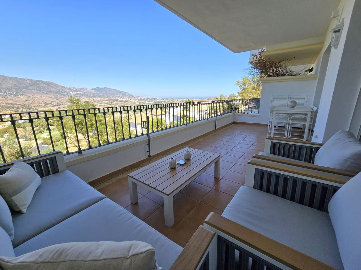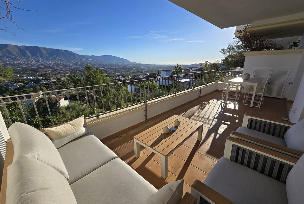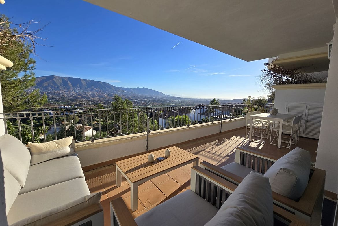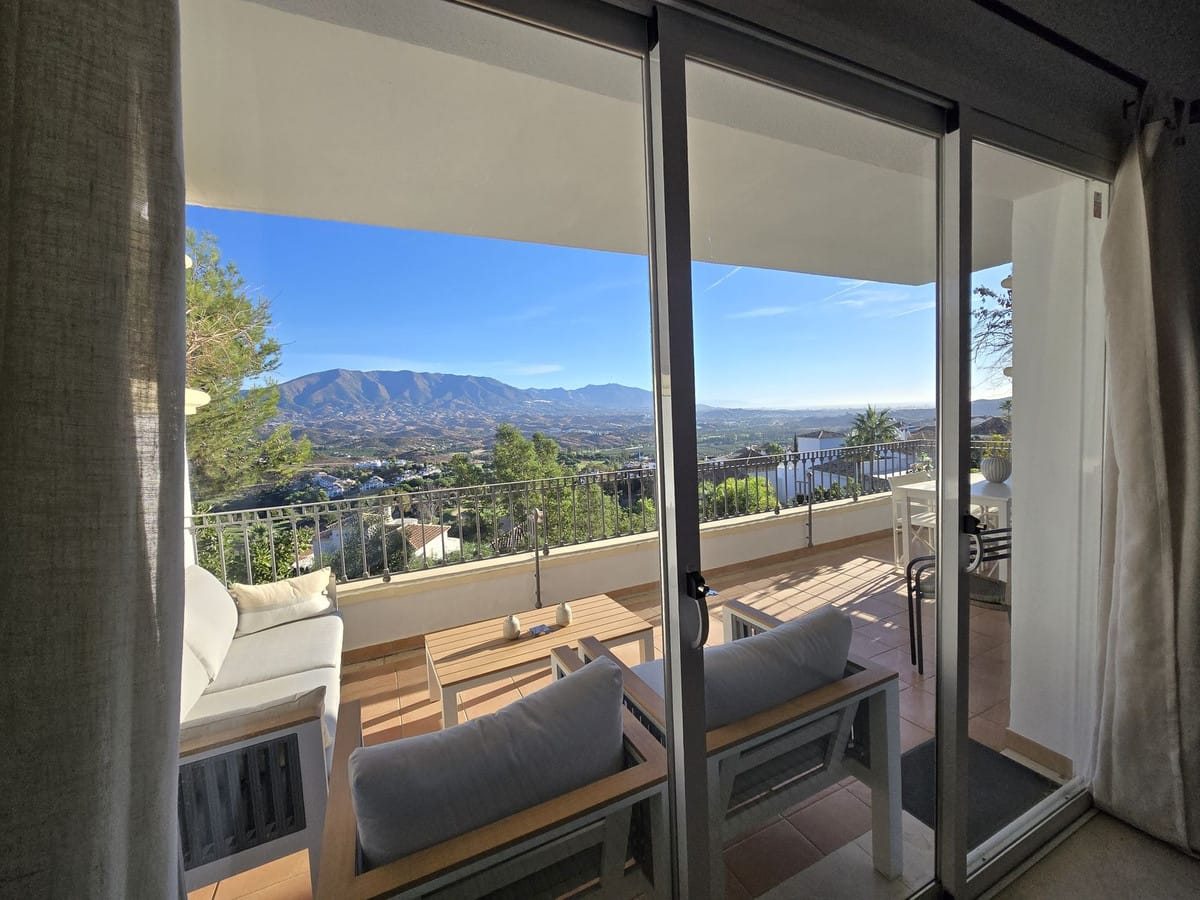 Airport: 30 min by car – La Cala de Mijas: 8 min by car – Marbella: 20 min by car – Puerto Banús: 24 min by car – Golf: opposite – Beach: 10 min by car – Restaurants/bars: a few minutes' walk – Shops: 8 min by car – Public transport: 7 min by car