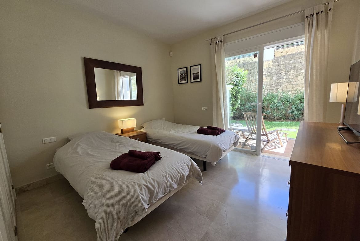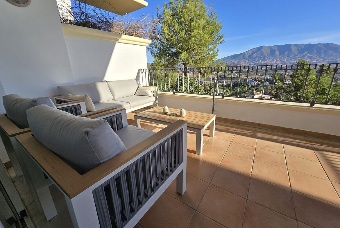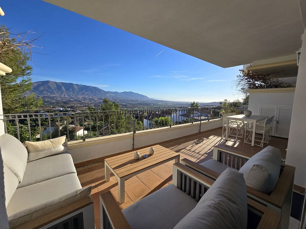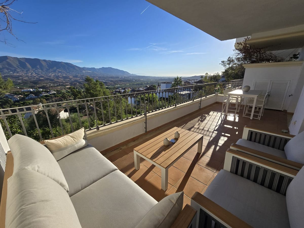 Airport: 30 min by car – La Cala de Mijas: 8 min by car – Marbella: 20 min by car – Puerto Banús: 24 min by car – Golf: opposite – Beach: 10 min by car – Restaurants/bars: a few minutes' walk – Shops: 8 min by car – Public transport: 7 min by car