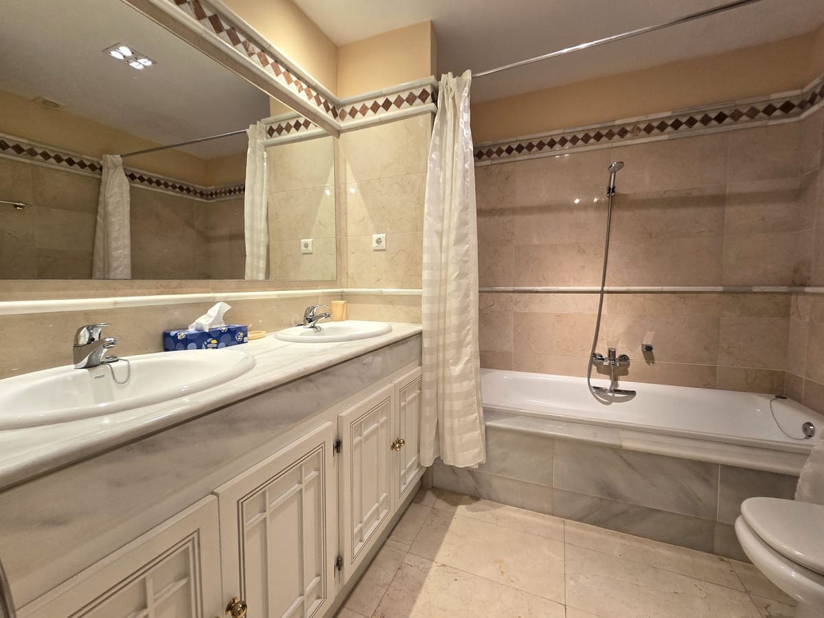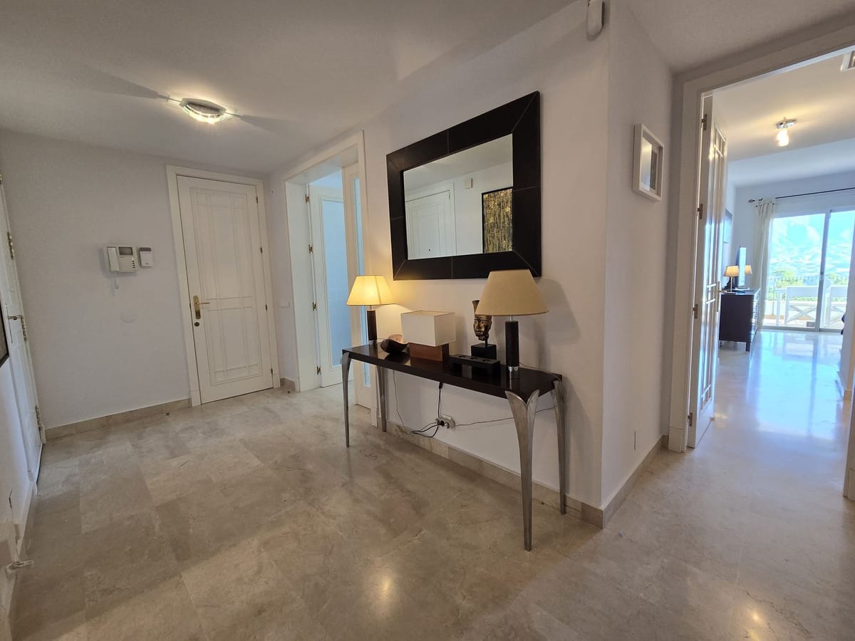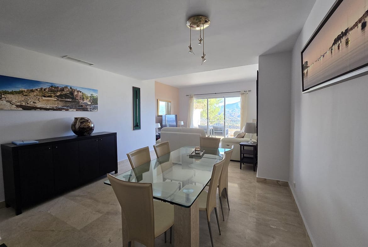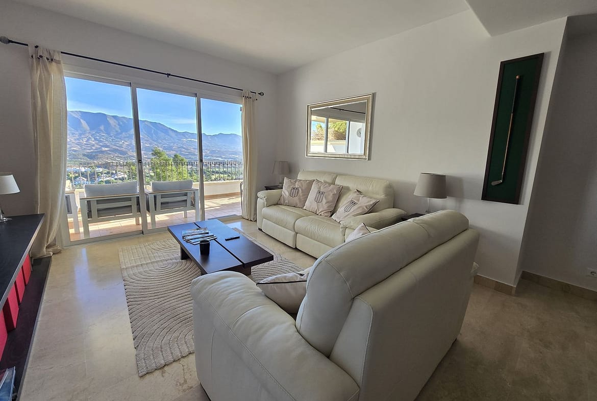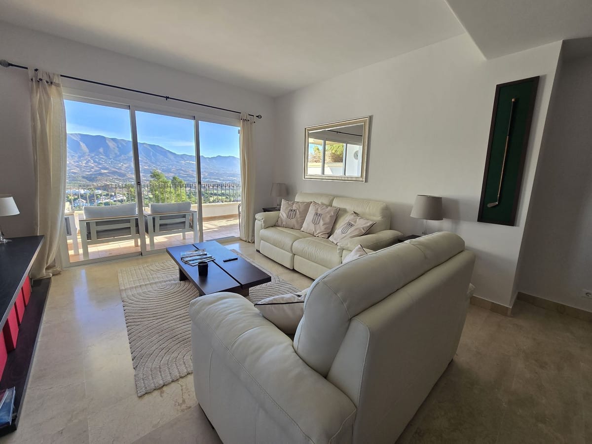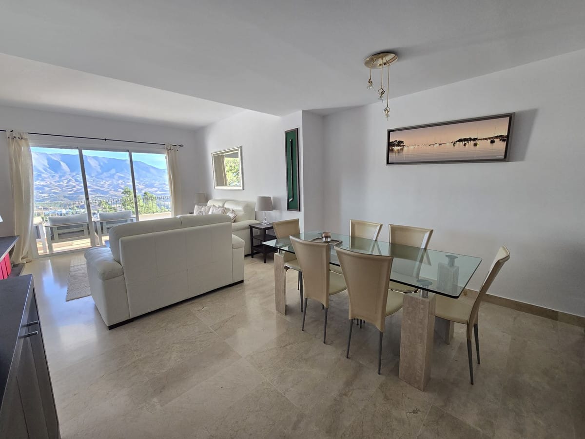 This superb apartement at the heart of La Cala Golf Resort enjoys spectacular views over the golf course and the Mijas mountains. The property has a large entrance hall leading to: a fully equipped kitchen, a large living/dining room opening onto a beautiful terrace with panoramic views, a large master bedroom suite with dressing room and bathroom opening onto the terrace, the second bedroom accesses a small private garden with afternoon sun. The complex is fenced, with spectacular gardens and a magnificent swimming pool with truly impressive views. The property includes a private underground parking space.