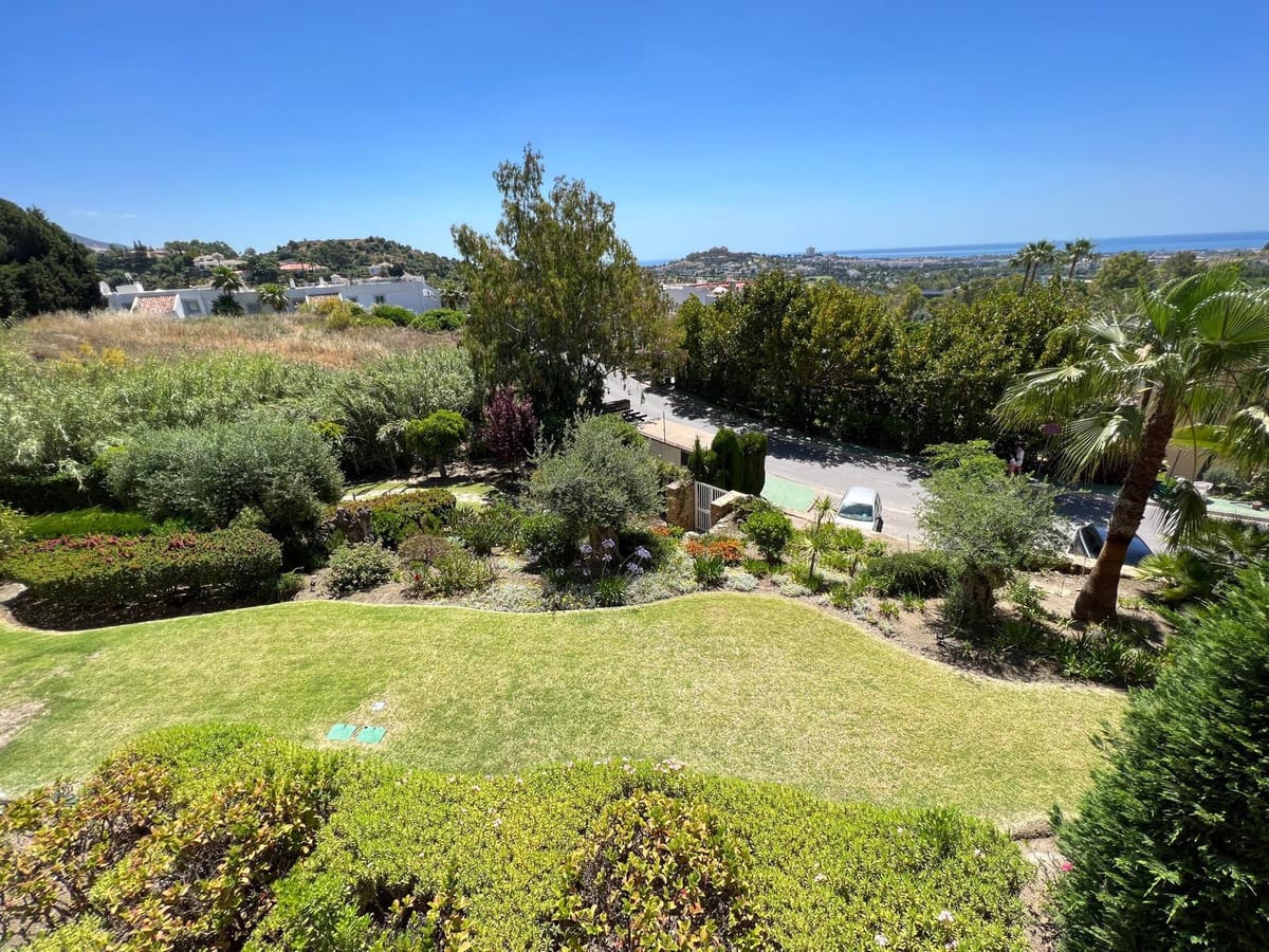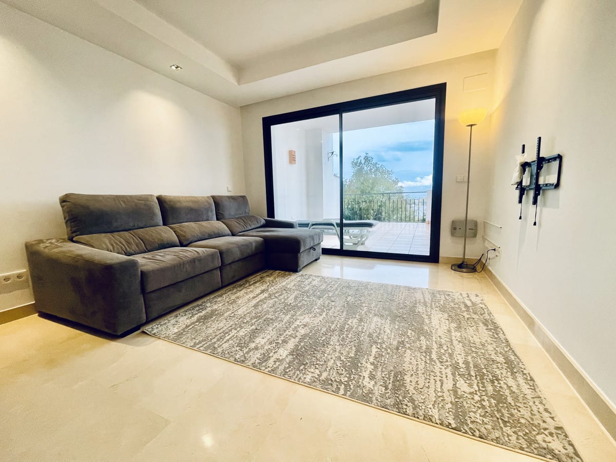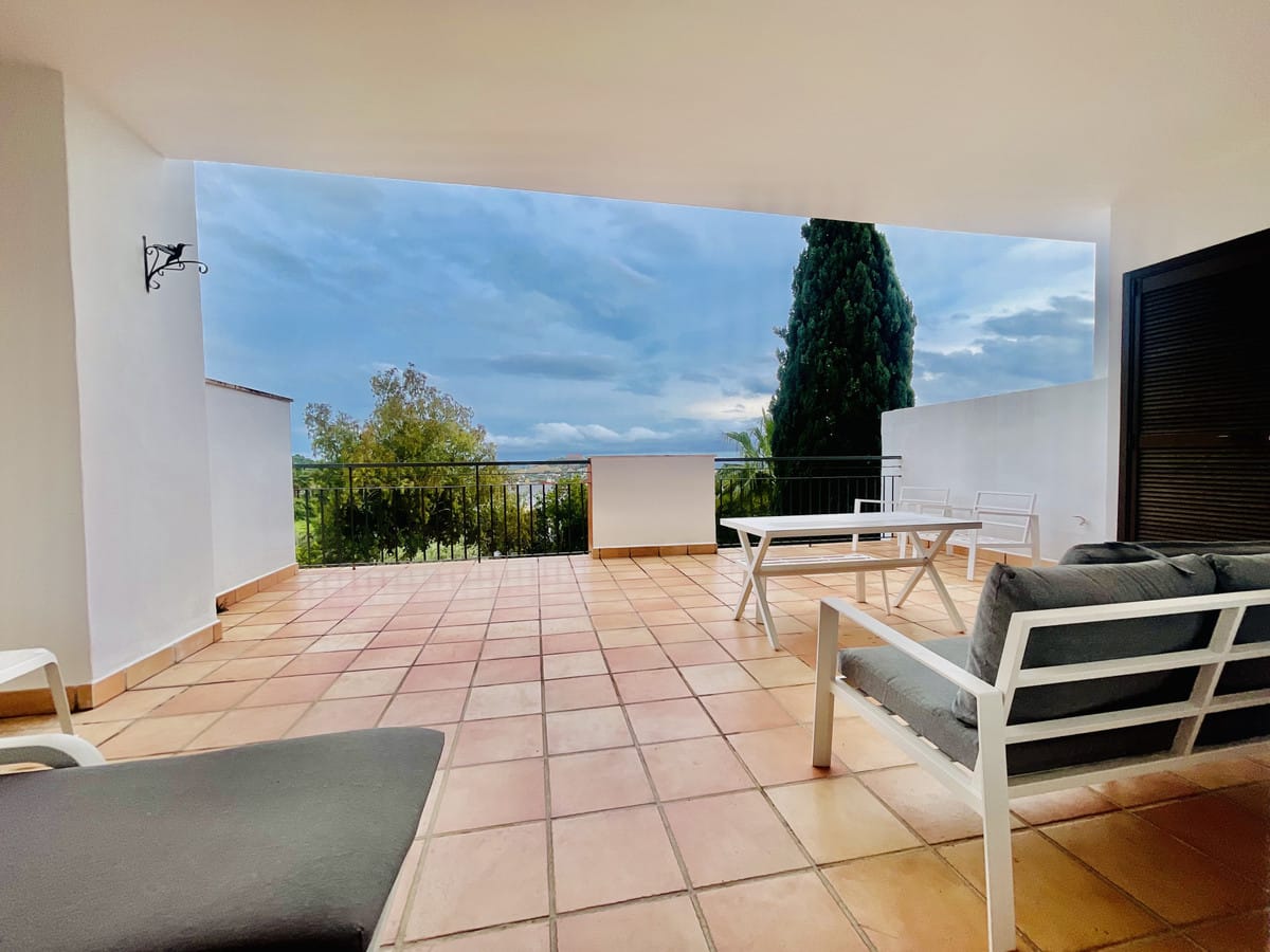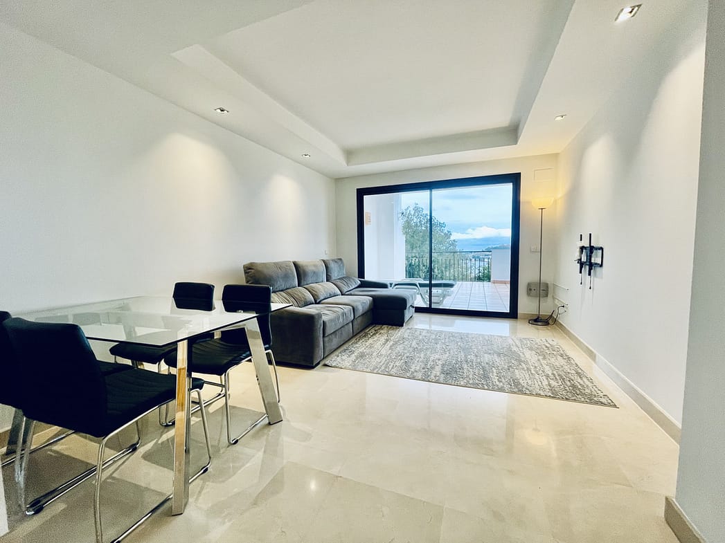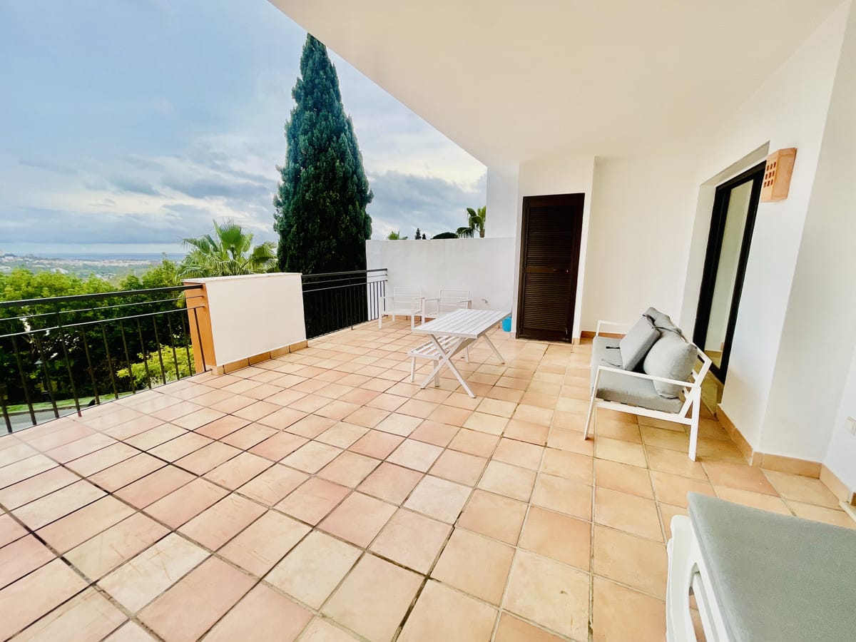 AVAILABLE FROM BEGINNING OF NOVEMBER FOR LONG TERM RENT – This elevated ground floor apartment in La Quinta offers stunning panoramic views over Nueva Andalucía and the Mediterranean Sea. With 2 bedrooms, 2 bathrooms, and a generous south-facing terrace, the property enjoys all-day sunlight, perfect for relaxing or outdoor dining.