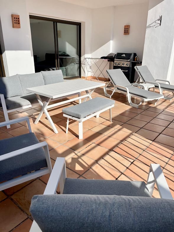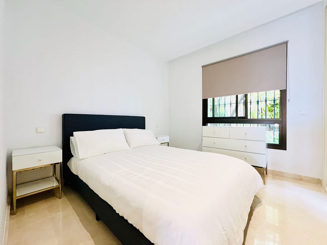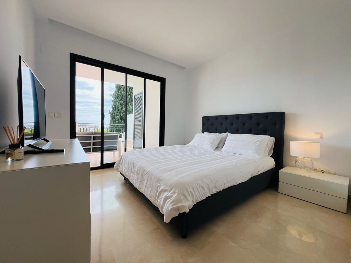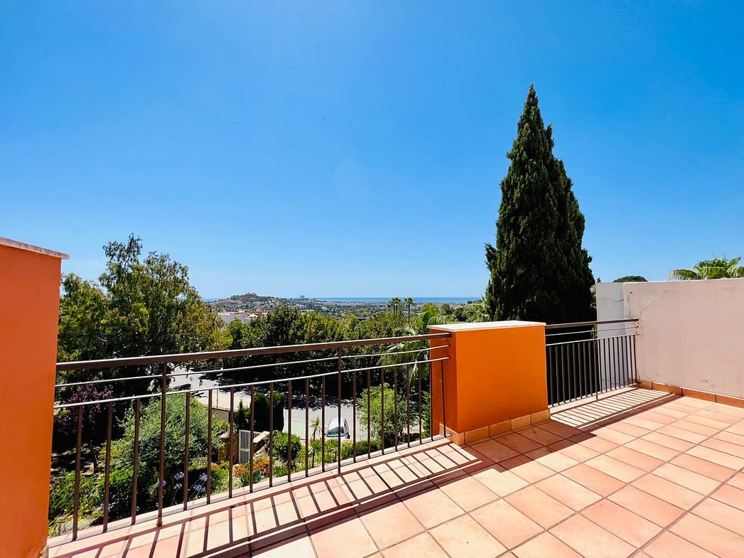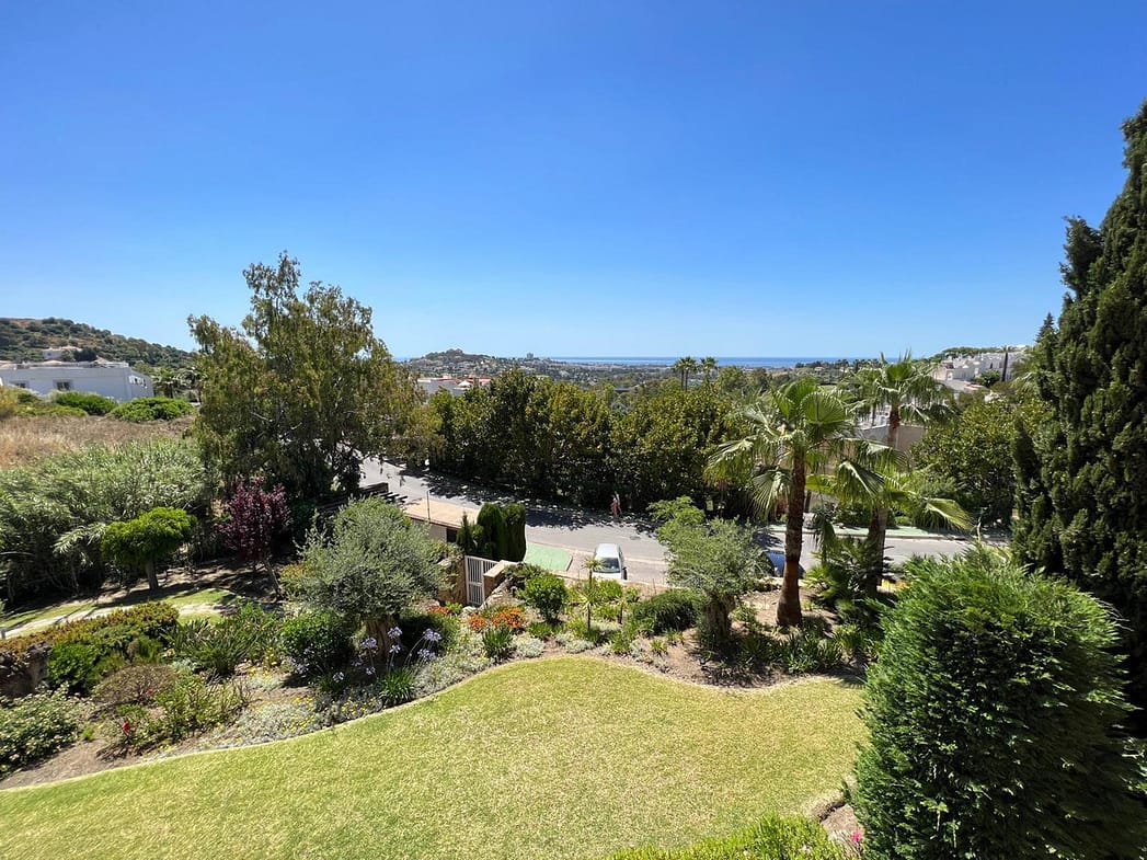 AVAILABLE FROM BEGINNING OF NOVEMBER FOR LONG TERM RENT – This elevated ground floor apartment in La Quinta offers stunning panoramic views over Nueva Andalucía and the Mediterranean Sea. With 2 bedrooms, 2 bathrooms, and a generous south-facing terrace, the property enjoys all-day sunlight, perfect for relaxing or outdoor dining.