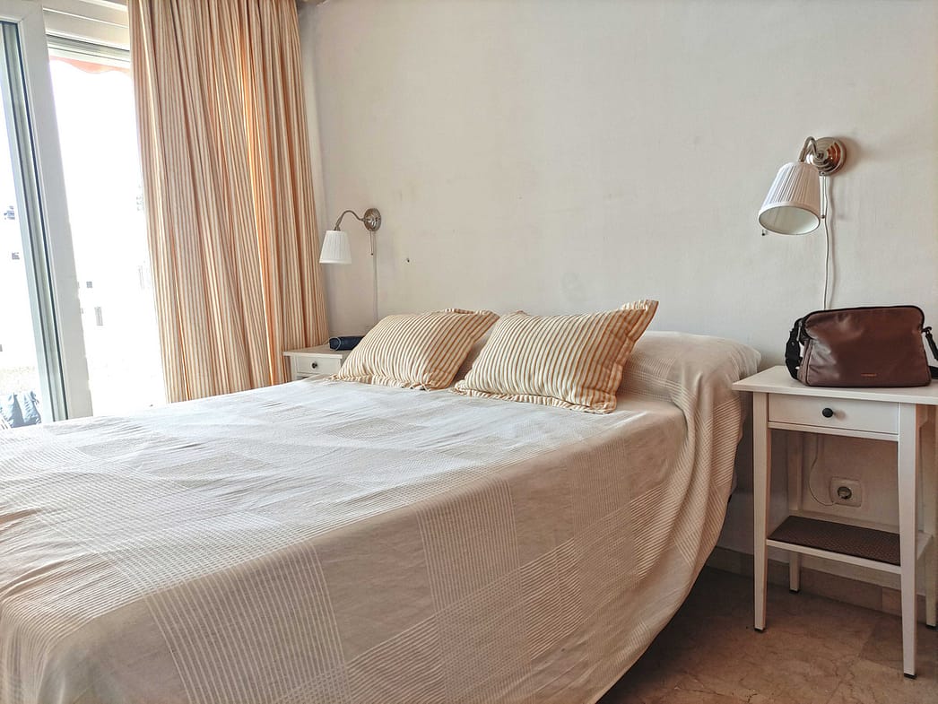 Ideal for vacations. Apartment for rent for a short season located on the second line of the beach in the center of Marbella in front of the Puerto Deportivo. Facing South. It is distributed in entrance hall, equipped kitchen, living room, 2 bedrooms, a bathroom and terrace. Private garage. Surface 72 m2 built. Marble floors, air conditioning, double glazing. Walking distance to all kind of services and amenities.